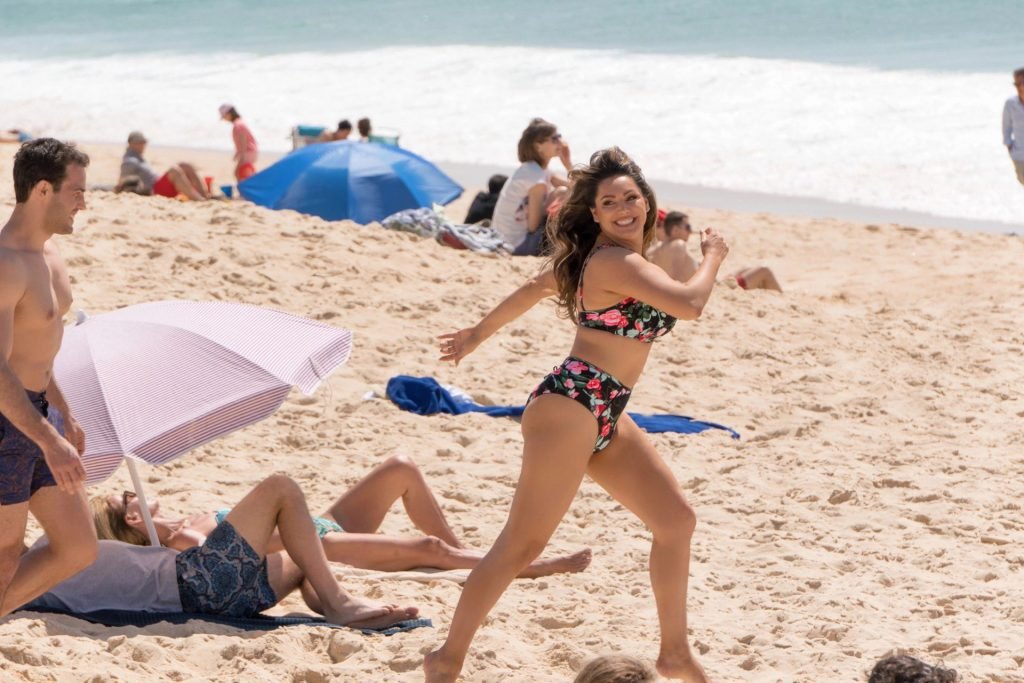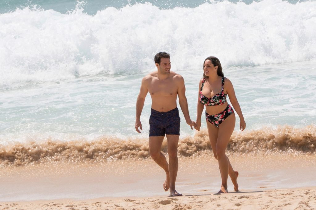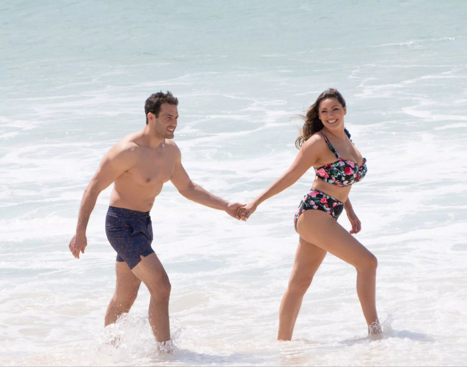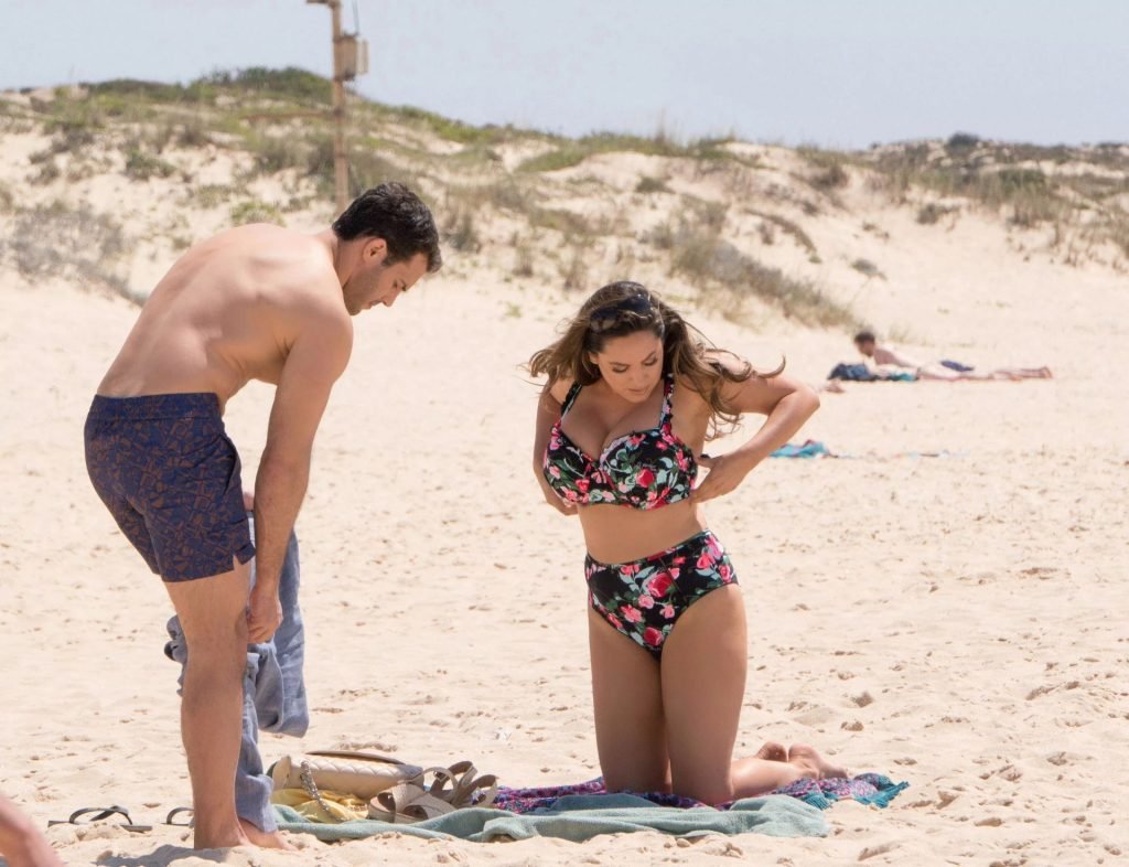 L’attrice e modella Kelly Brook ha mostrato le sue curve indossando un bikini a stampa floreale durante una vacanza a Setubal, in Portogallo (aprile 2019).