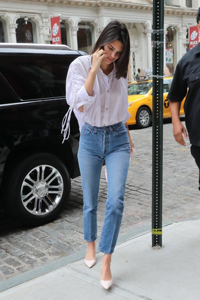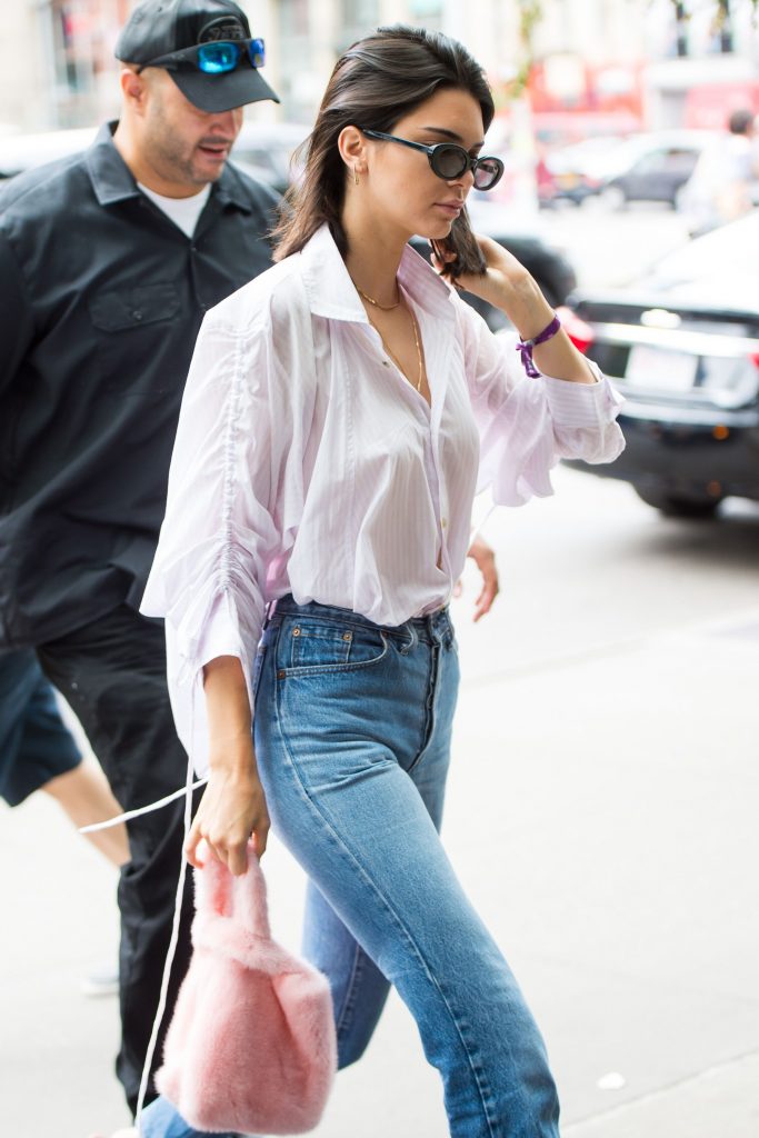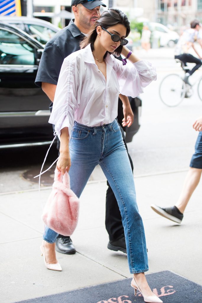 Modella senza reggiseno Kendall Jenner con Hailey Baldwin vista in giro per New York, 29/07/2017.