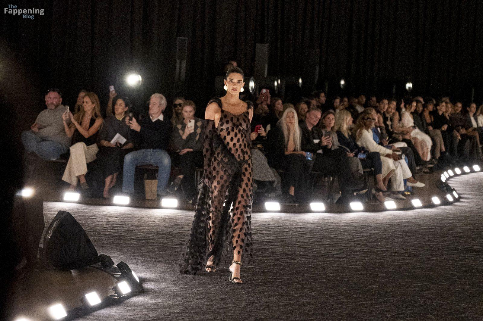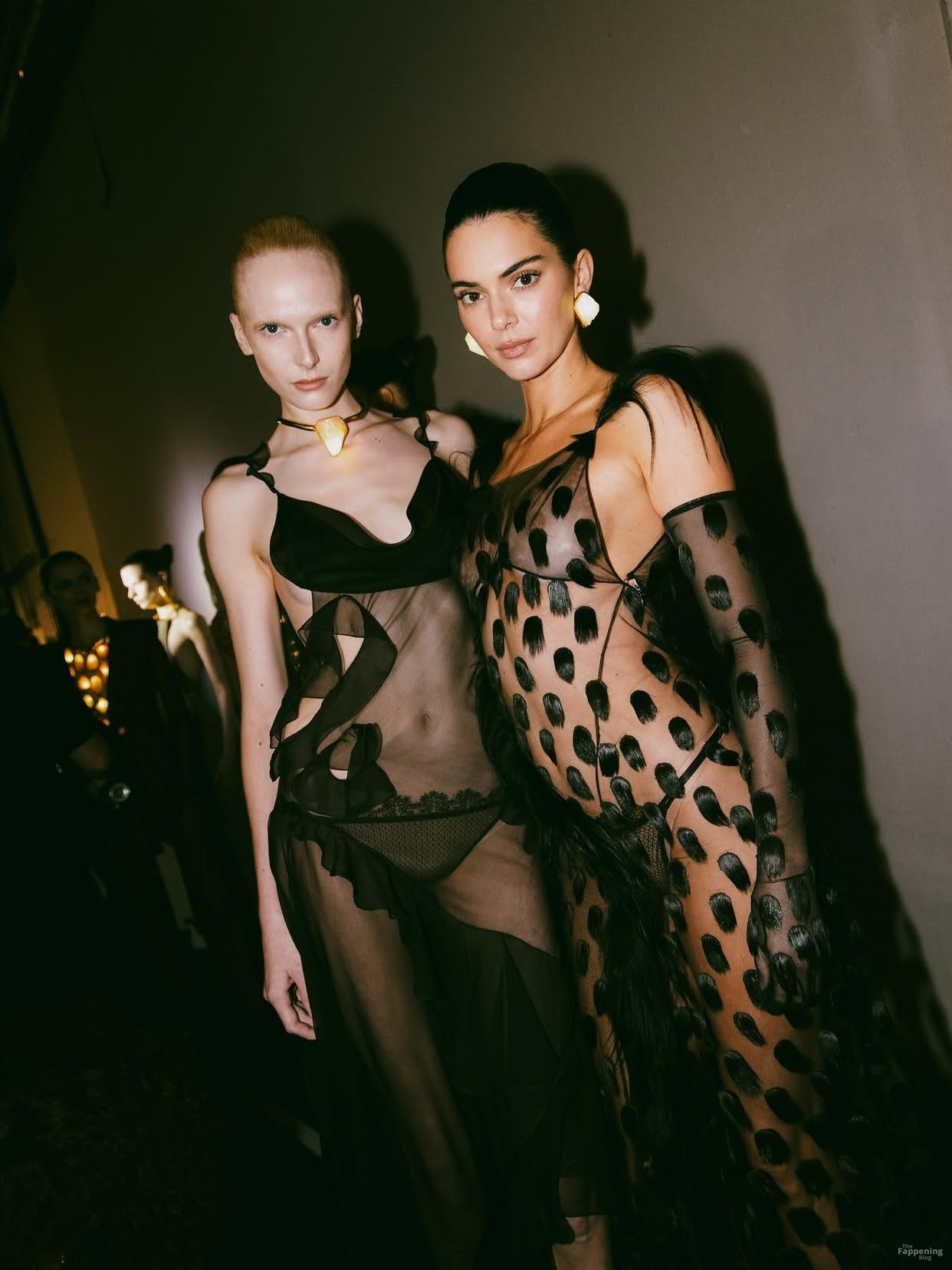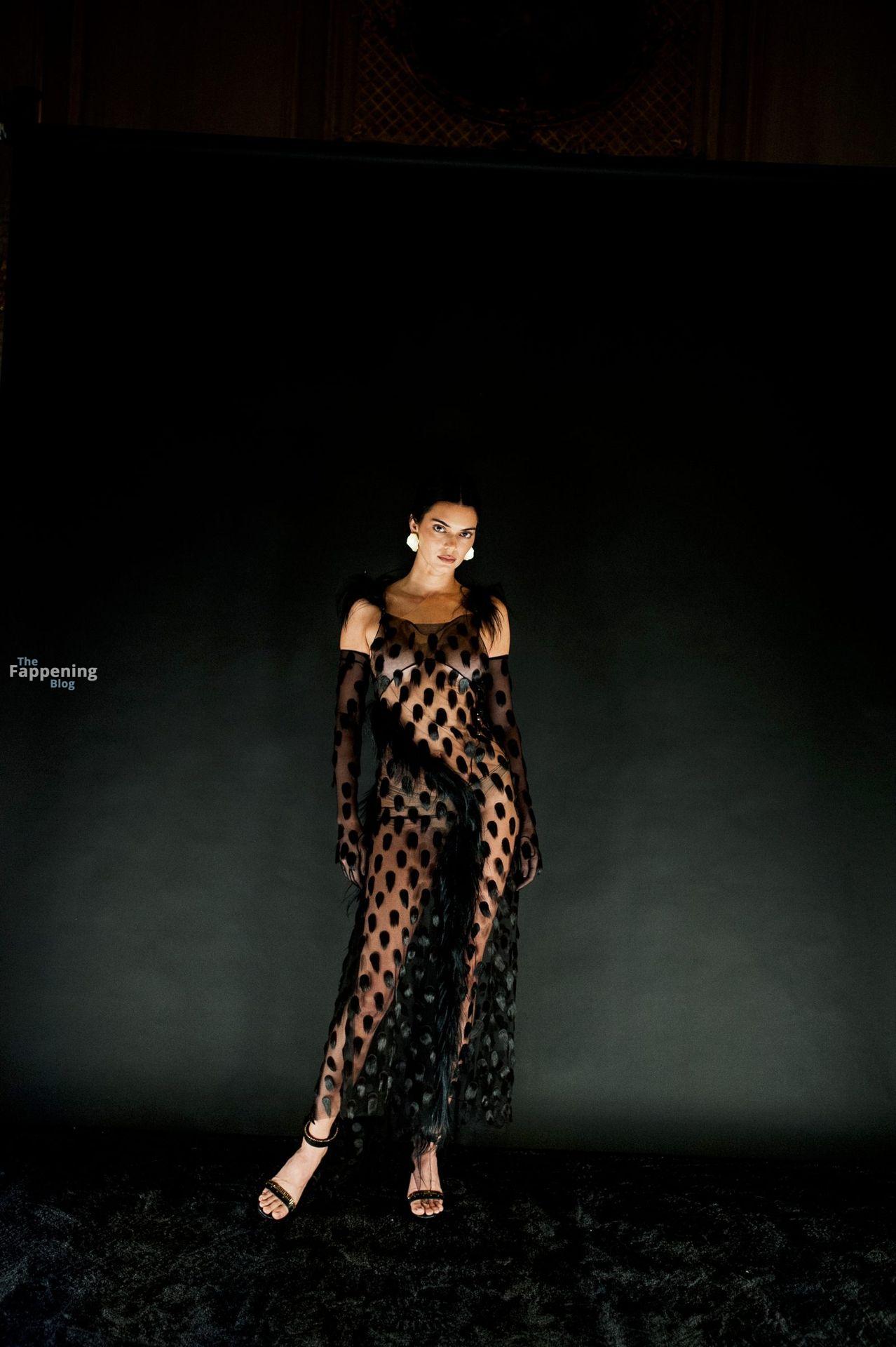 Kendall Jenner ha mostrato il suo seno e il suo sedere nel vestito trasparente di Schiaparelli alla Paris Fashion Week.