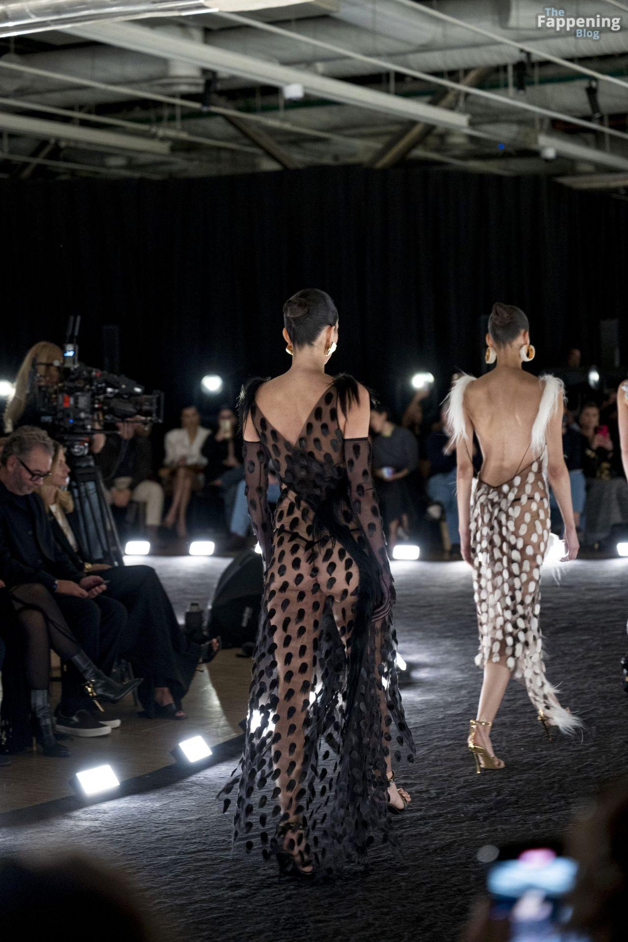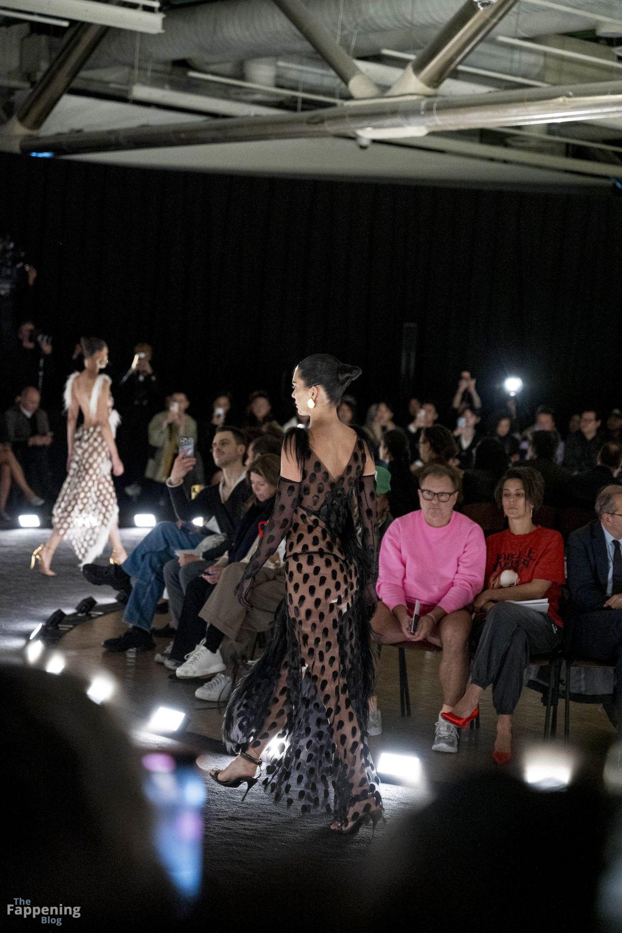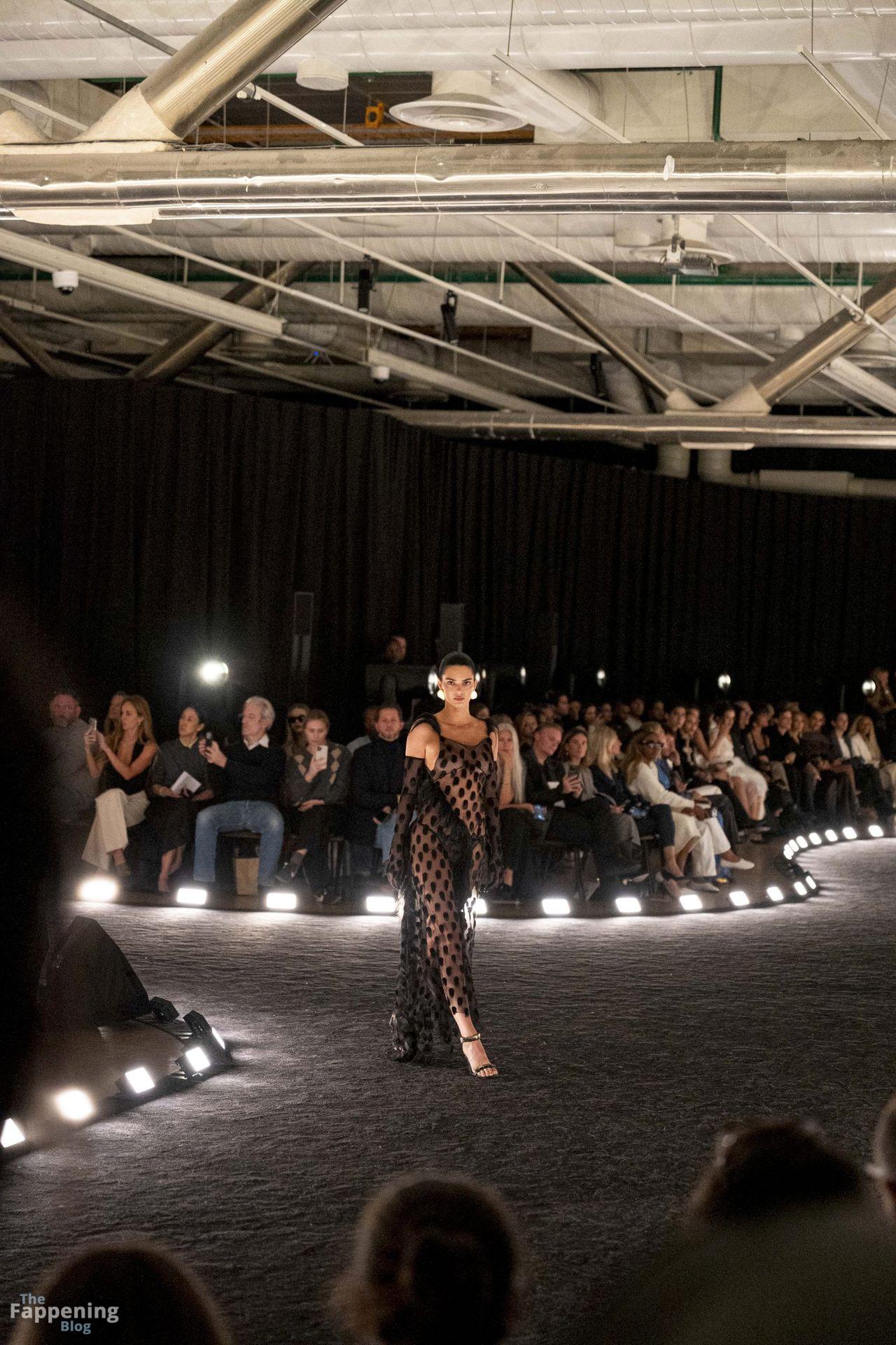 Kendall Jenner ha mostrato il suo seno e il suo sedere nel vestito trasparente di Schiaparelli alla Paris Fashion Week.