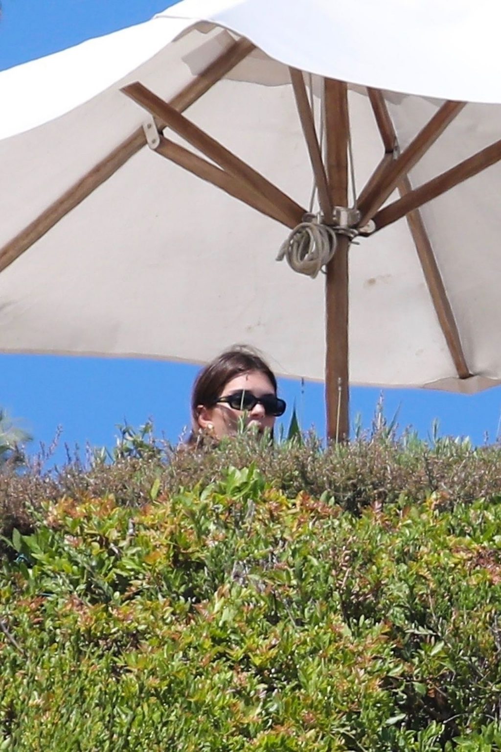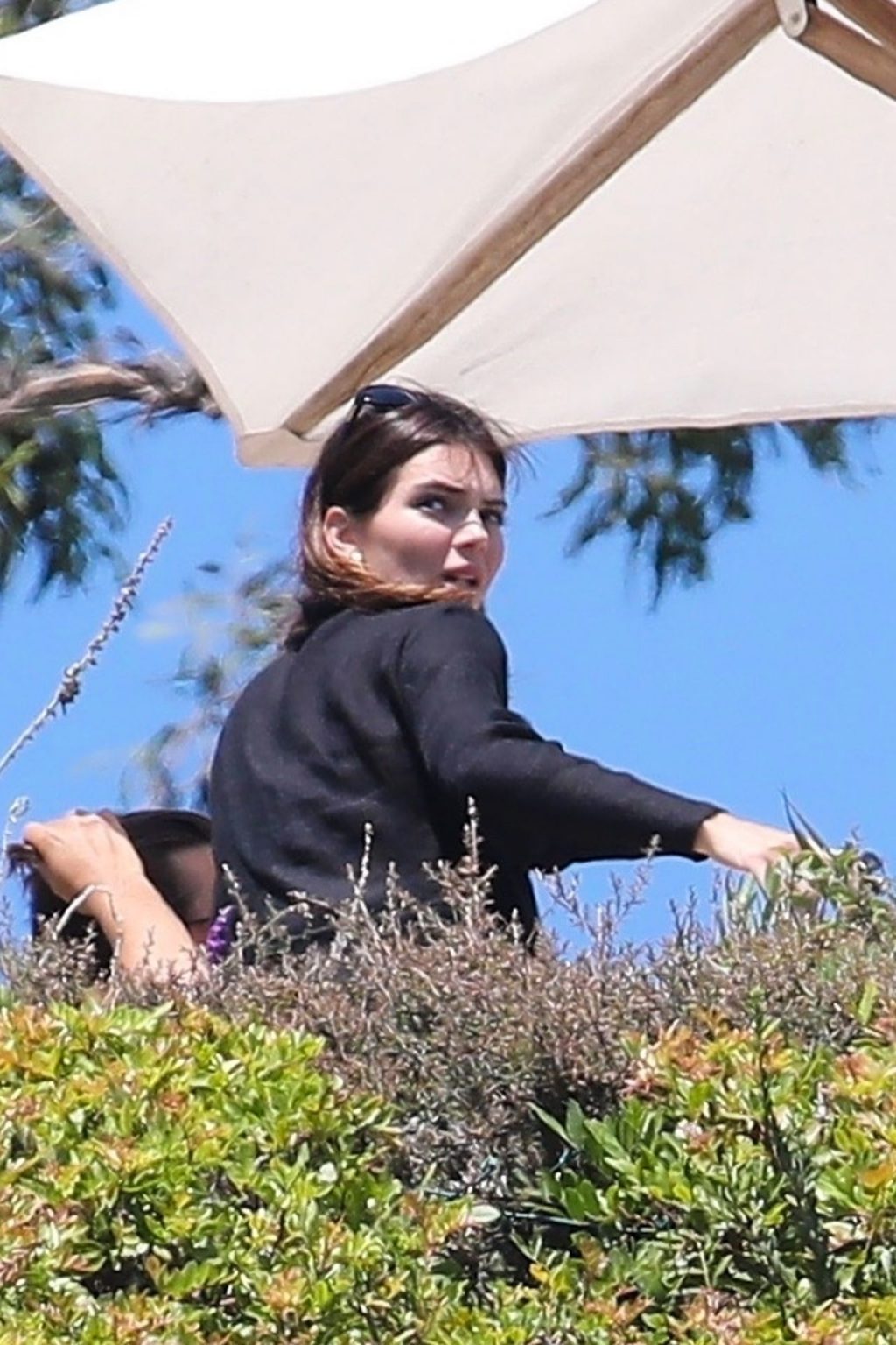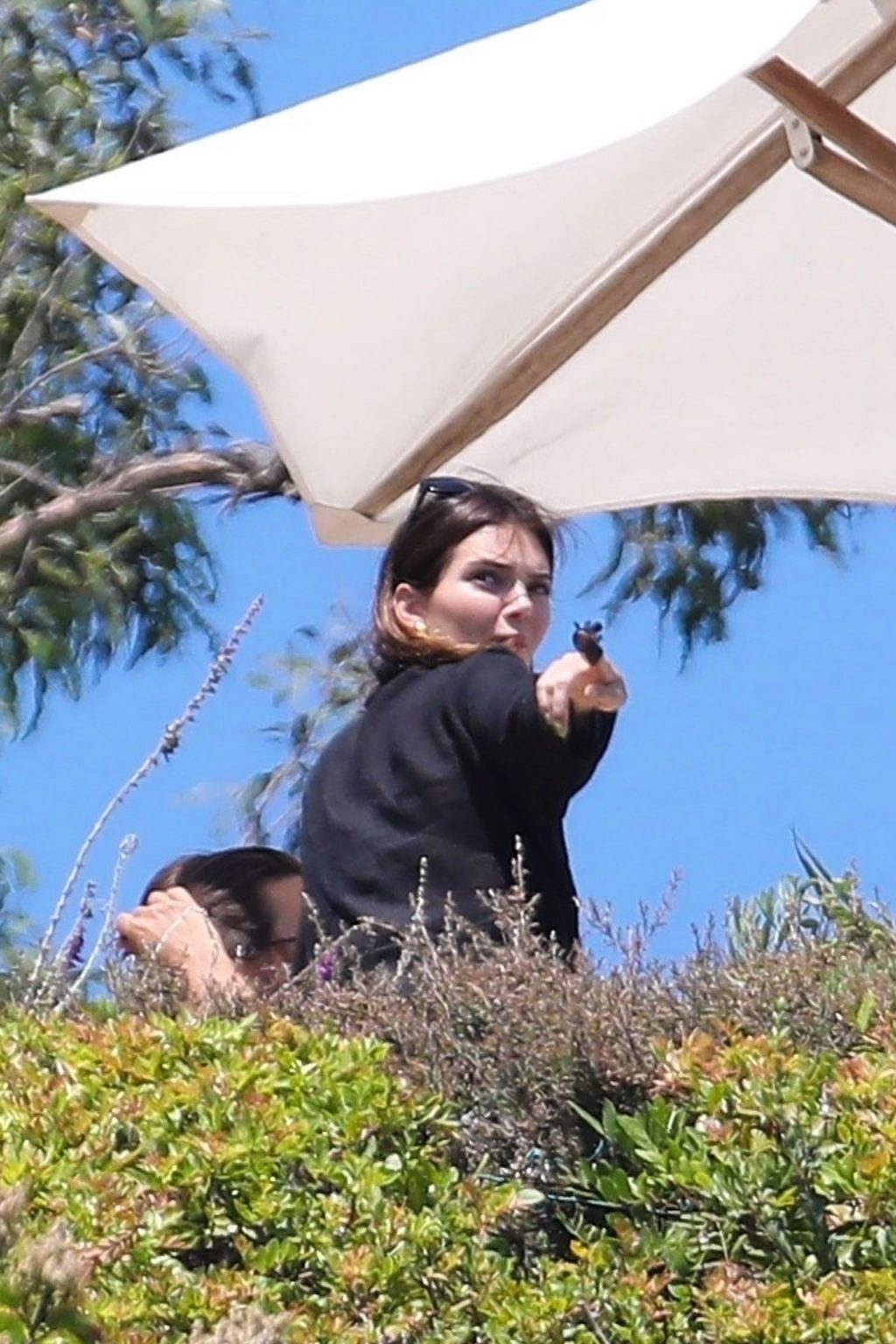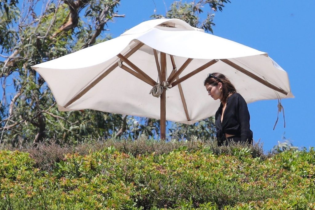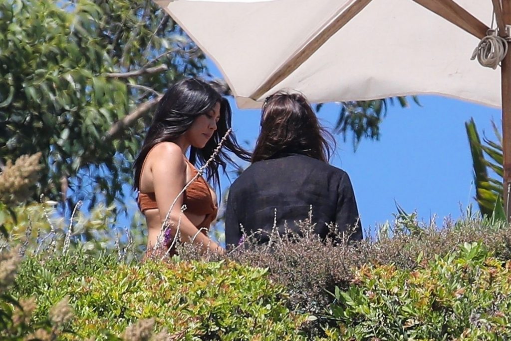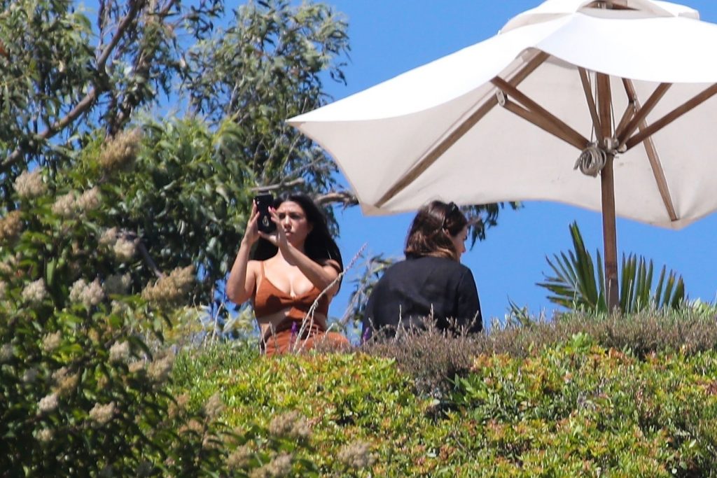 Sorelle Kendall Jenner e Kourtney Kardashian girano una scena per il loro reality show ‘Keeping Up With The Kardashians’ su una collina a Malibu, 14/07/2020.