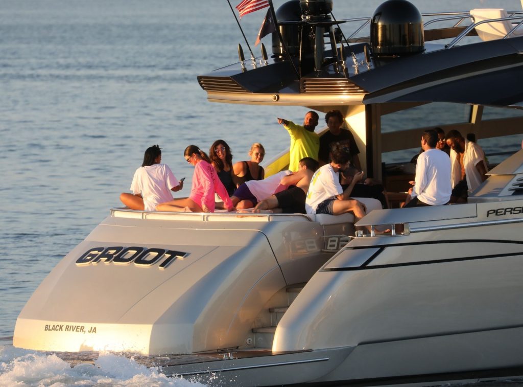 Kendall Jenner e amici fanno una crociera a bordo della lussuosa barca Groot di David Grutman e la supermodella sfoggia la sua figura sensazionale mentre si rilassa sul ponte, 12/06/2019. Kendall legge un libro mentre si gode il sole di Miami.