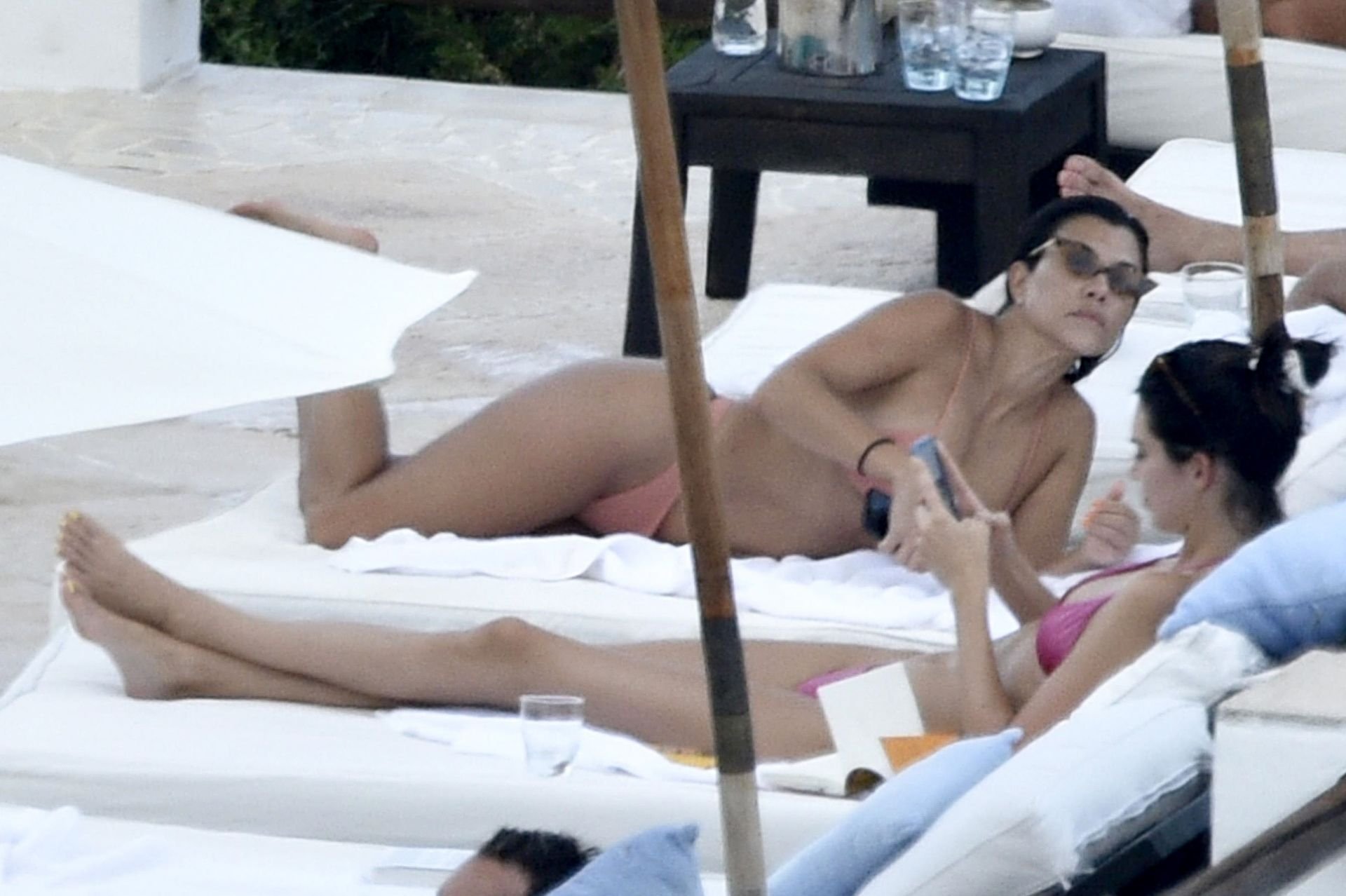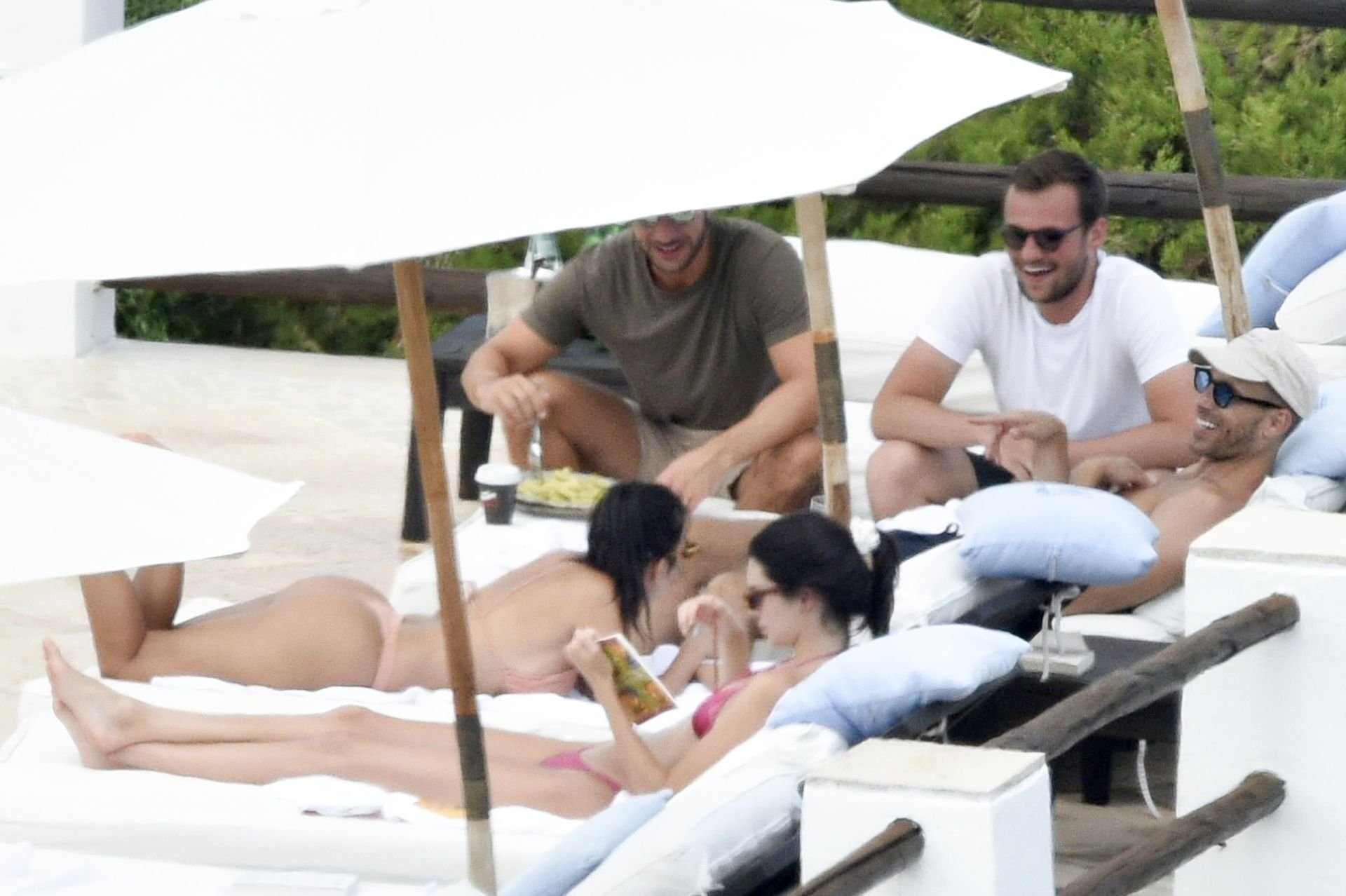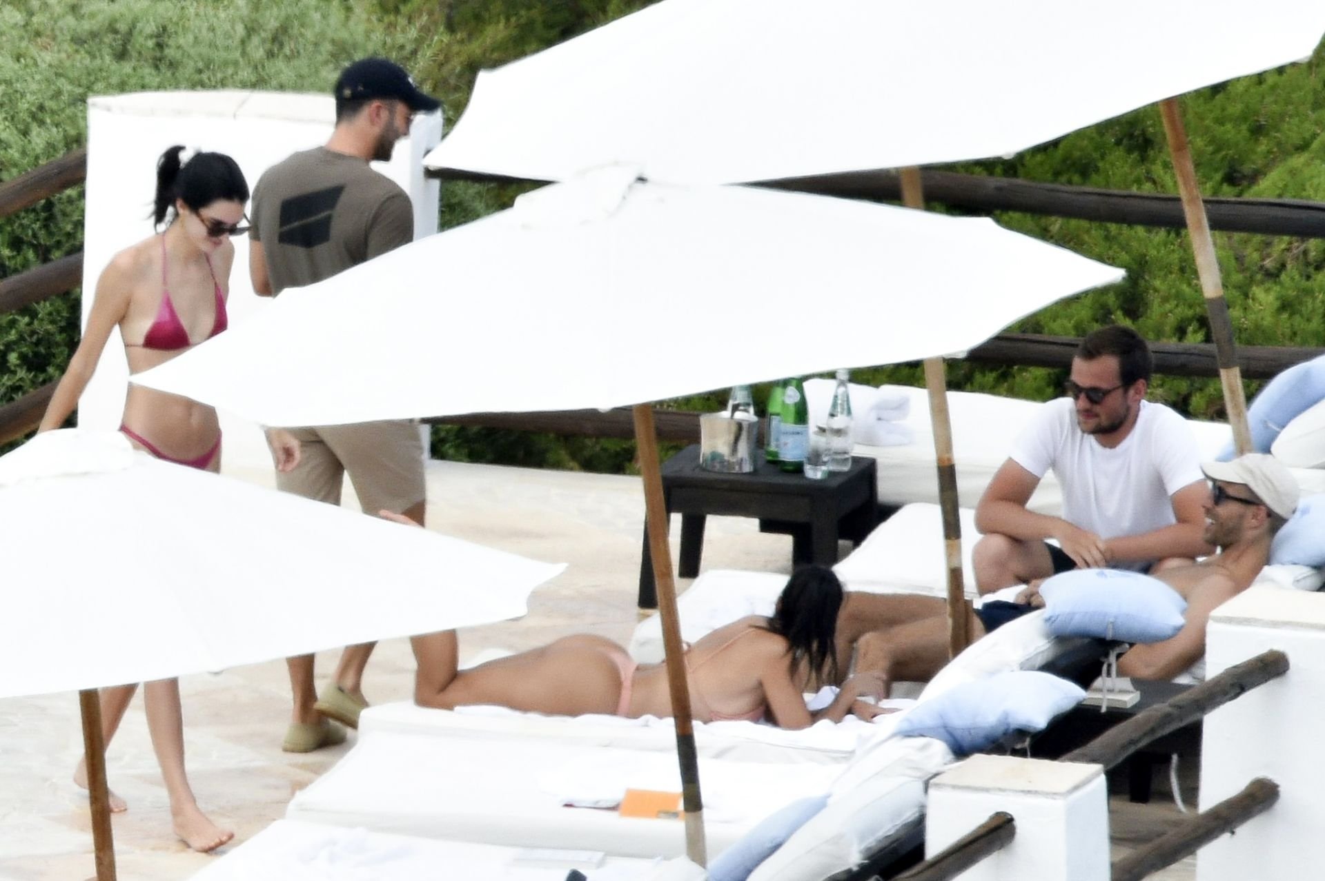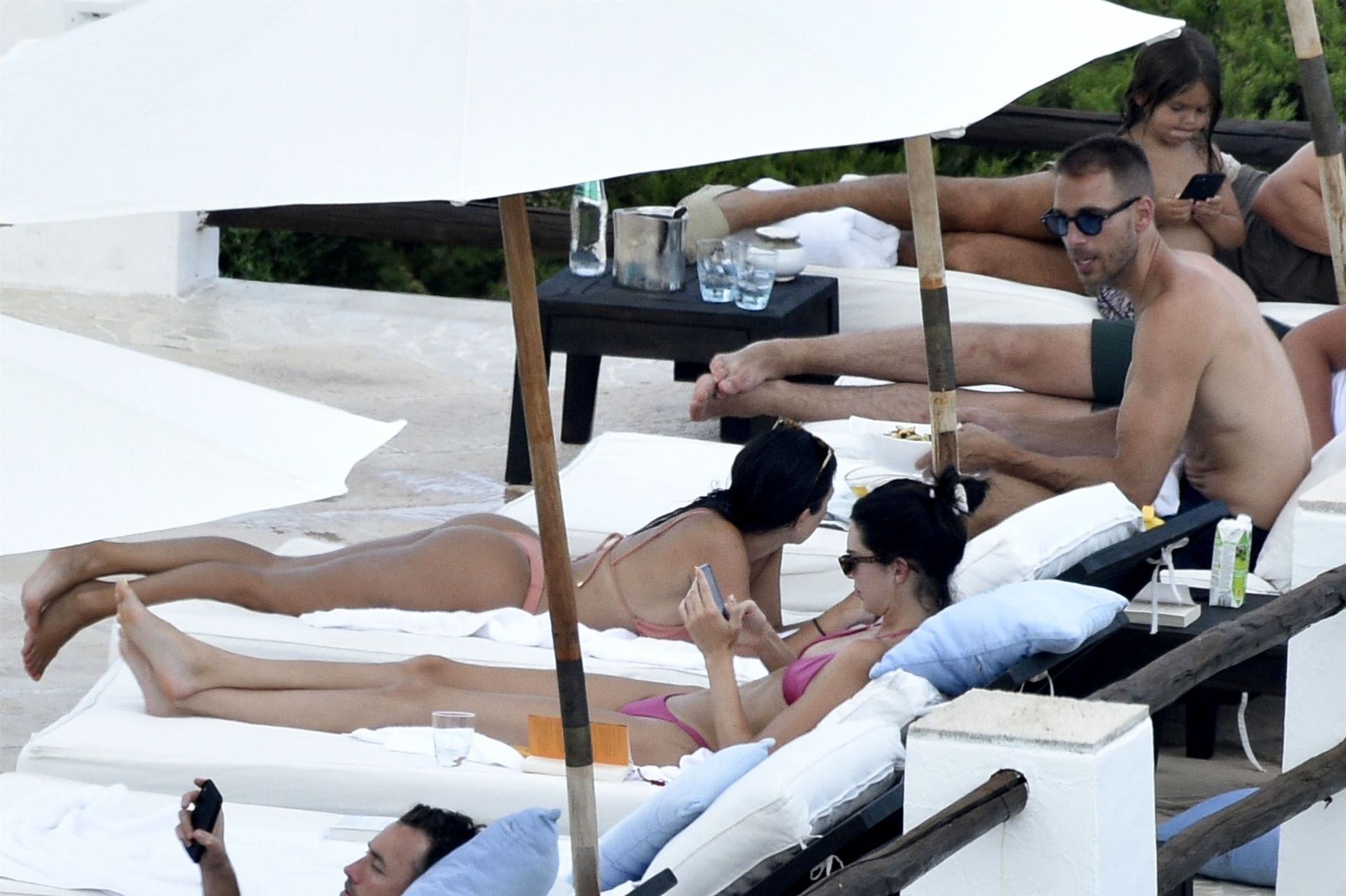 Kendall Jenner si gode la sua vacanza mostrando il suo corpo snello a bordo piscina con Kourtney Kardashian e amici in Costa Smeralda, Sardegna, 27/07/2019. Kendall si può vedere mentre legge un libro prendendo il sole.