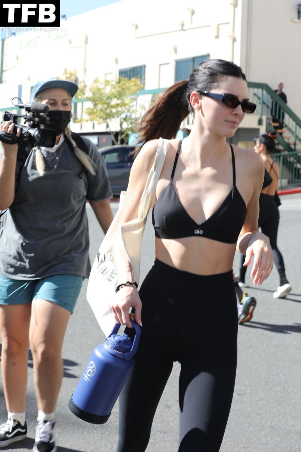 Supermodella Kendall Jenner esce con una borsa di cibo dopo aver visitato un juice bar a West Hollywood dopo il suo allenamento di Pilates, 02/10/2022.