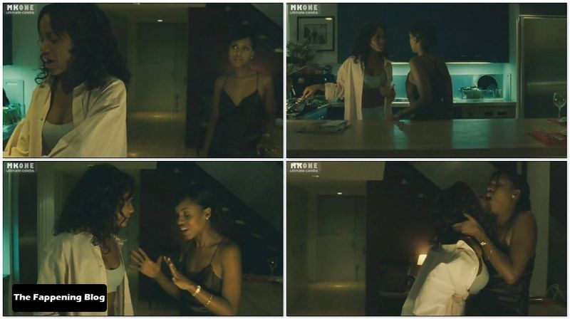 Poi abbiamo la scena di bacio lesbico tra Kerry Washington e Dania Ramirez. Prima si toccano e si baciano in cucina. Poi Kerry si siede sul bancone mentre Dania la stimola con la mano. Guarda altre scene nude e di sesso di Dania Ramirez che abbiamo qui!