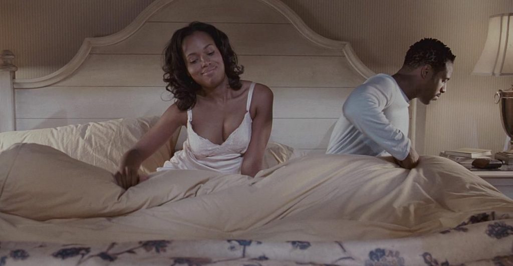 All’inizio, Kerry Washington è vista topless mentre viene cavalcata da un’altra ragazza nuda. Poi hanno sesso lesbico prima di essere interrotte da un uomo. Successivamente vediamo un paio di altre scene con i seni nudi di Kerry mentre litiga con l’uomo. Quest’uomo non si aspettava di vedere la sua ragazza in un’azione lesbica!