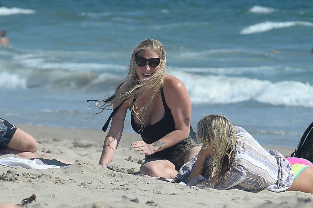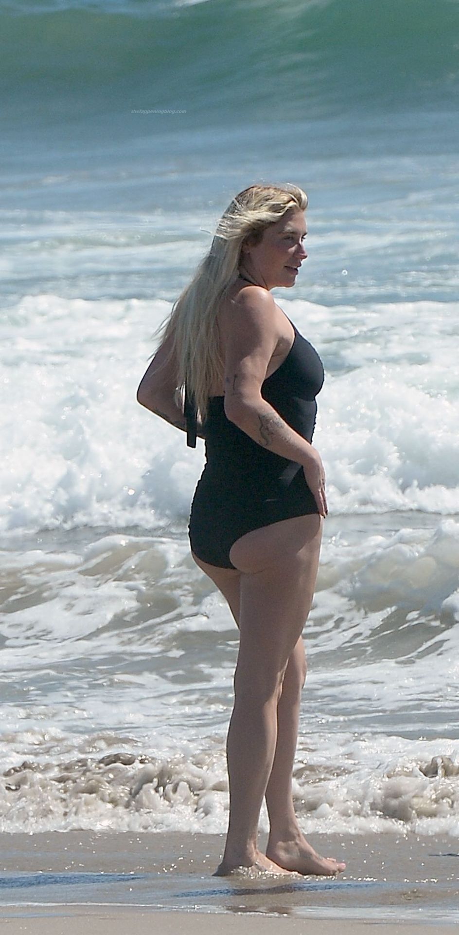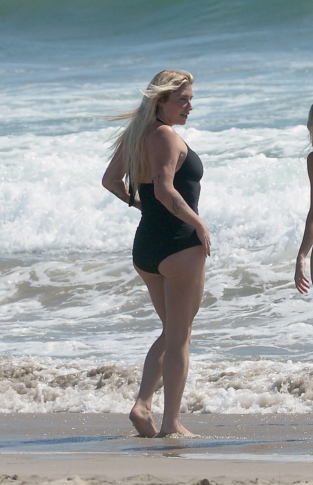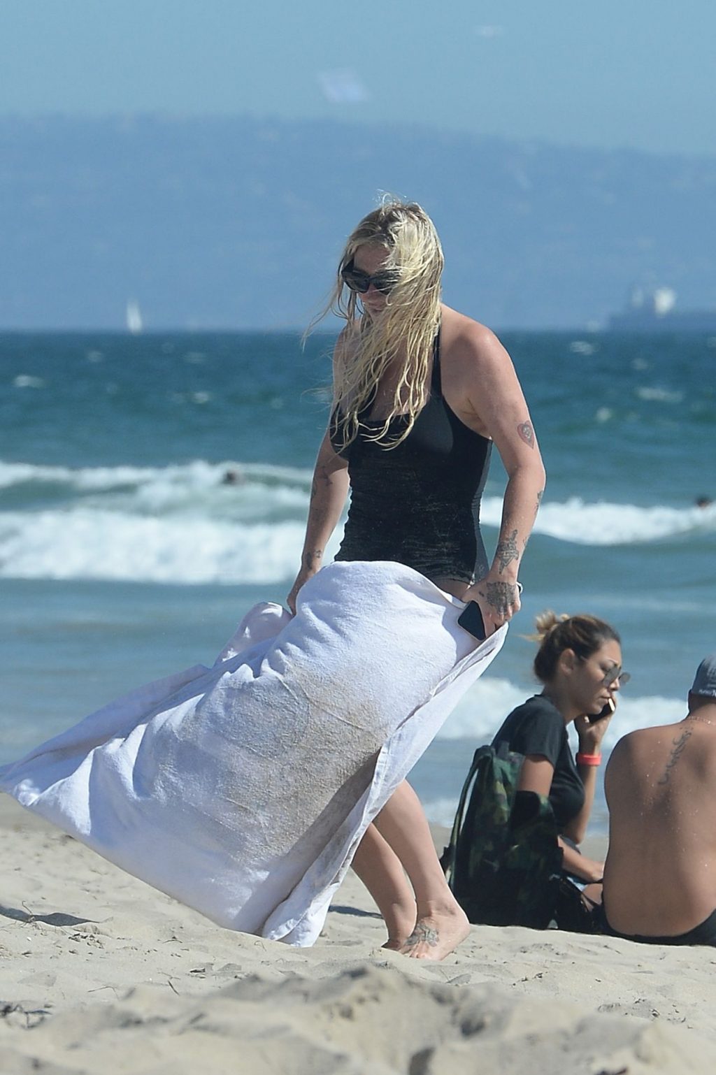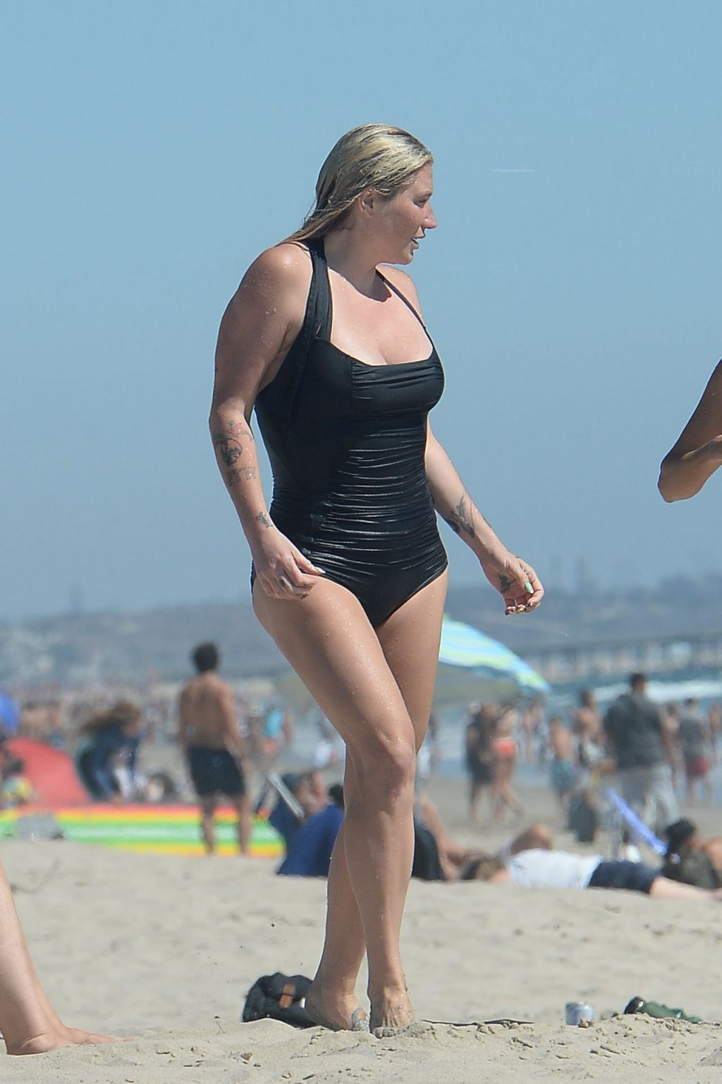Kesha si gode la spiaggia con amici a Los Angeles, 08/02/2021. La cantante procace di 34 anni si è rinfrescata con un tuffo nell’oceano indossando un costume intero nero.