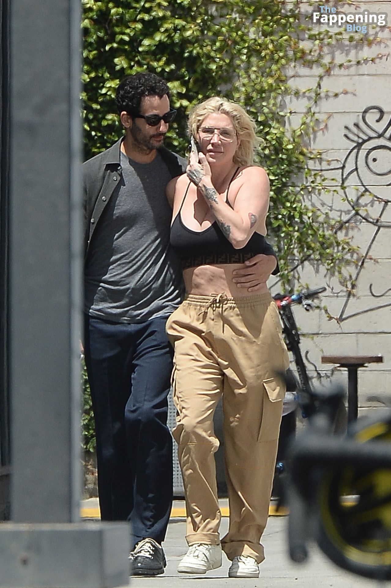 Kesha condivide un bacio con Riccardo Maddalosso a Los Angeles, 05/08/2023. La cantante e cantautrice americana di 36 anni, vestita con un top corto nero e pantaloni color cammello, ha fatto una pausa da una telefonata per avvicinarsi al suo fidanzato prima di dirigersi all’Erewhon Market per un frullato.