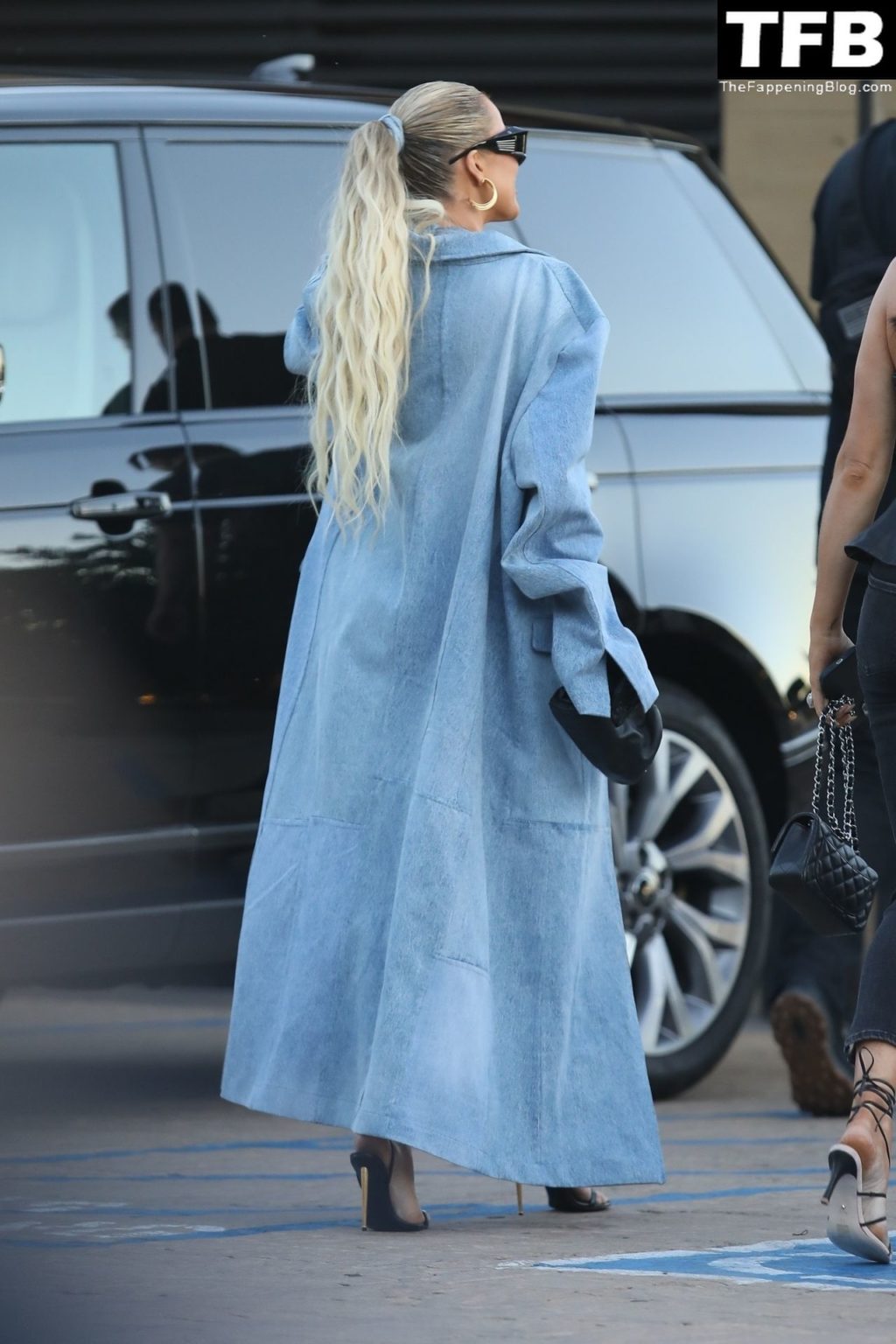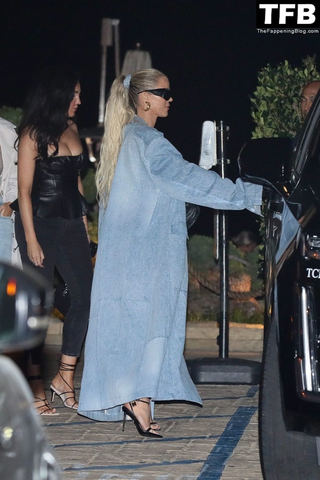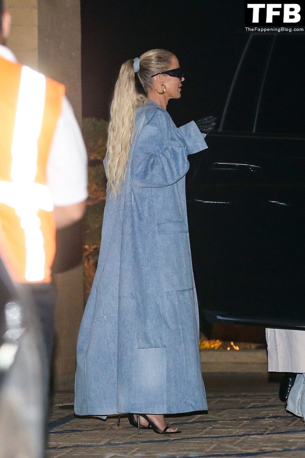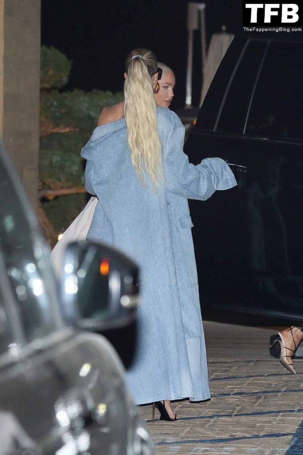 Khloe Kardashian arriva al raffinato Nobu di Malibu per una festa Vogue, 23/03/2022. La star della realtà TV sfoggia un look double denim mentre esce dall’evento.