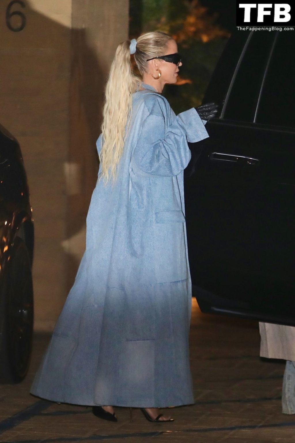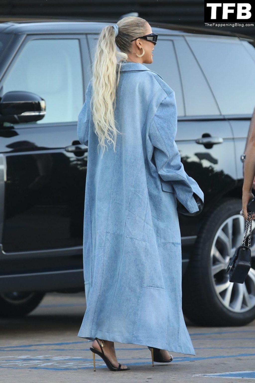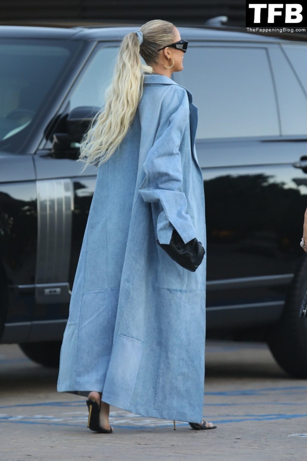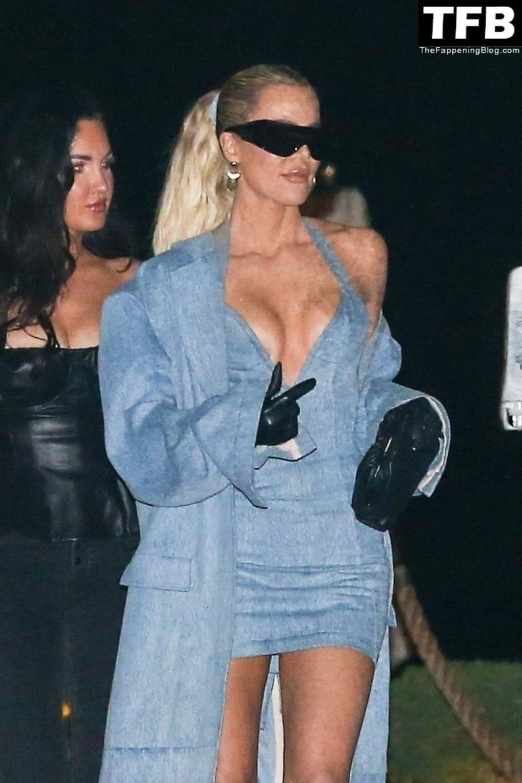 Khloe Kardashian arriva al raffinato Nobu di Malibu per una festa Vogue, 23/03/2022. La star della realtà TV sfoggia un look double denim mentre esce dall’evento.