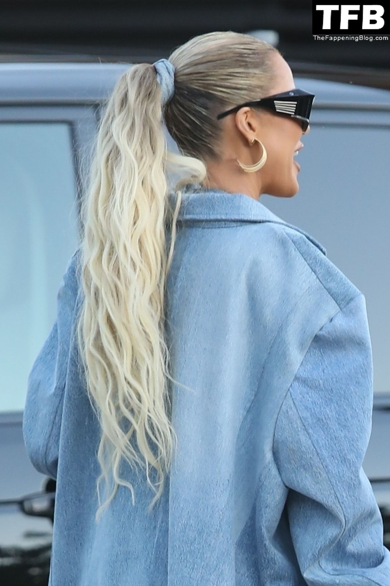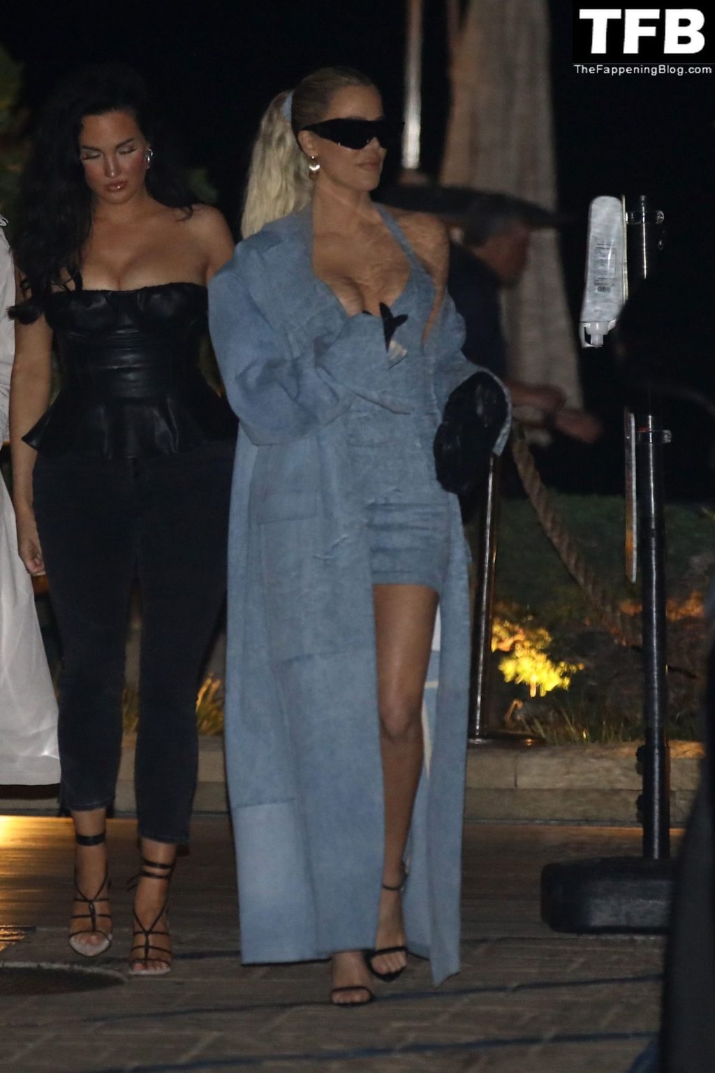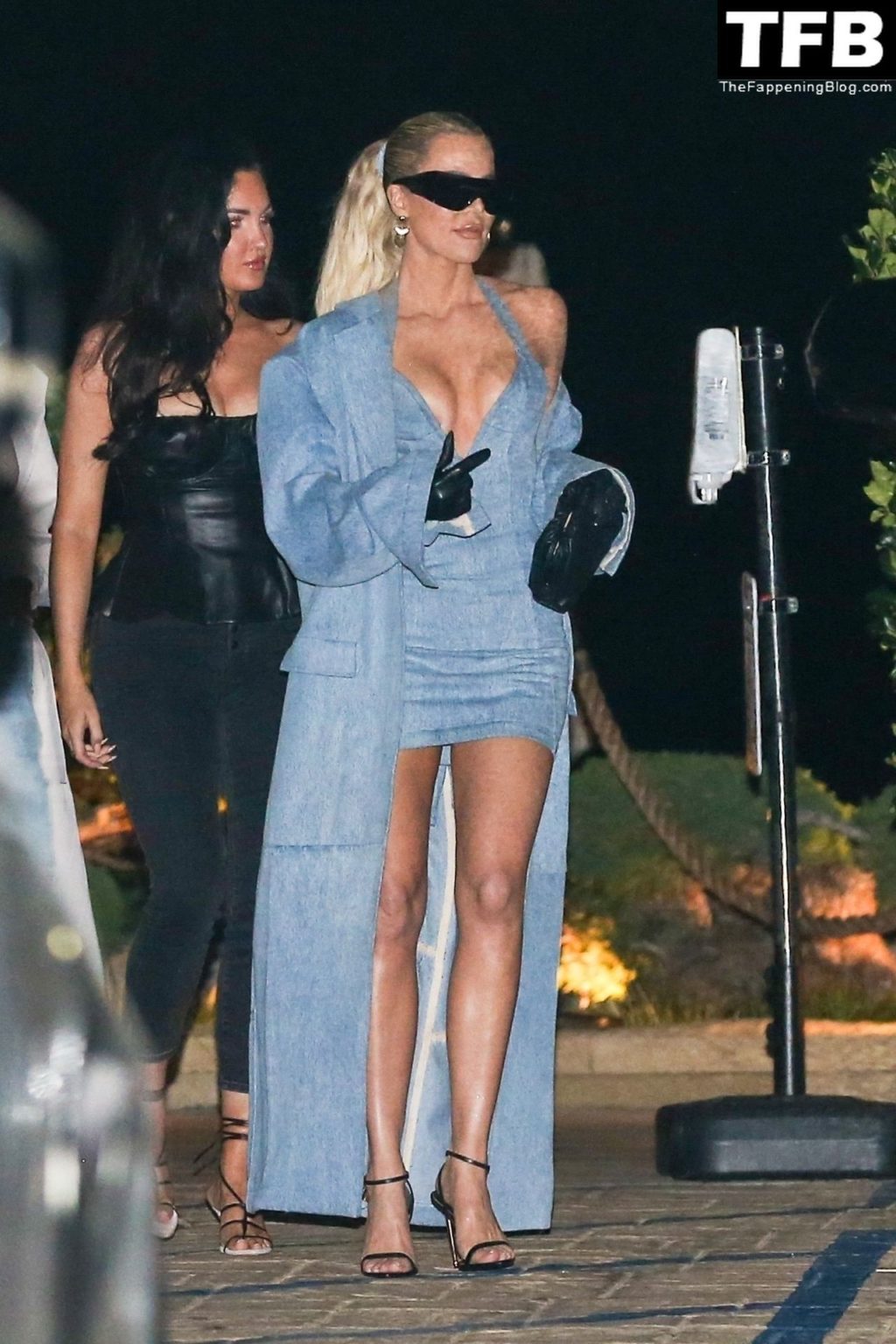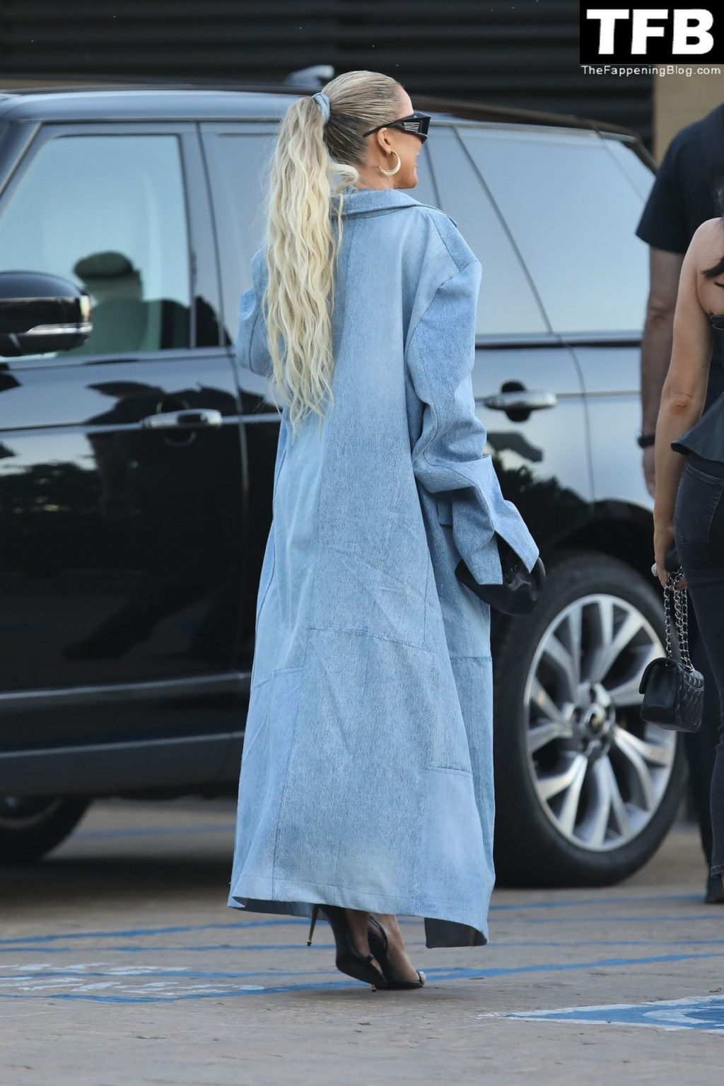 Khloe Kardashian arriva al raffinato Nobu di Malibu per una festa Vogue, 23/03/2022. La star della realtà TV sfoggia un look double denim mentre esce dall’evento.