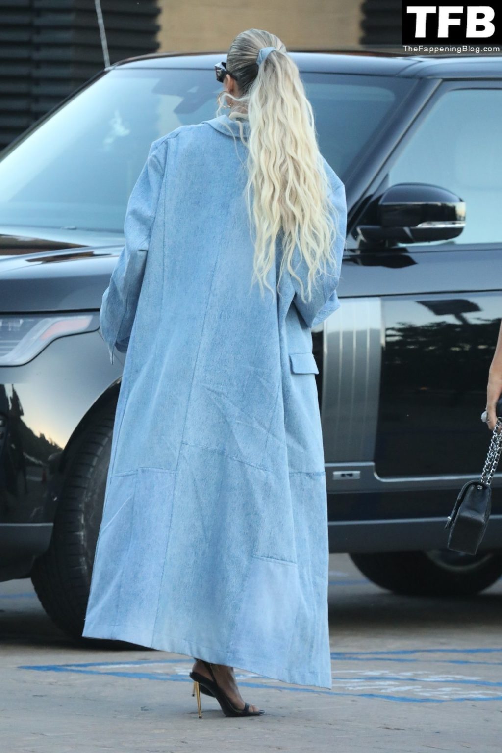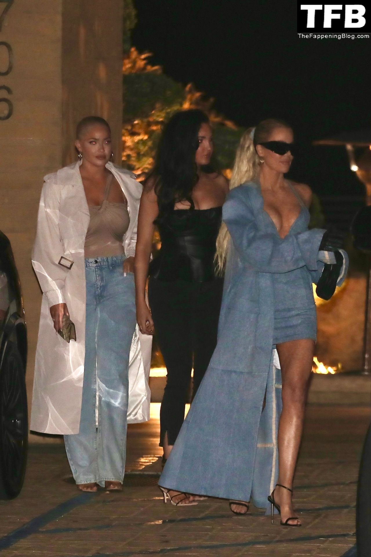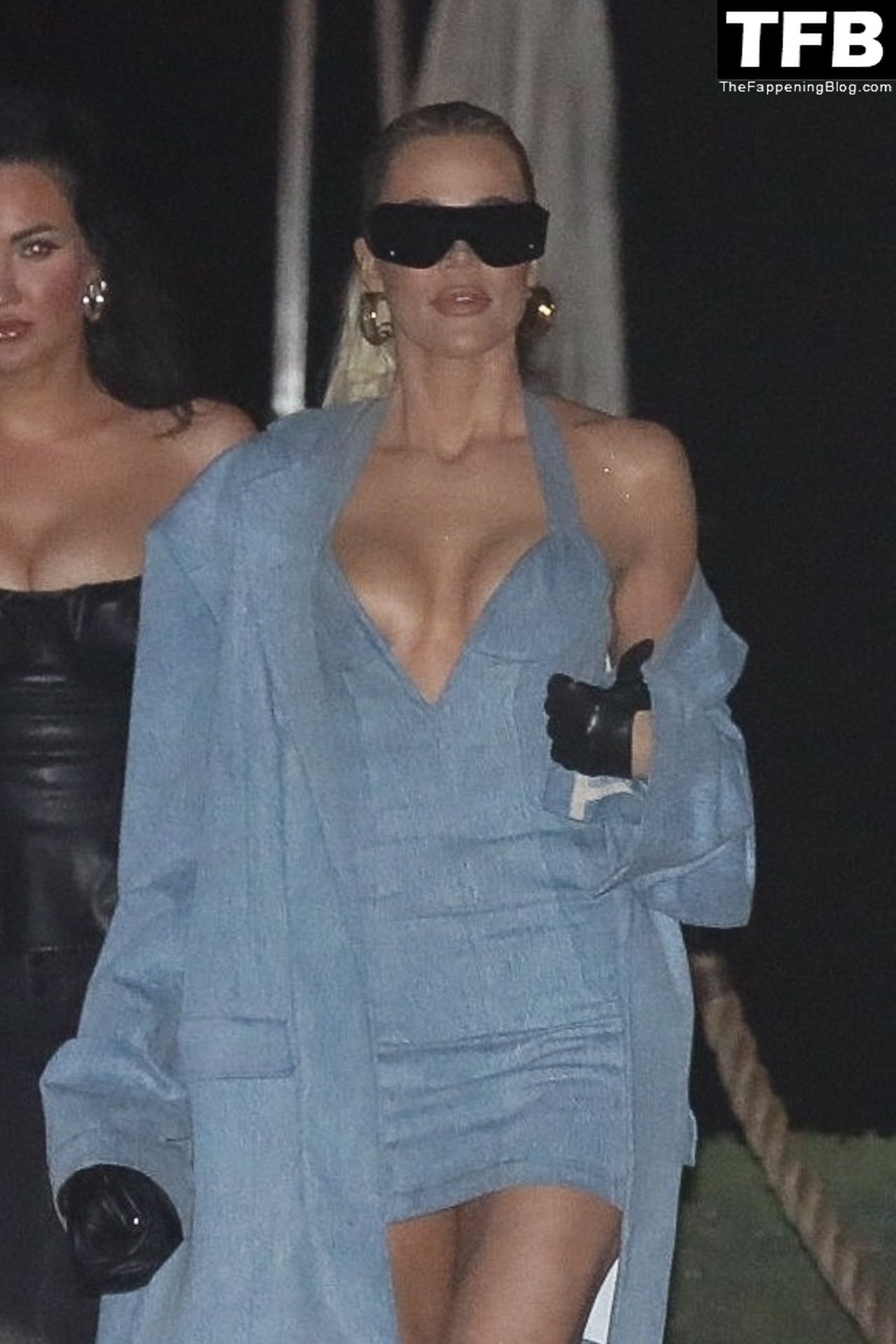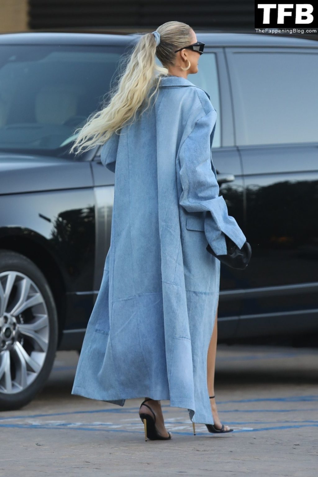 Khloe Kardashian arriva al raffinato Nobu di Malibu per una festa Vogue, 23/03/2022. La star della realtà TV sfoggia un look double denim mentre esce dall’evento.