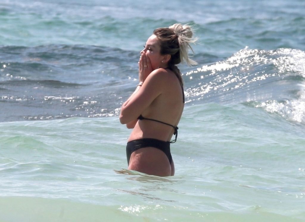 Khloe Terae continua a scaldare la spiaggia di Tulum, 04/03/2019. La modella di Playboy ha mostrato la sua figura in un minuscolo bikini nero mentre giocava tra le onde dell’oceano con la sua amica.
