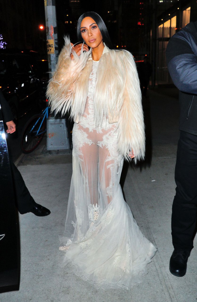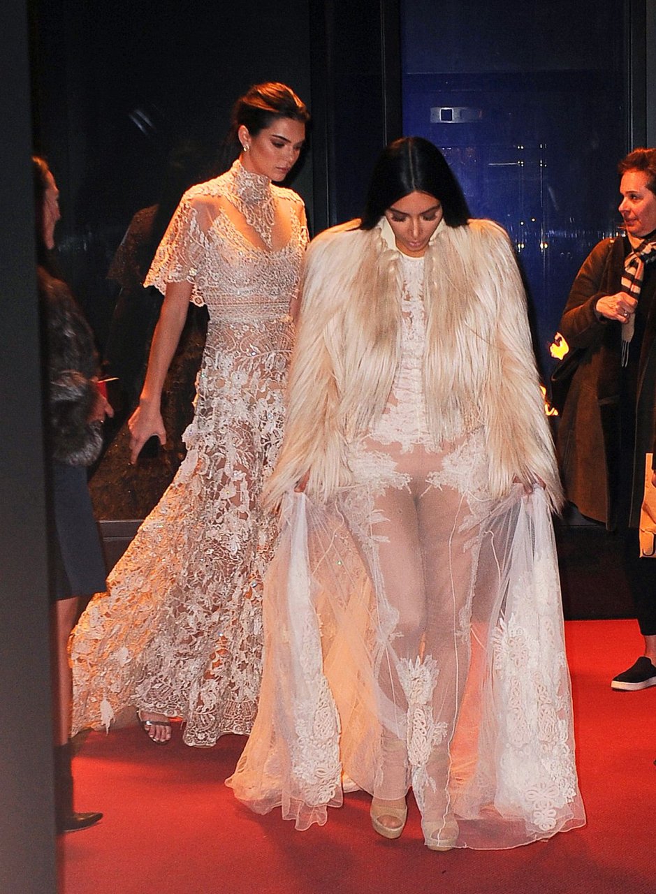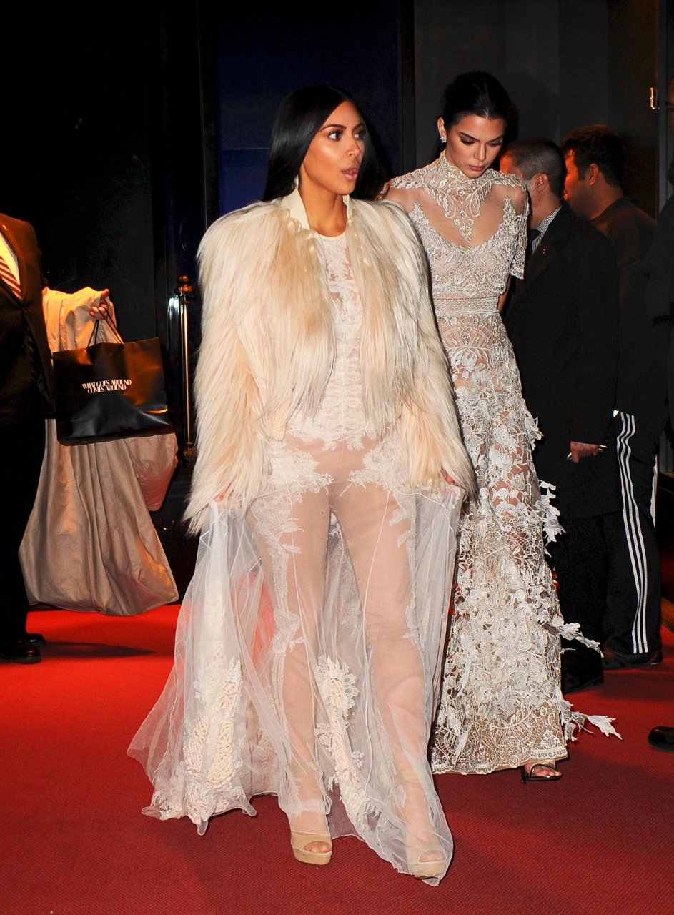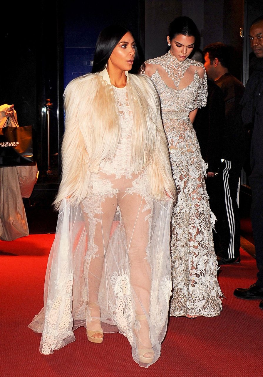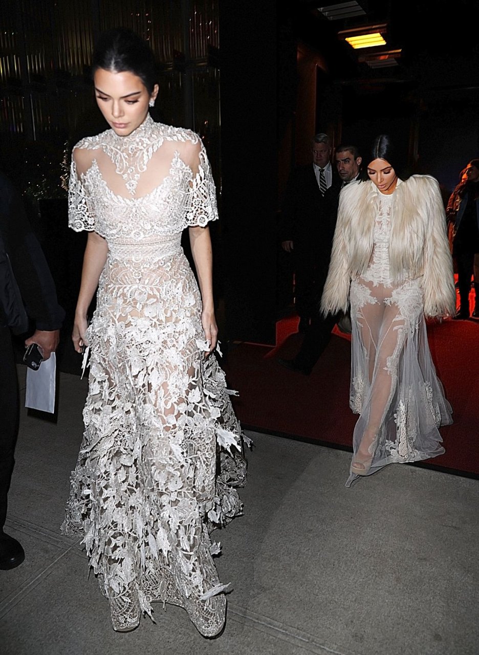 Kim Kardashian e Kendall Jenner appaiono bellissime in abiti bianchi trasparenti mentre escono a NYC dopo le riprese di ‘Ocean’s Eight’, 16/01/2017.