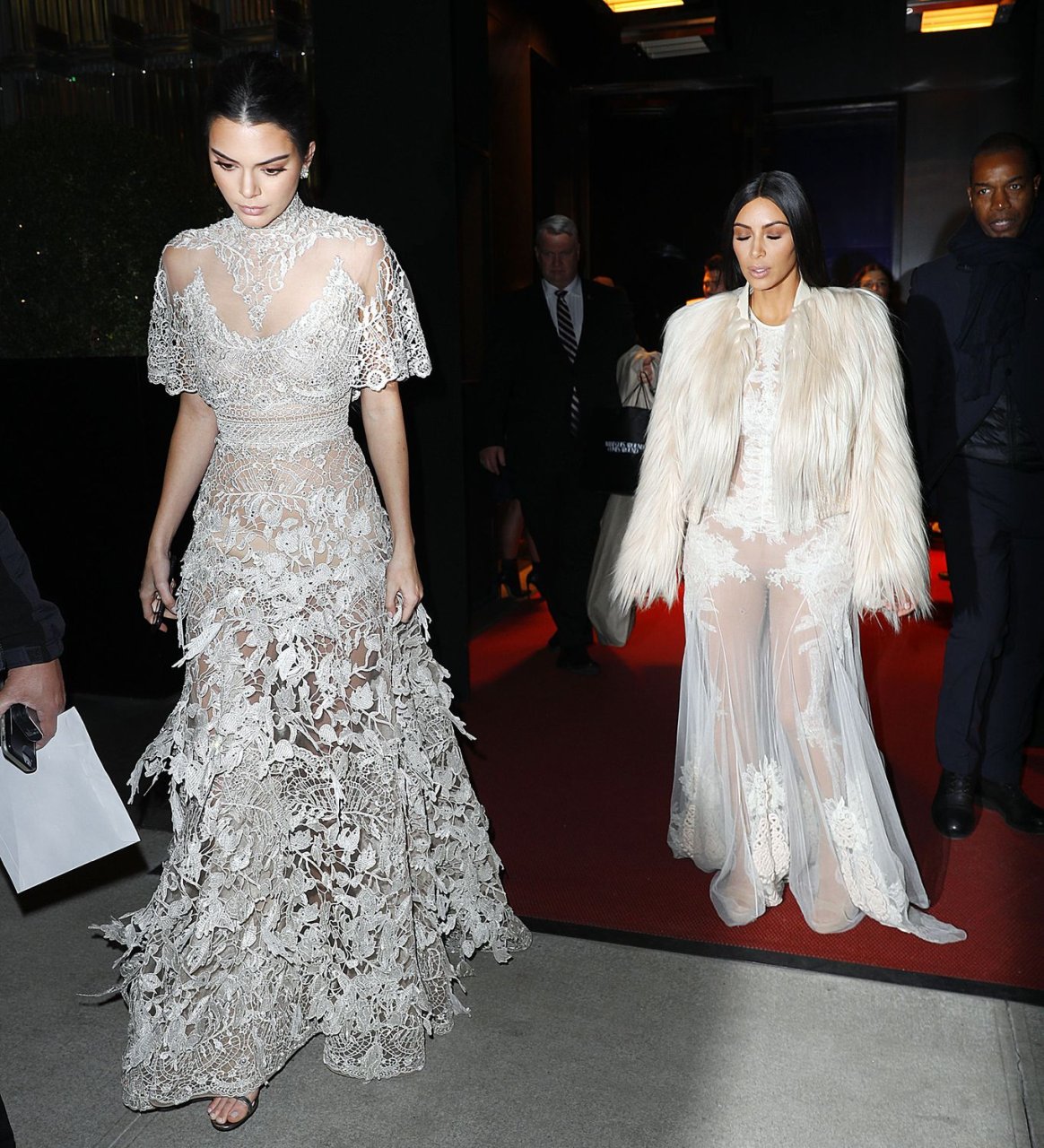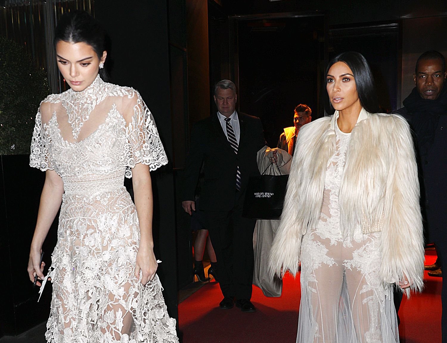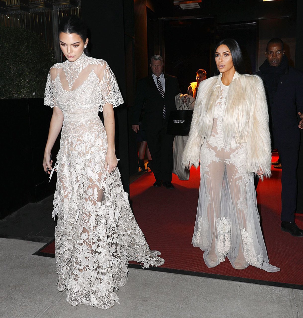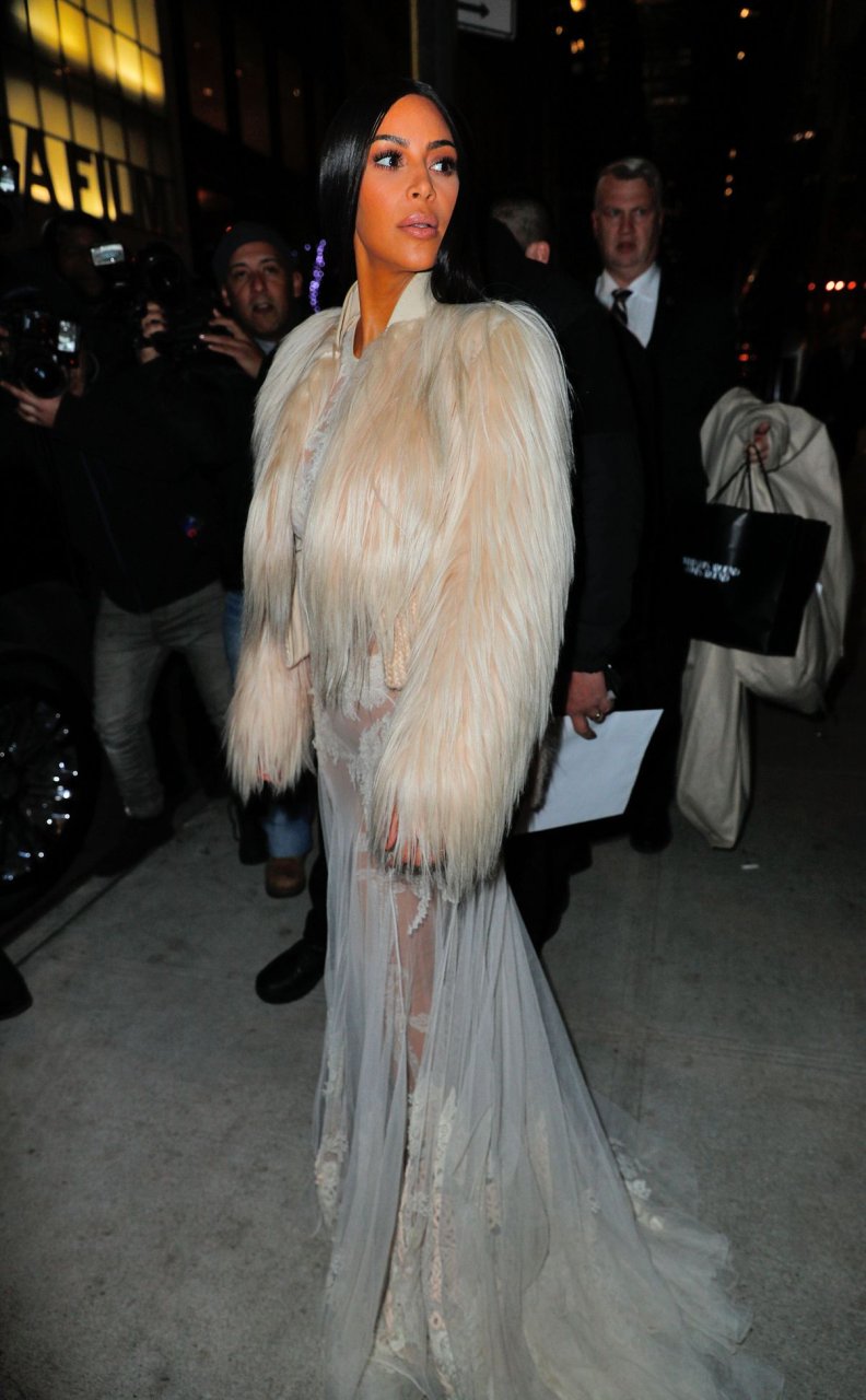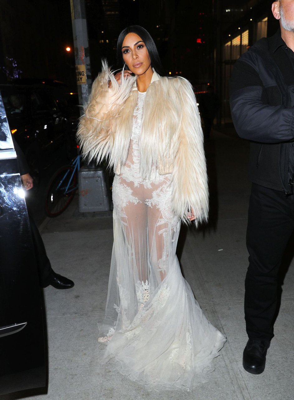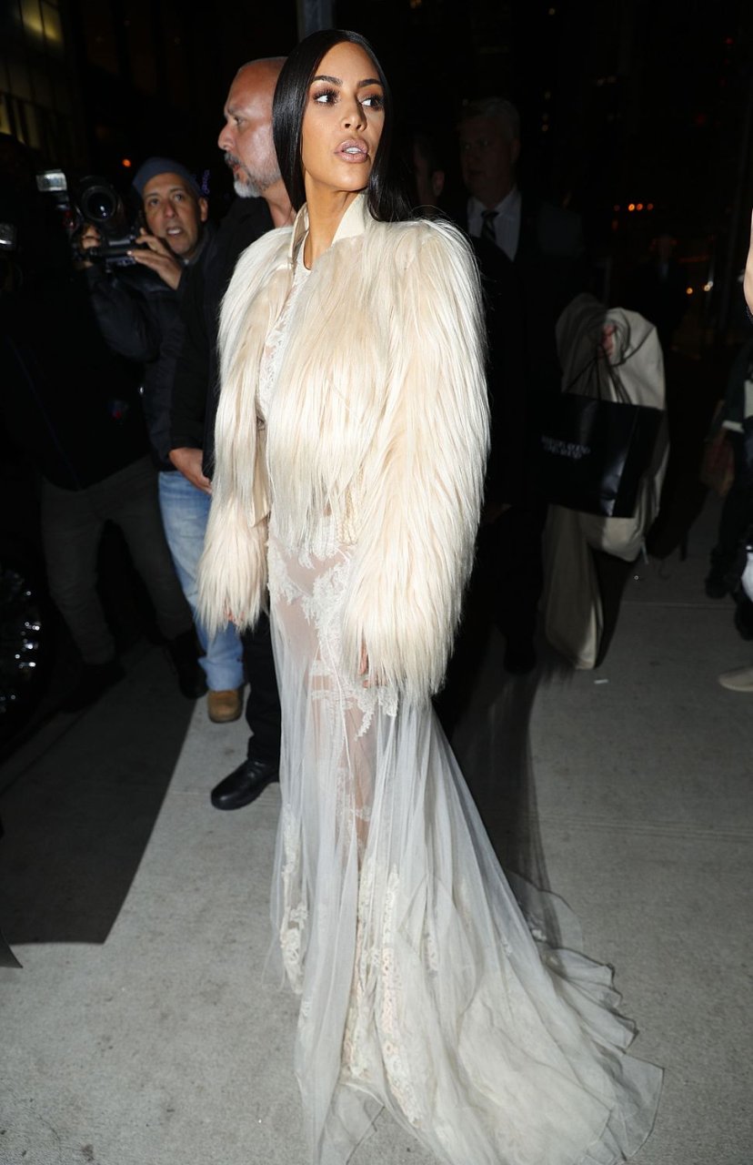 Kim Kardashian e Kendall Jenner appaiono bellissime in abiti bianchi trasparenti mentre escono a NYC dopo le riprese di ‘Ocean’s Eight’, 16/01/2017.