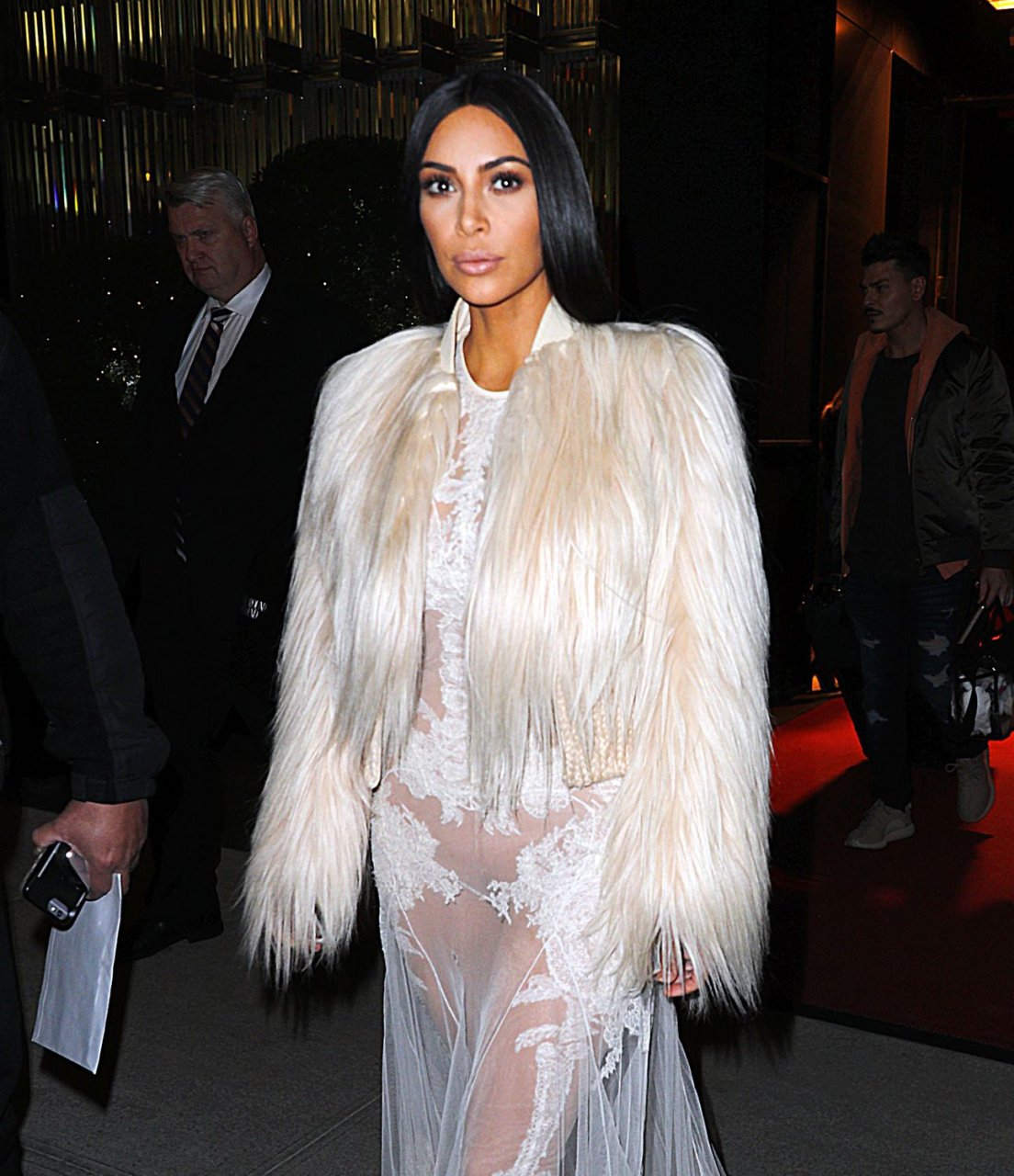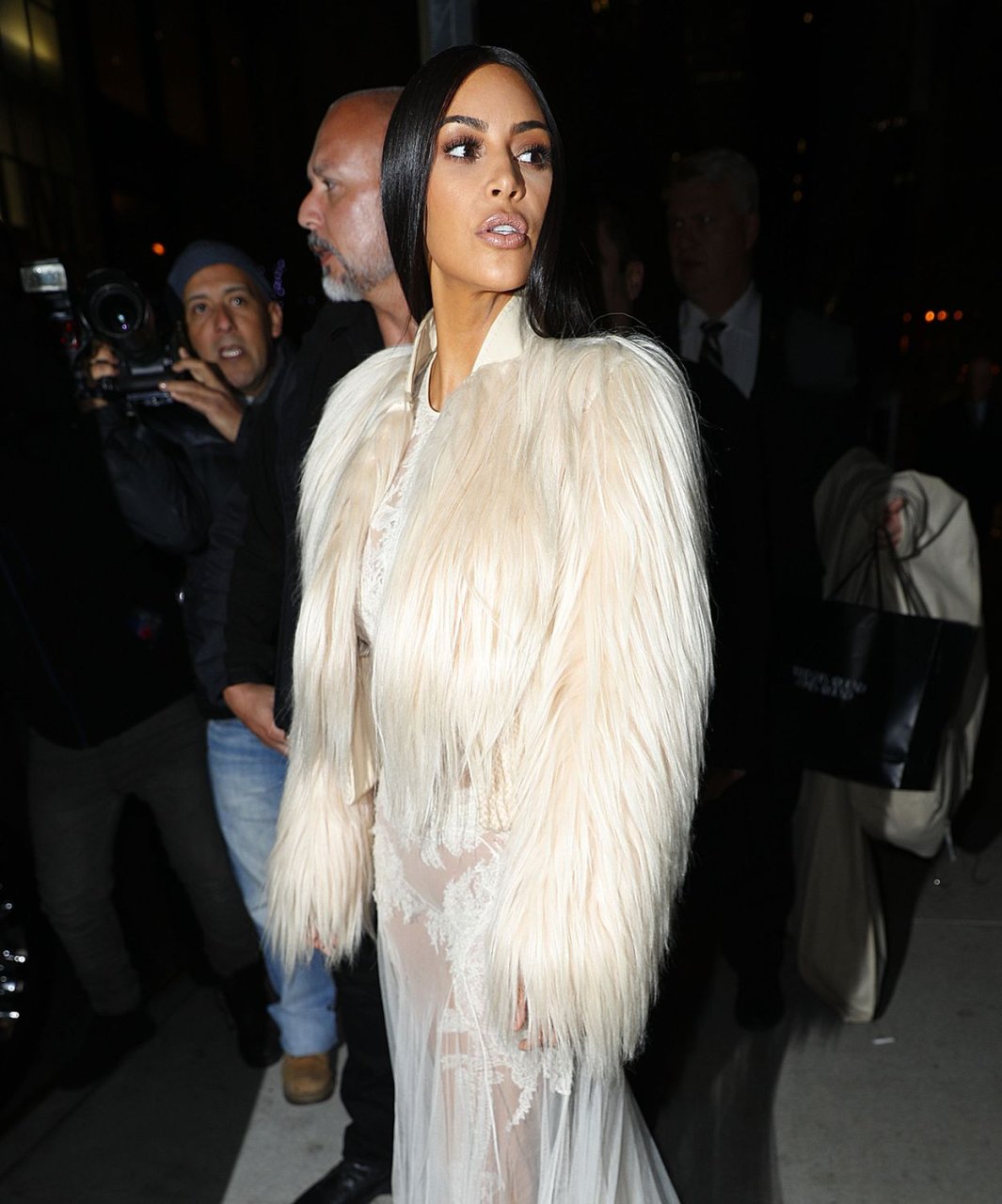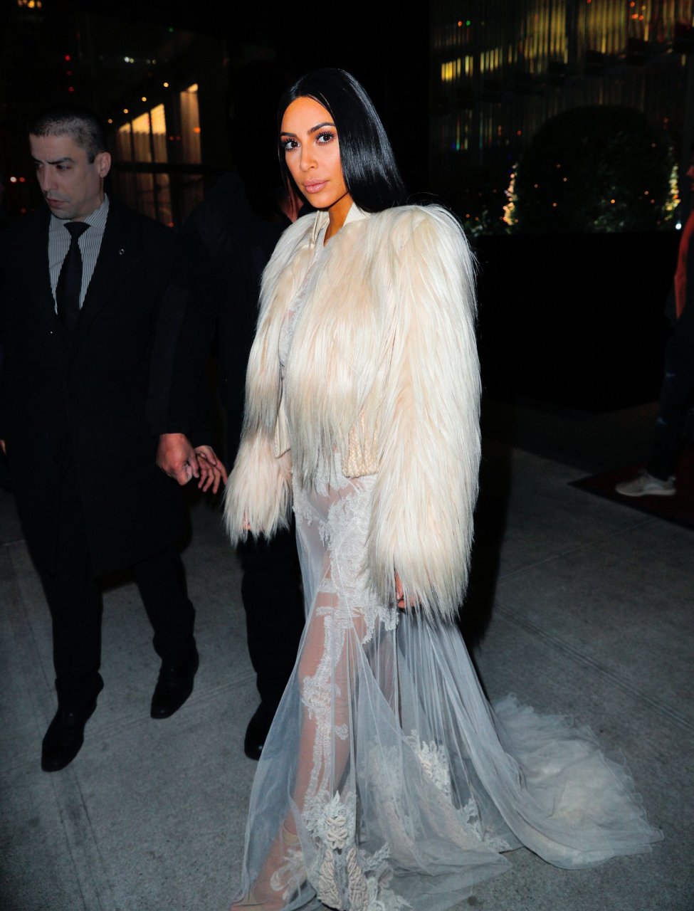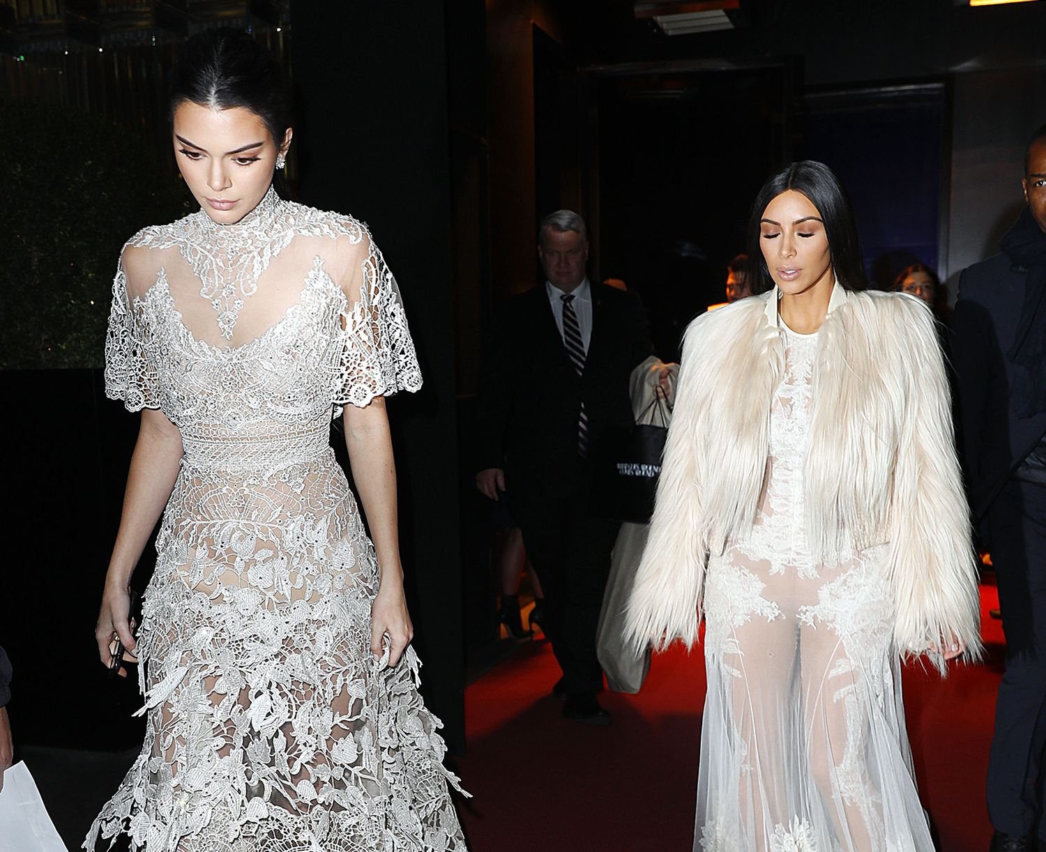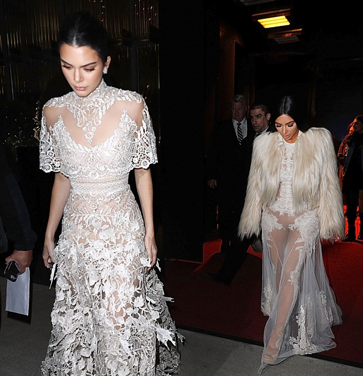 Kim Kardashian e Kendall Jenner appaiono bellissime in abiti bianchi trasparenti mentre escono a NYC dopo le riprese di ‘Ocean’s Eight’, 16/01/2017.