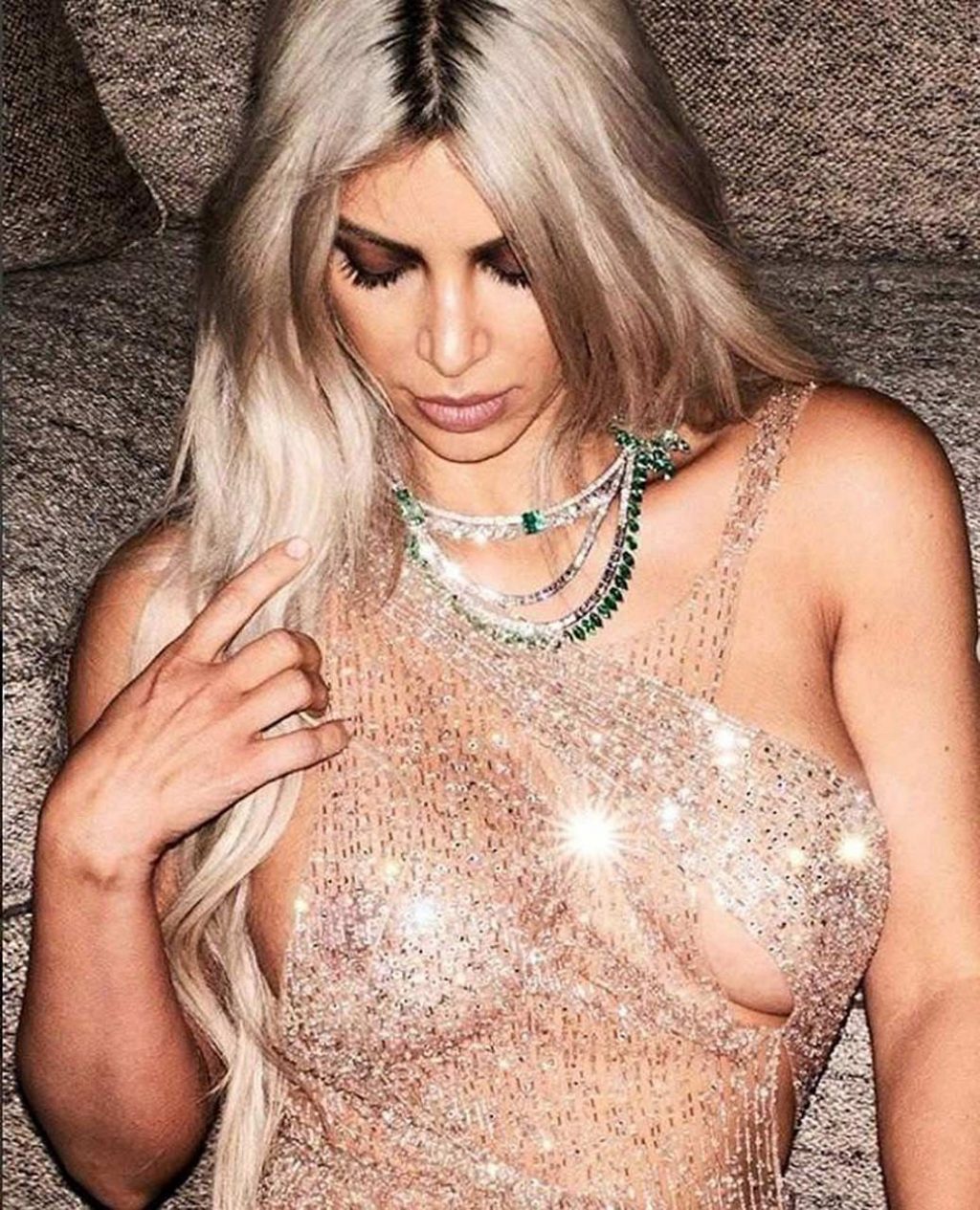 After her last leaked pics of Kim Kardashian we posted above, she’s almost naked again. This time Kim Kardashian West did one great photo shooting for Violet Grey, she was wearing a see-through white top, and her hard nipples had their time! After that, Kim was wearing a sparkly transparent dress braless, so enjoy this perfect view of her big boobs!