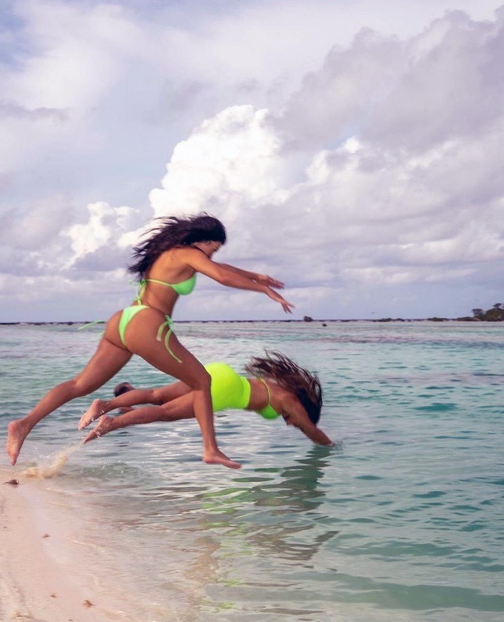 Check this out, folks! Here are some of the newest Kim Kardashian sexy pics! She posed in a screaming yellow bikini while on a beach somewhere with her sisters! The Kardashians never reveal their vacation locations, so I can’t tell you where this was taken. Either way, enjoy the photos, and also, keep scrolling down for a video! She emerges out of the water and walks to the camera!