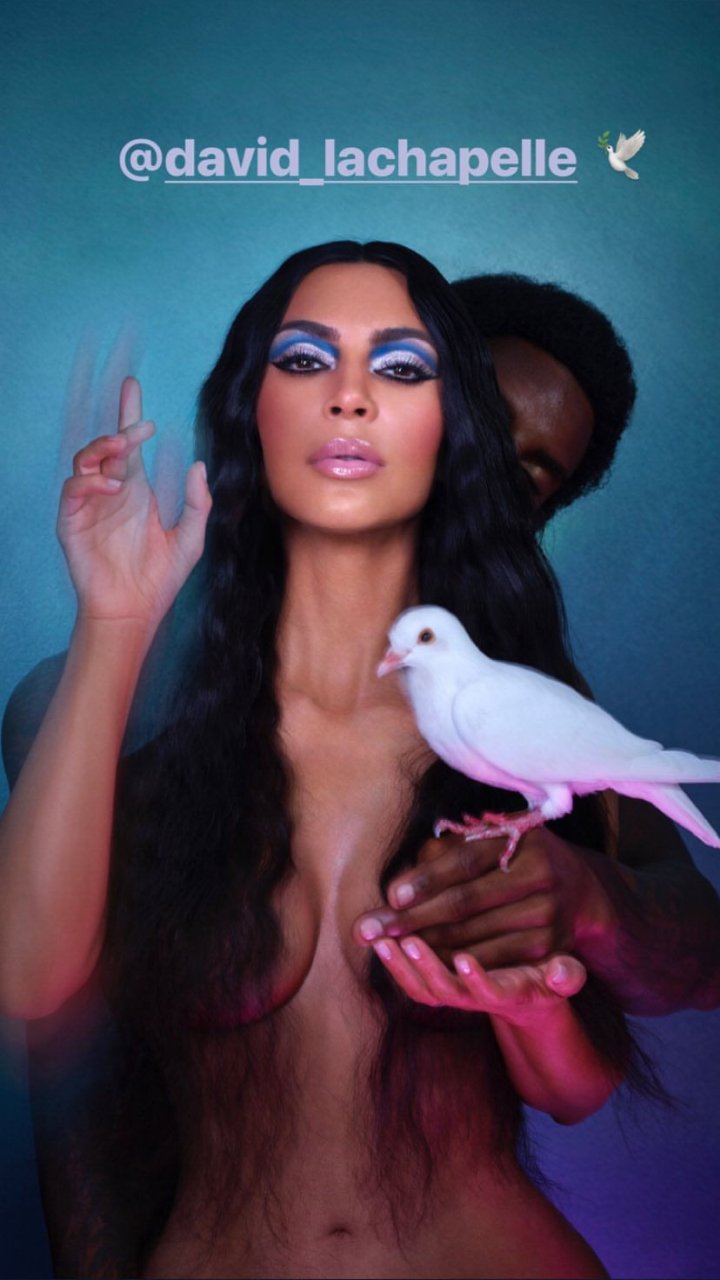 Kim Kardashian promuove le sue cose sopravvalutate con alcune foto nude (coperte) e sexy di David LaChapelle (2018).