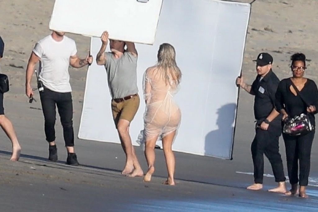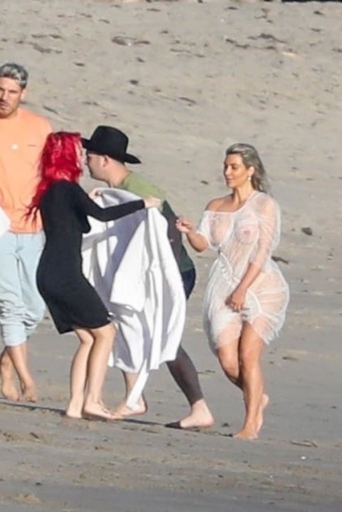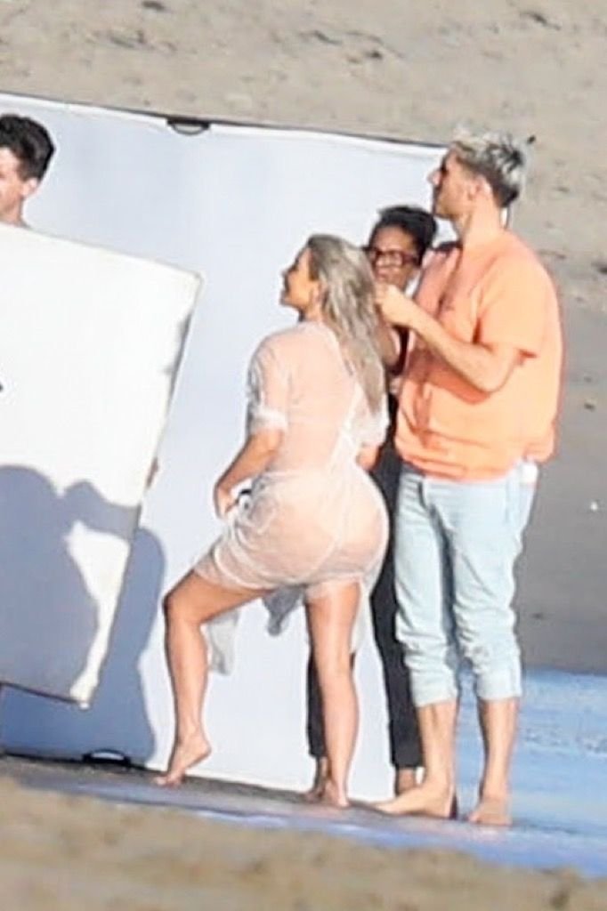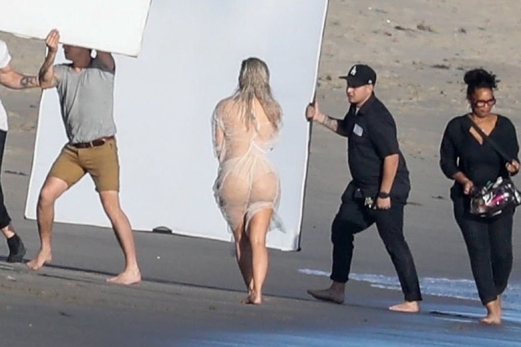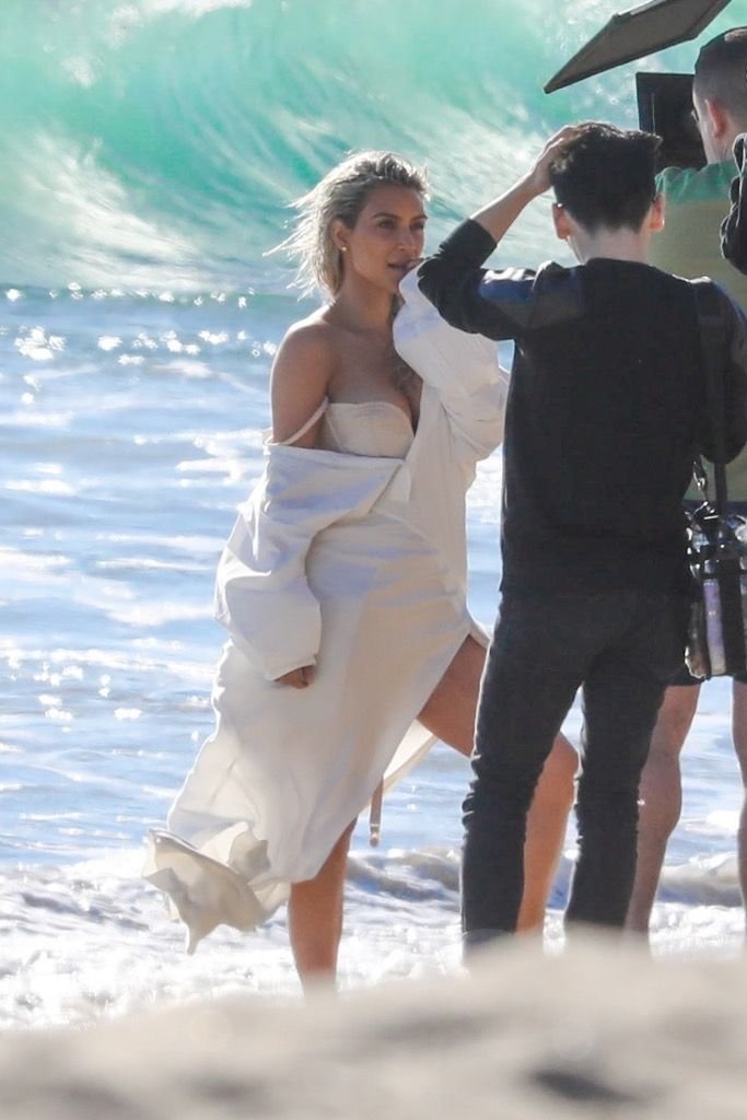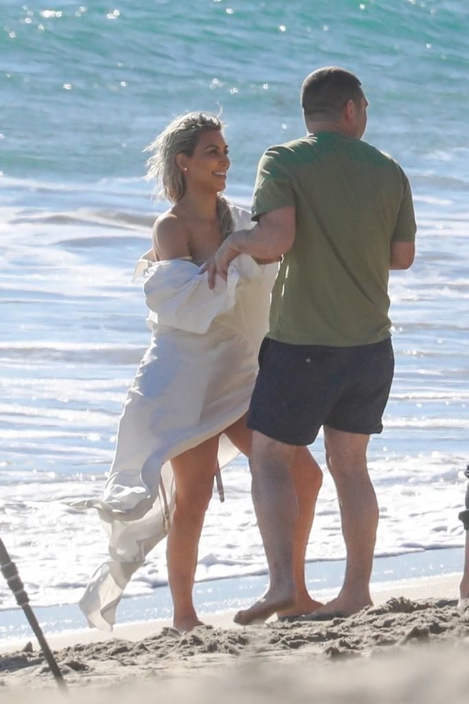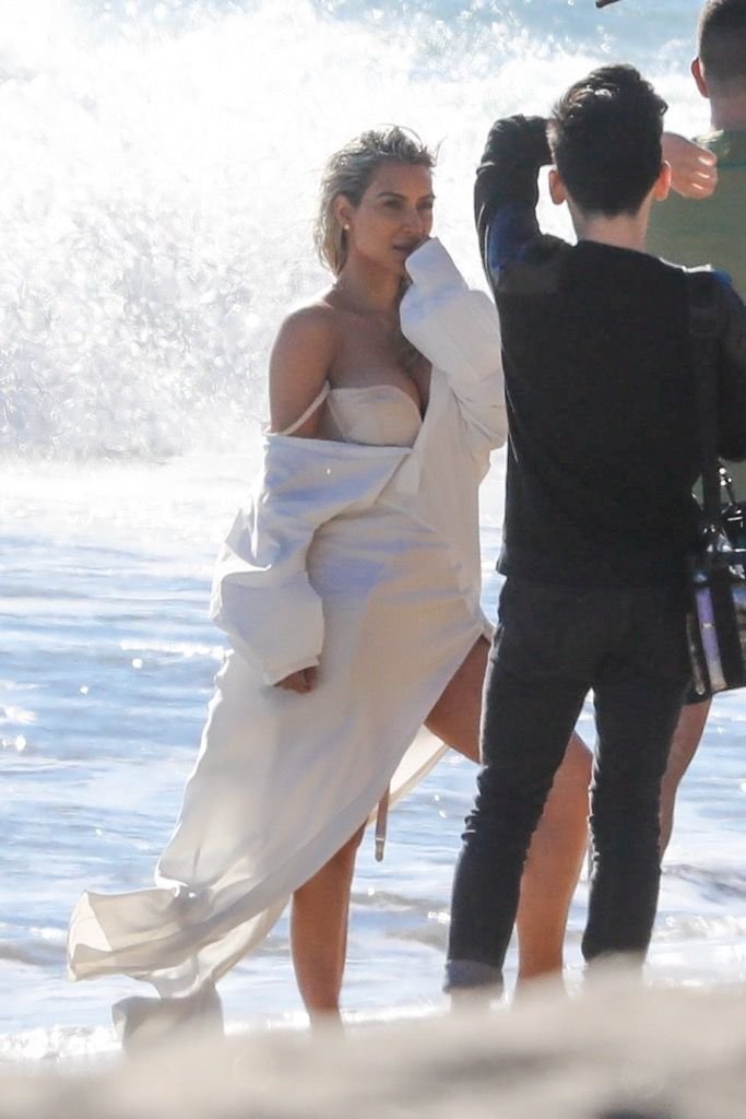 La star della TV Kim Kardashian, 37 anni, appare ridicola durante un servizio fotografico sulla spiaggia di Malibu, 22/01/2018.