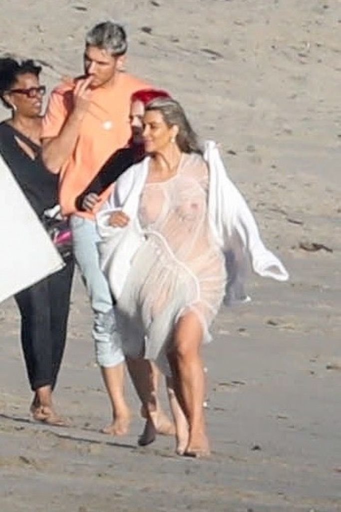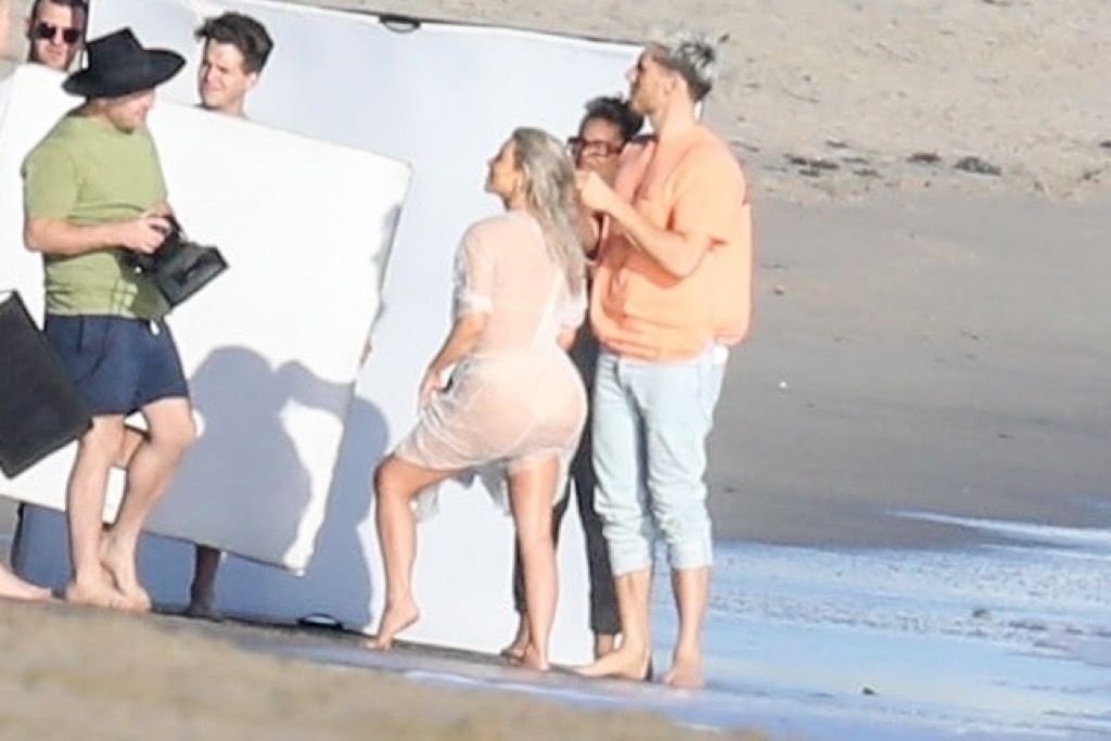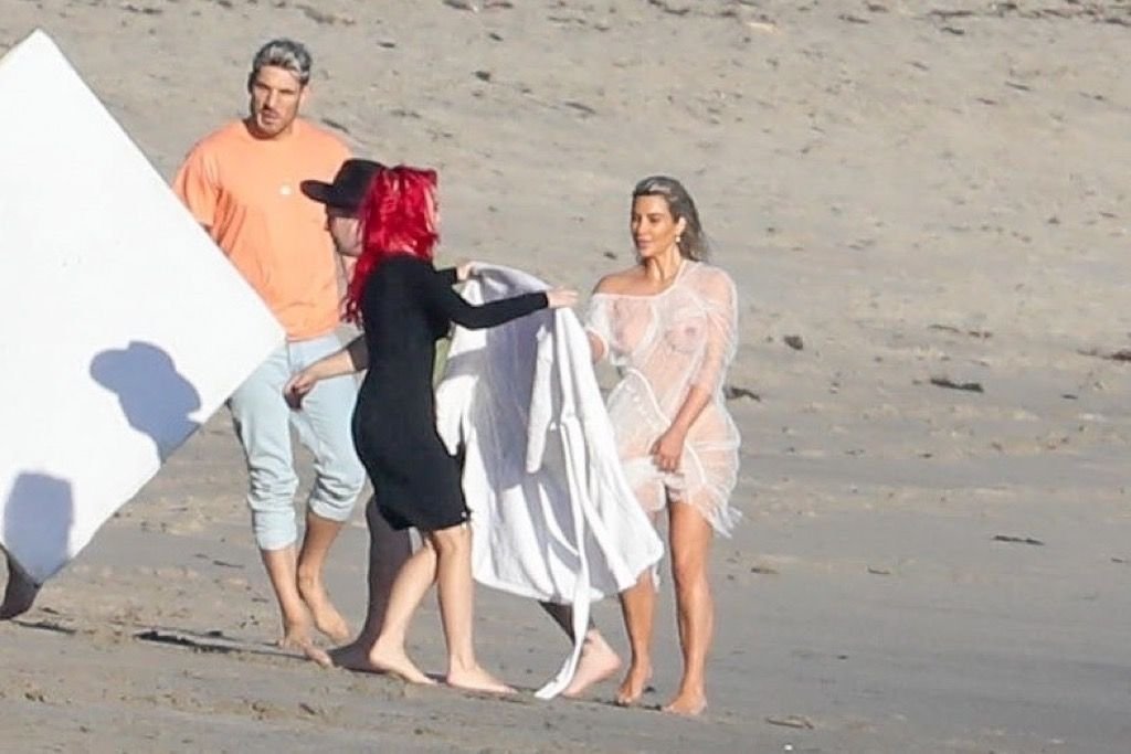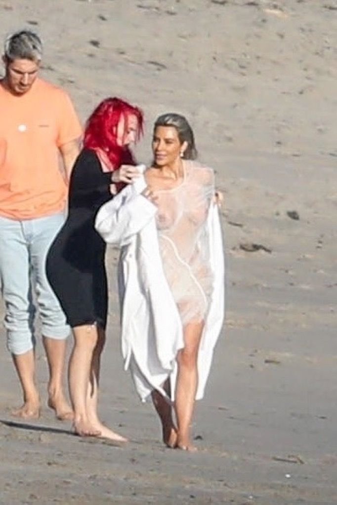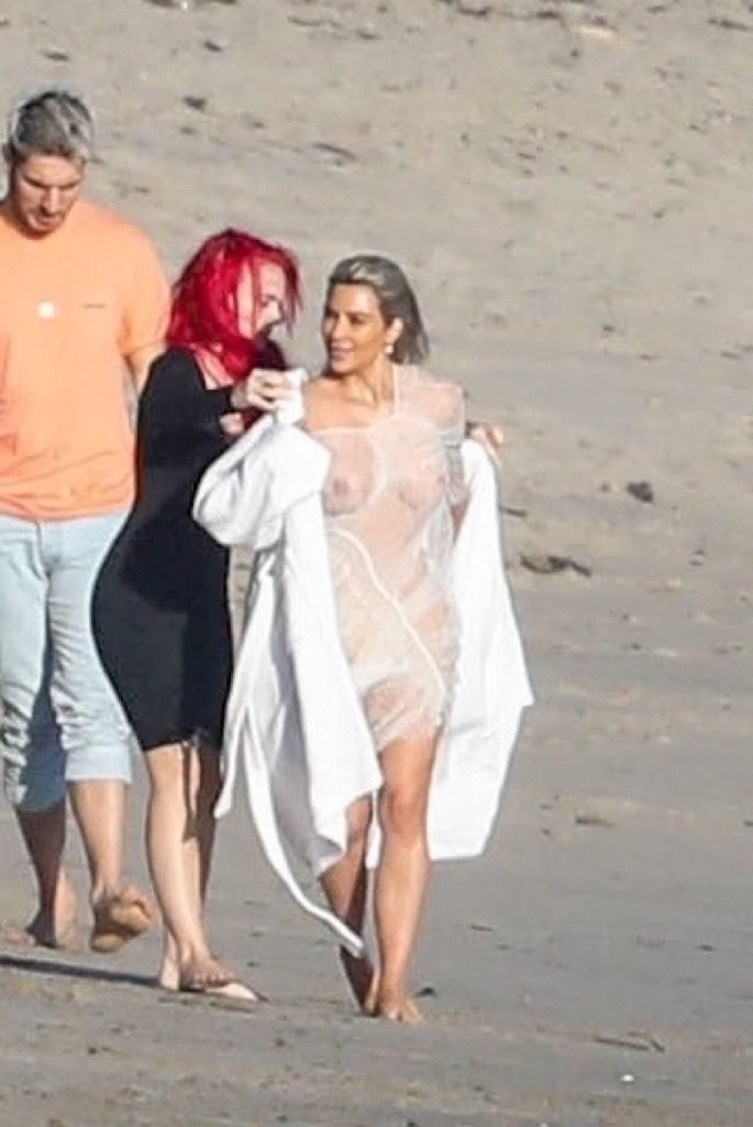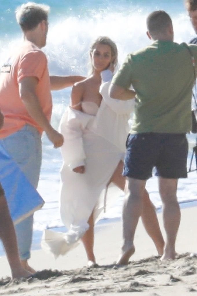 La star della TV Kim Kardashian, 37 anni, appare ridicola durante un servizio fotografico sulla spiaggia di Malibu, 22/01/2018.