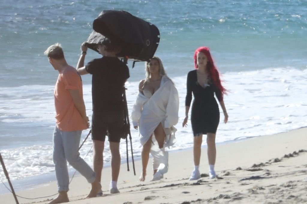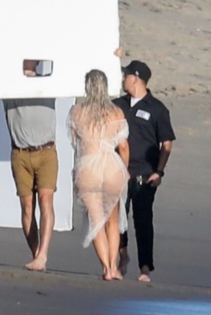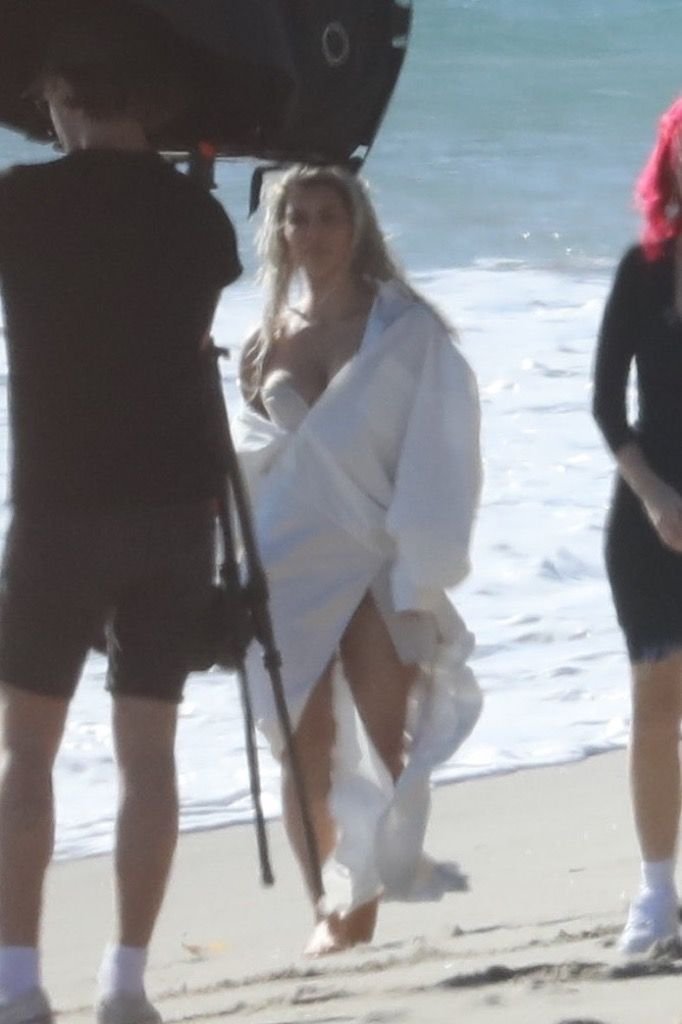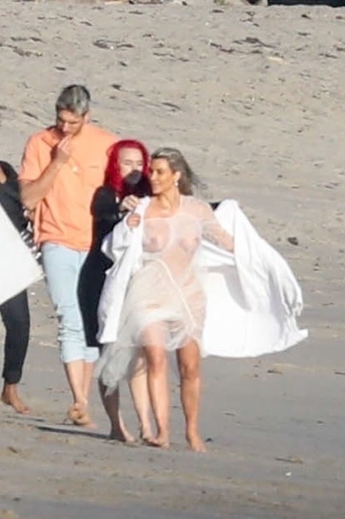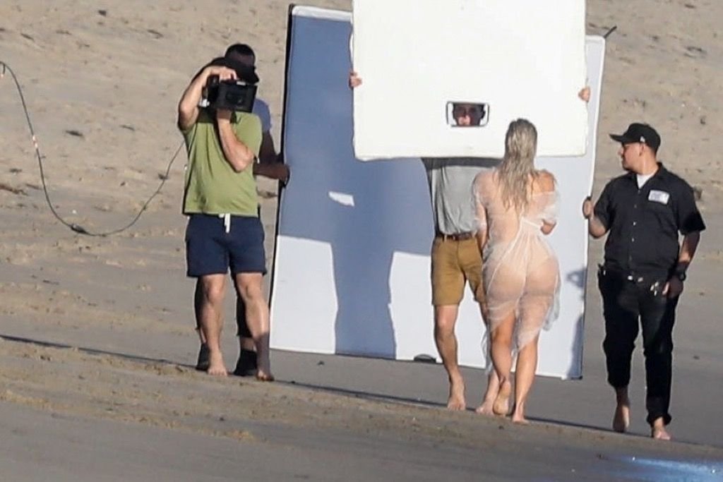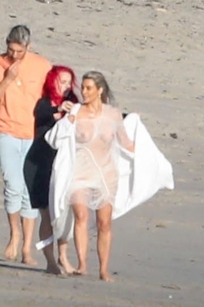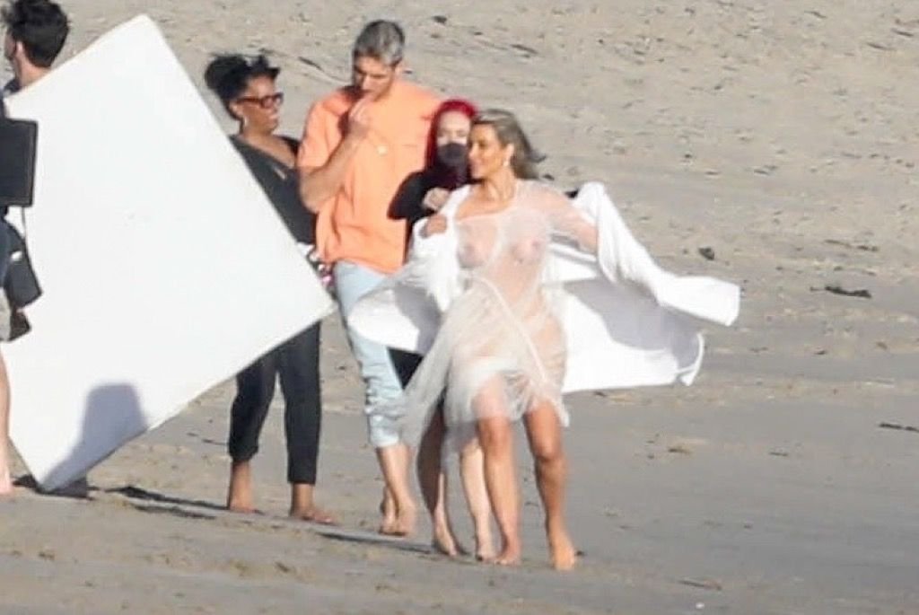 La star della TV Kim Kardashian, 37 anni, appare ridicola durante un servizio fotografico sulla spiaggia di Malibu, 22/01/2018.