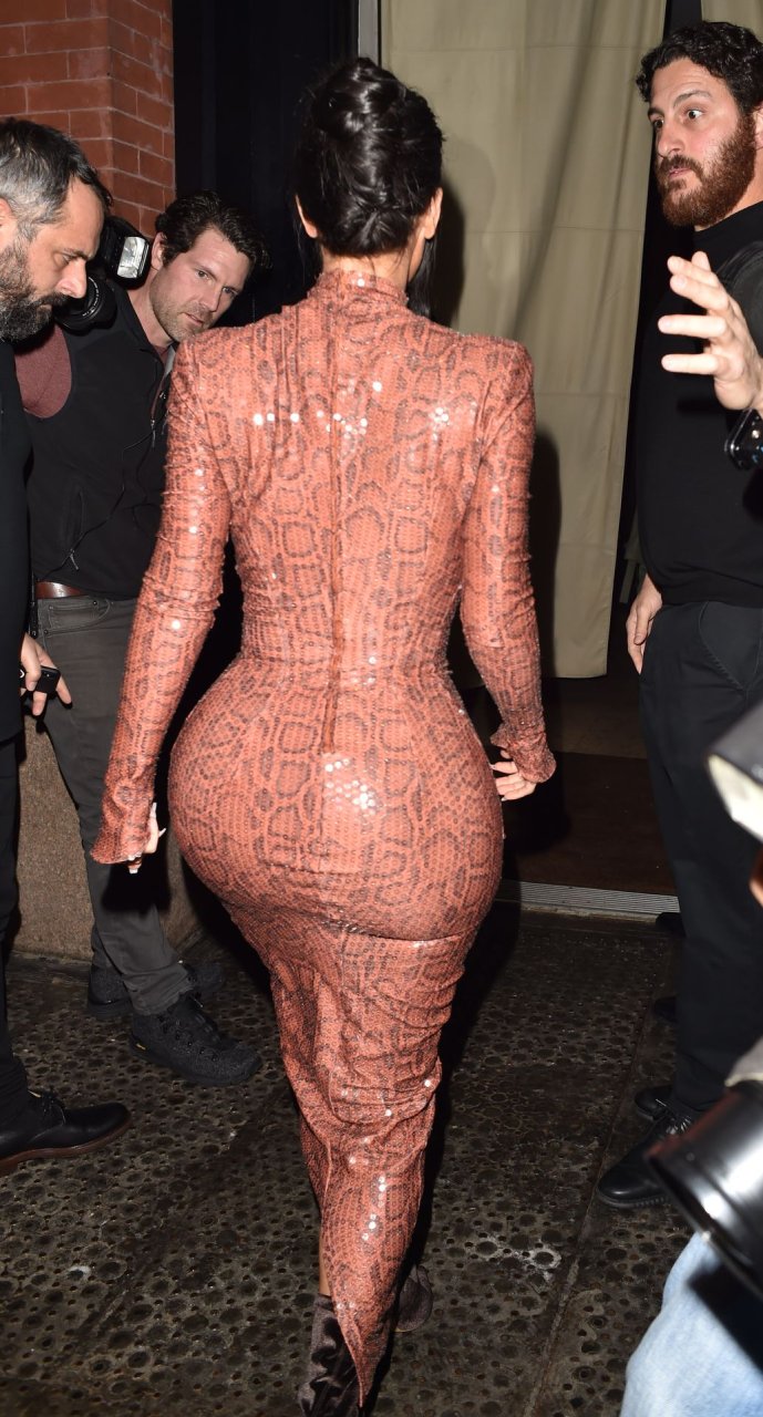 Guarda QUELLO. È oltre l'impraticabile. Voglio dire, le tue scelte a letto con lei sono praticamente solo il missionario e lei sopra. Quel sedere protesico da scherzo pratico impedisce qualsiasi tentativo di scopare KK in posizione a quattro zampe, e, ironicamente, puoi dimenticare il vero sesso anale con lei. "Beh", potresti dire, "questo spiega perché lei scopa solo con uomini neri. Solo un uomo nero potrebbe penetrare tutto quel sedere e raggiungere il suo occhio marrone" e forse questo poteva essere vero quando ha fatto il suo video porno, perché i suoi impianti al sedere erano più piccoli allora, ma ora?