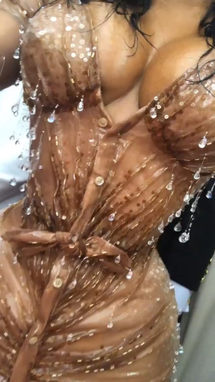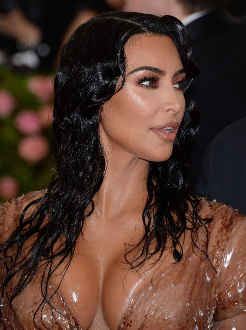 Kim Kardashian mostra i suoi seni bagnati al Gala di Beneficenza del Costume Institute del Metropolitan Museum of Art a New York, 06/05/2019.