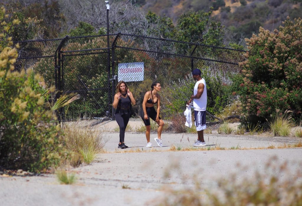 La star della TV Kim Kardashian sfoggia la sua figura artificiale con top sportivo e pantaloncini durante un’escursione estenuante a Fryman Canyon, 07/07/2017.