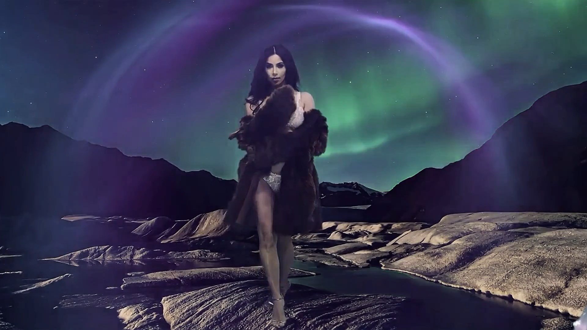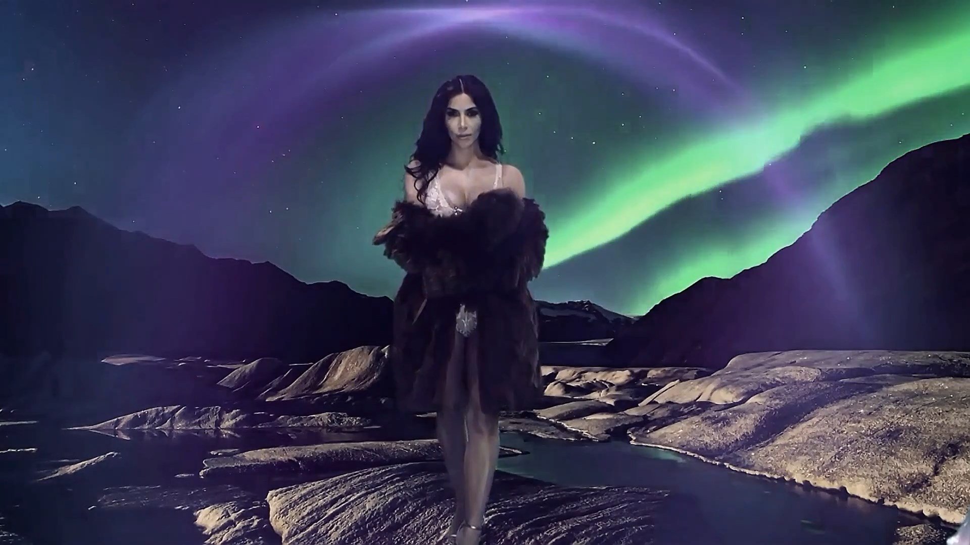 La star del Fappening Kim Kardashian indossa un cappotto di pelliccia durante l’aurora boreale – Love Advent 2016 (Giorno 12).