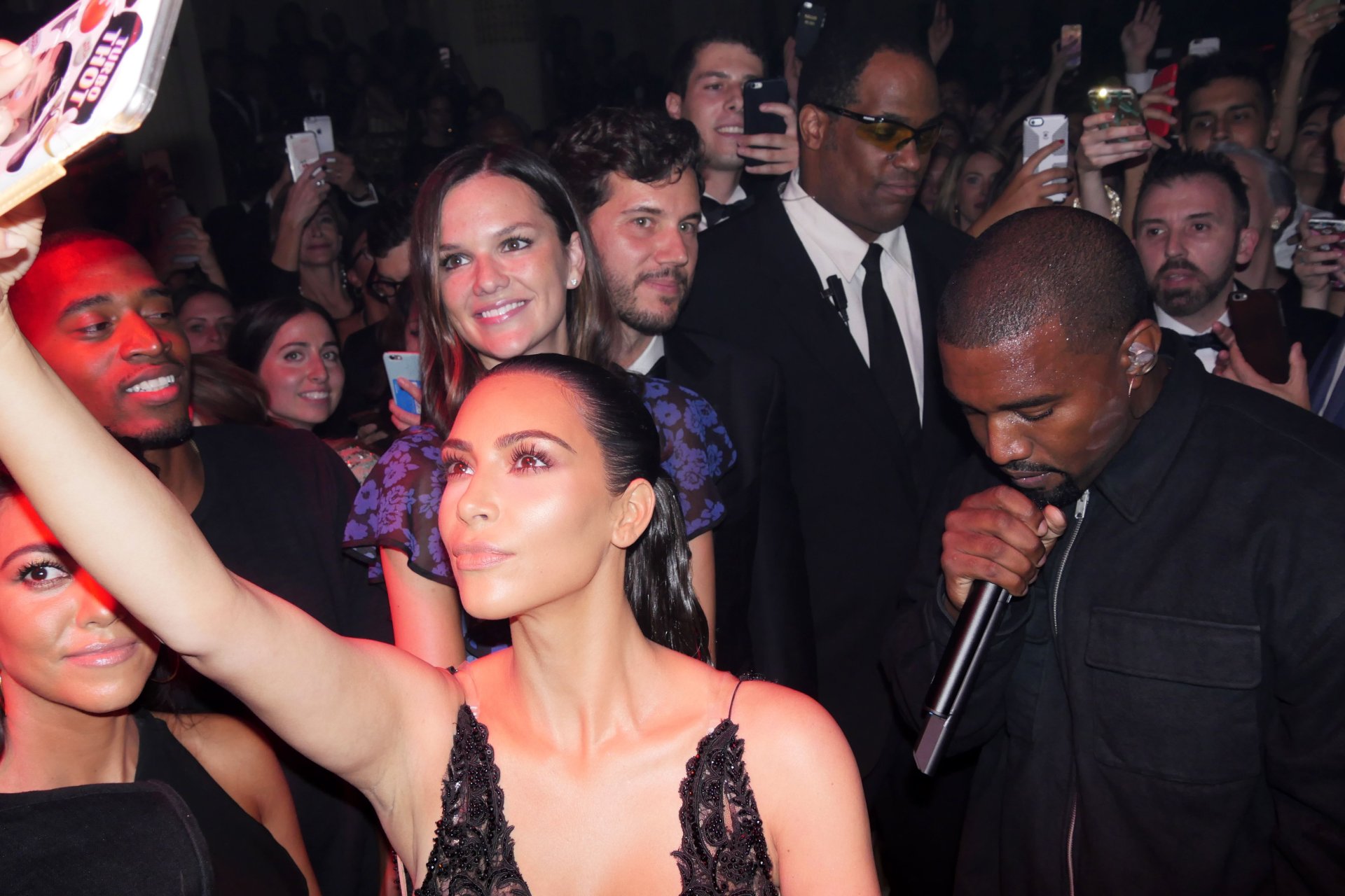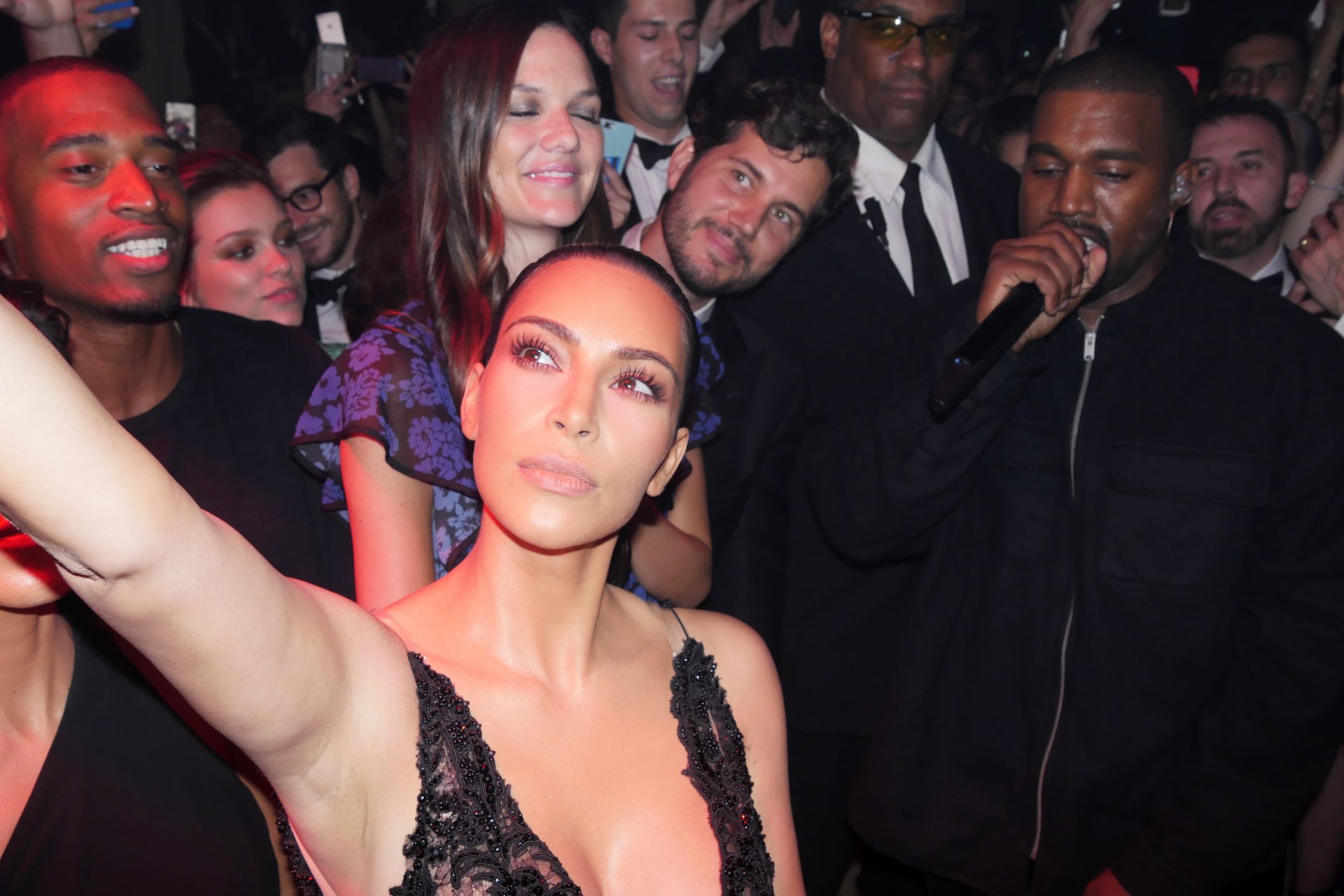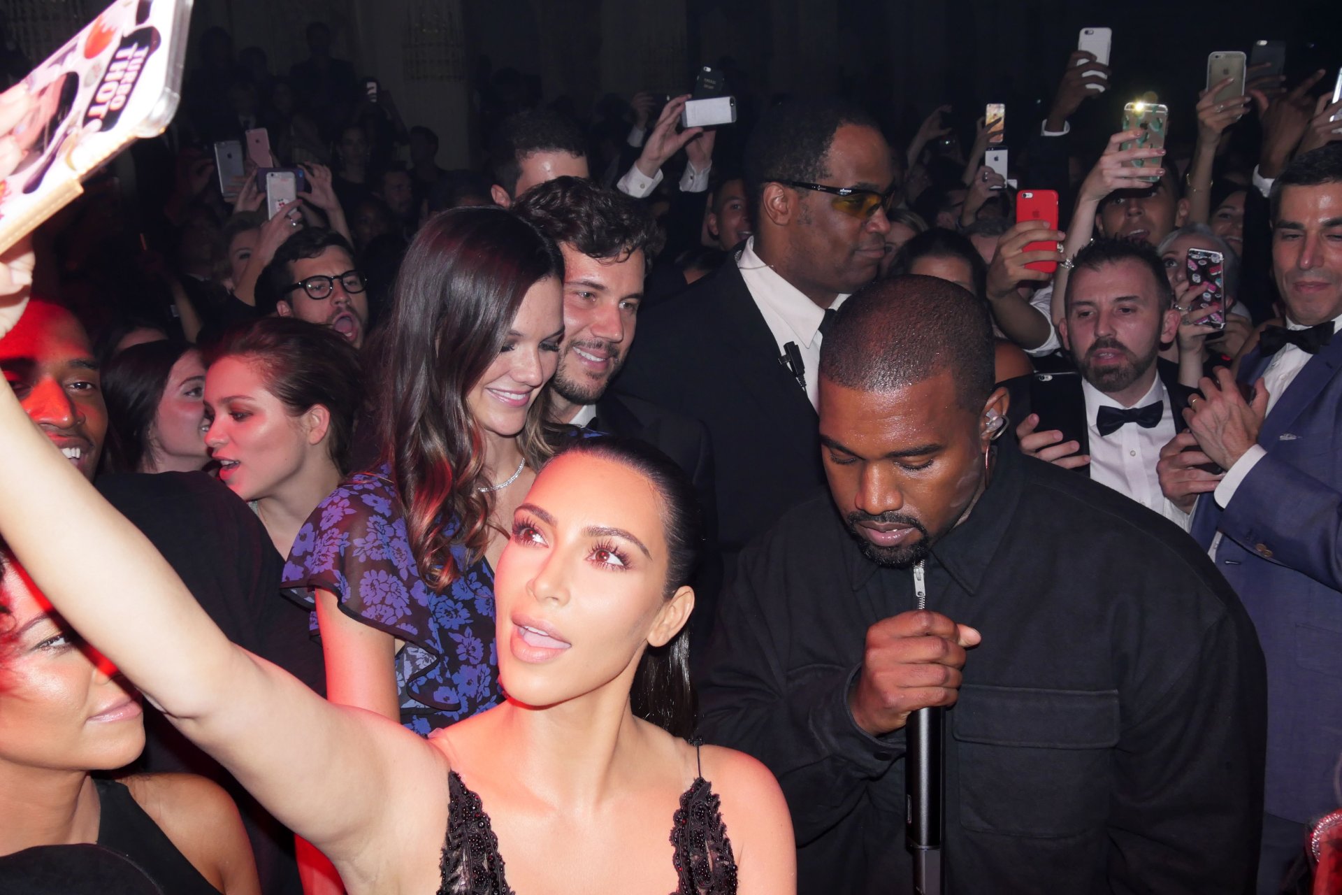 Kim Kardashian indossa un vestito nero in pizzo trasparente alla festa di Harper’s Bazar a New York, 09/09/2016. Kim Kardashian è una personalità televisiva e dei social media americana, socialite e modella. Età: 35 (21 ottobre 1980).