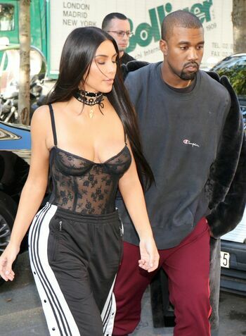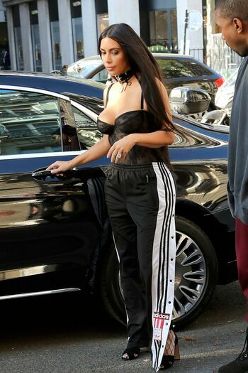 Kim Kardashian indossa un corsetto e pantaloni Adidas a Parigi, 29/09/2016. Kim Kardashian è una personalità televisiva e dei social media americana, socialite e modella. Età: 35 (21 ottobre 1980).