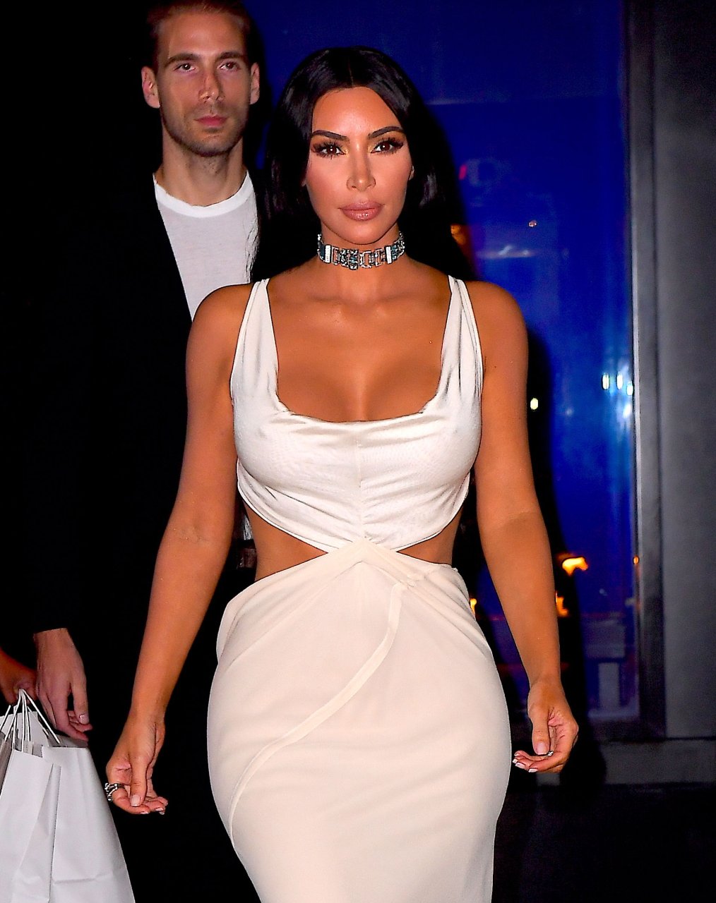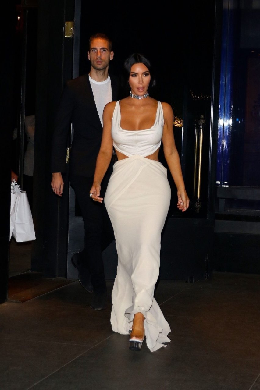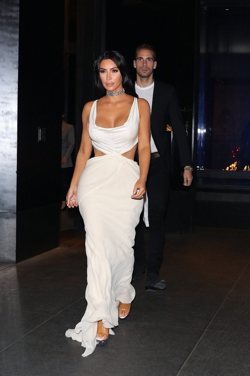 La star della TV reality Kim Kardashian West appare incandescente mentre si dirige agli AMAs – New York, 09/10/2018. Kim è splendida nel vestito bianco con tagli mentre si avvia verso la sua auto.