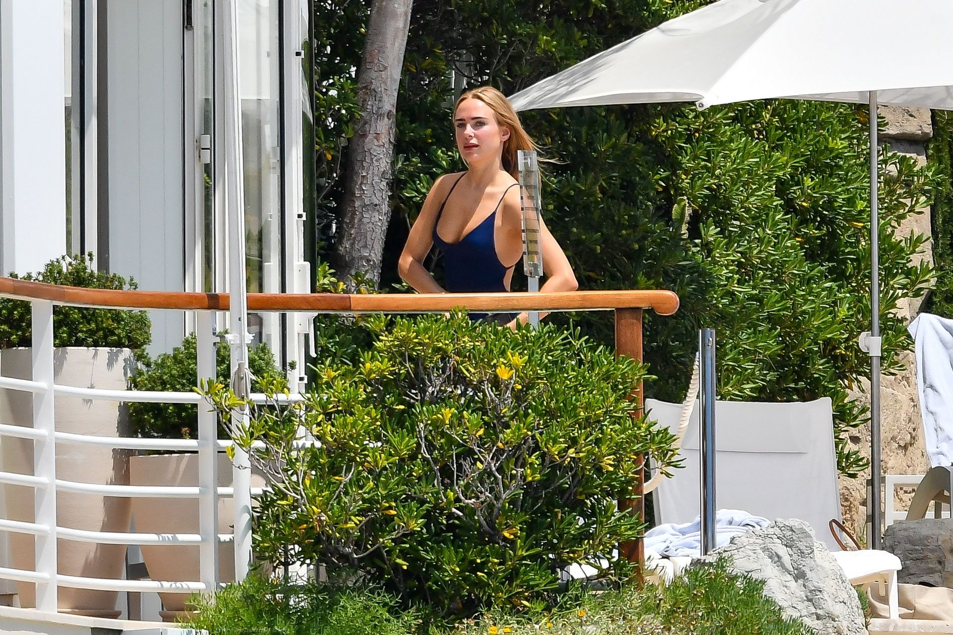 Kimberley Garner è stata vista in un costume da bagno blu all’Hotel du Cap-Eden-Roc ad Antibes sulla Costa Azzurra, 07/10/2021.