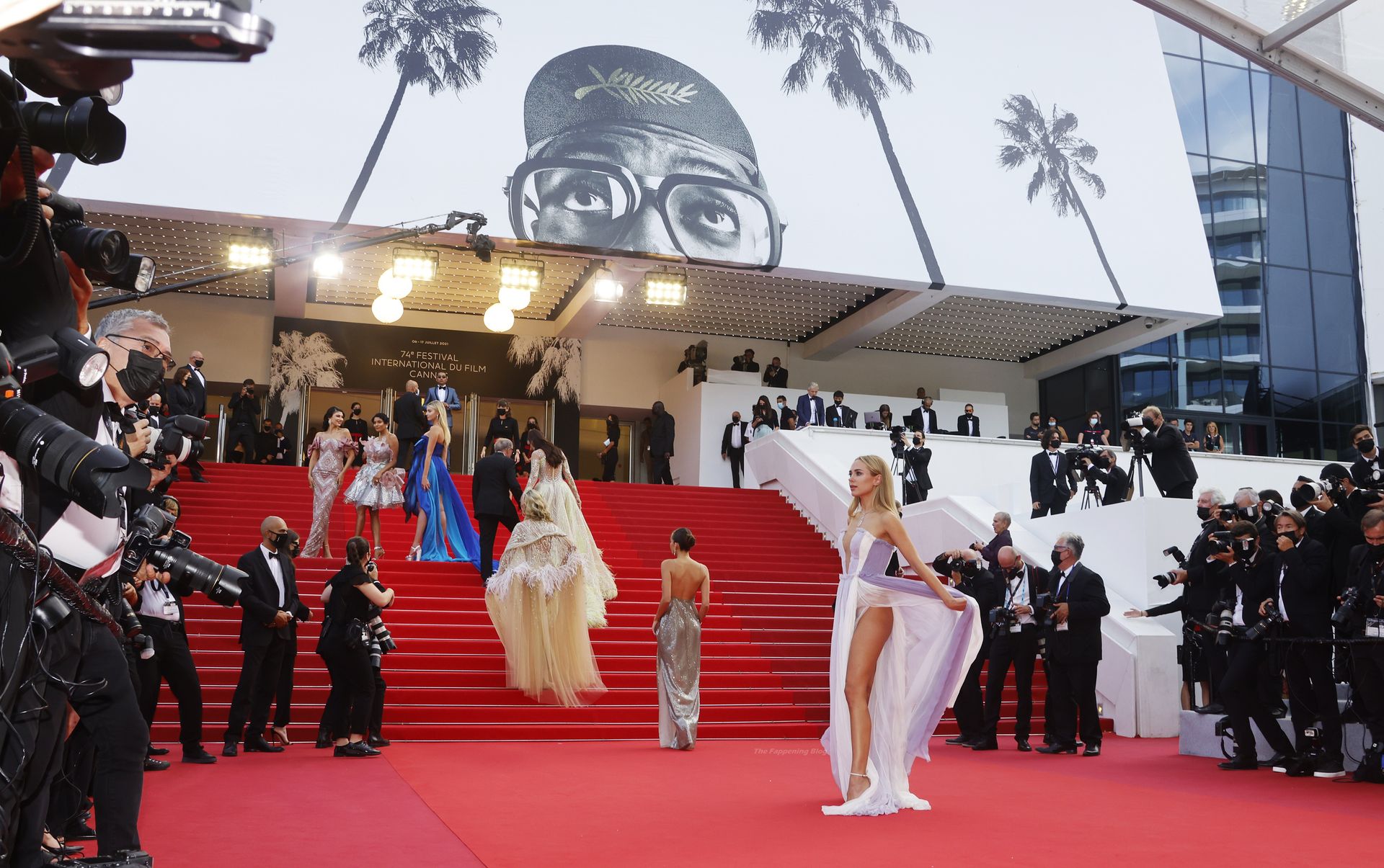 Kimberley Garner mostra le sue gambe sexy, il décolleté e un accenno di lato B durante la proiezione di ‘France’ al 74° Festival del Cinema di Cannes il 15 luglio 2021.