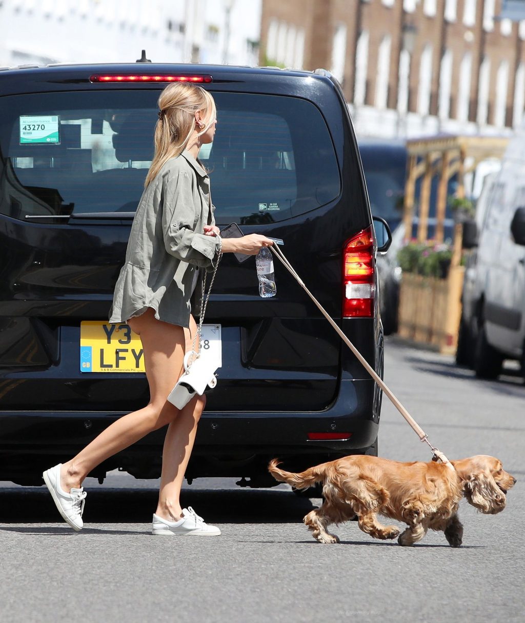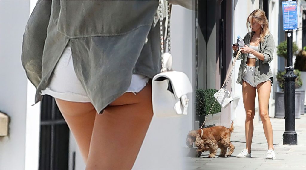 La modella dalle gambe lunghe e stilista di costumi da bagno Kimberley Garner è stata vista mentre passeggiava con il suo cane a West London, 06/02/2021.