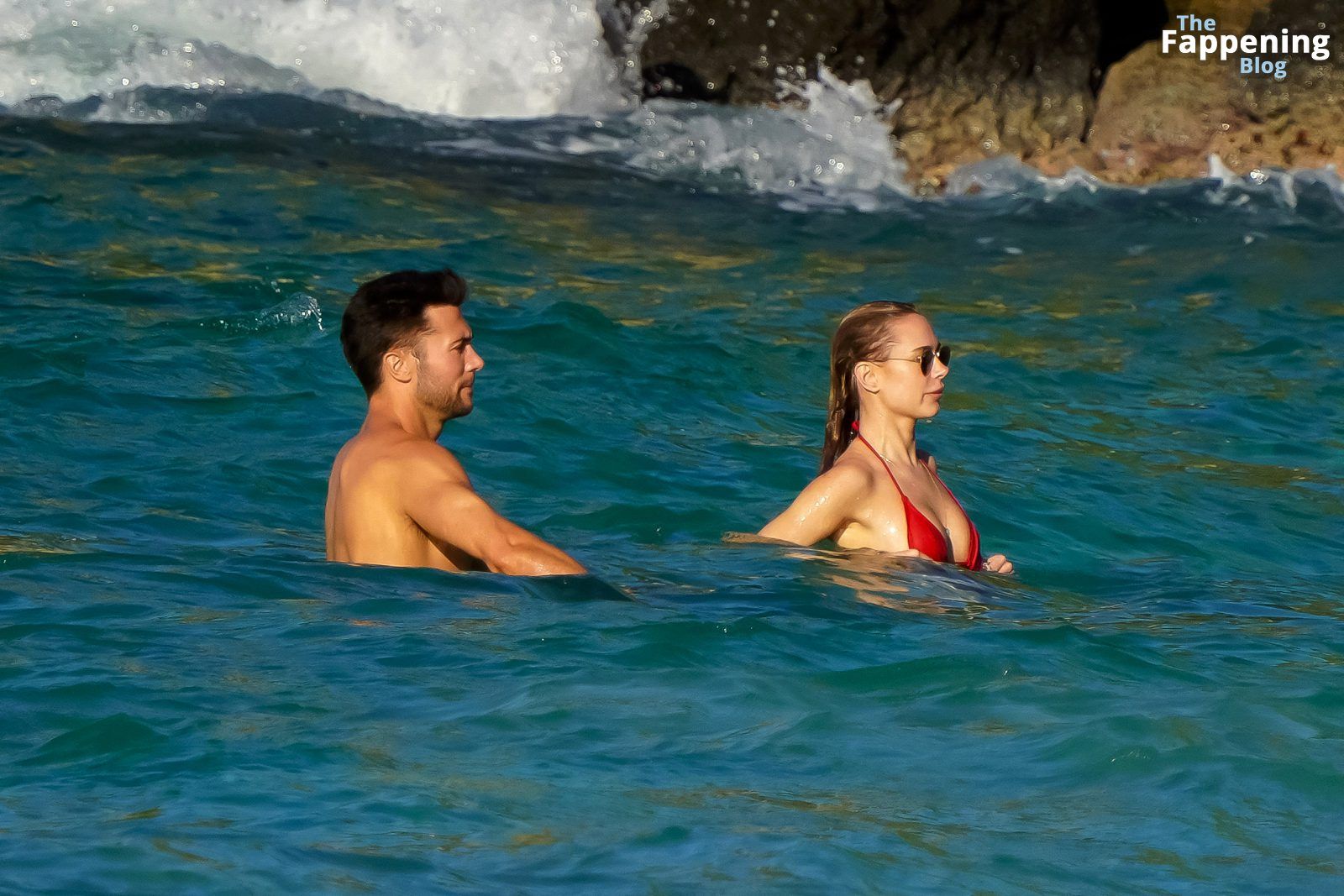 Preparati al caldo mentre Kimberley Garner infiamma la spiaggia di St Barts con un bikini rosso.