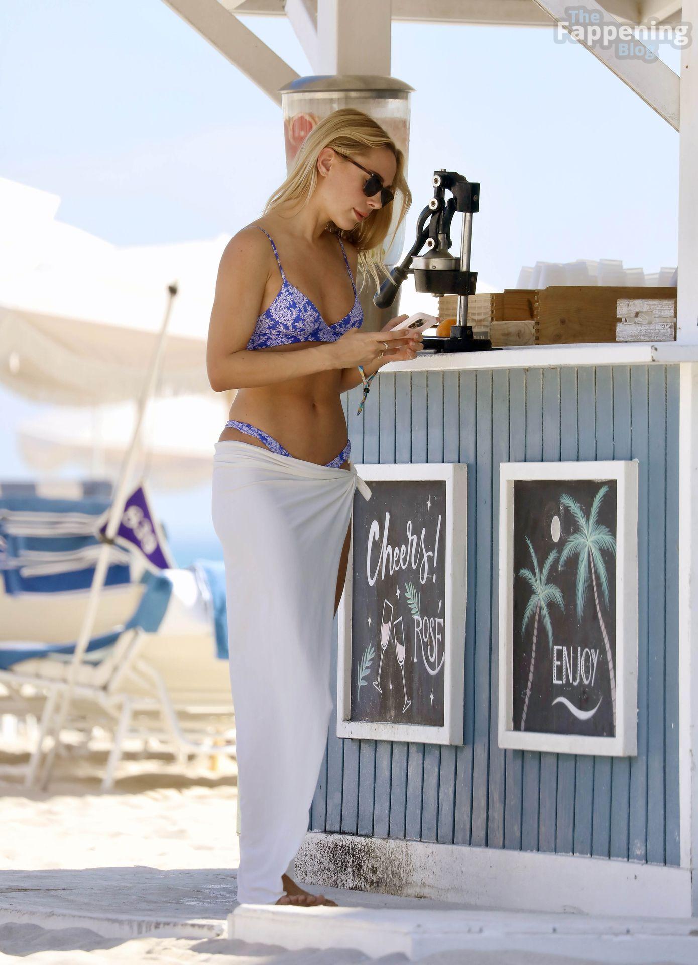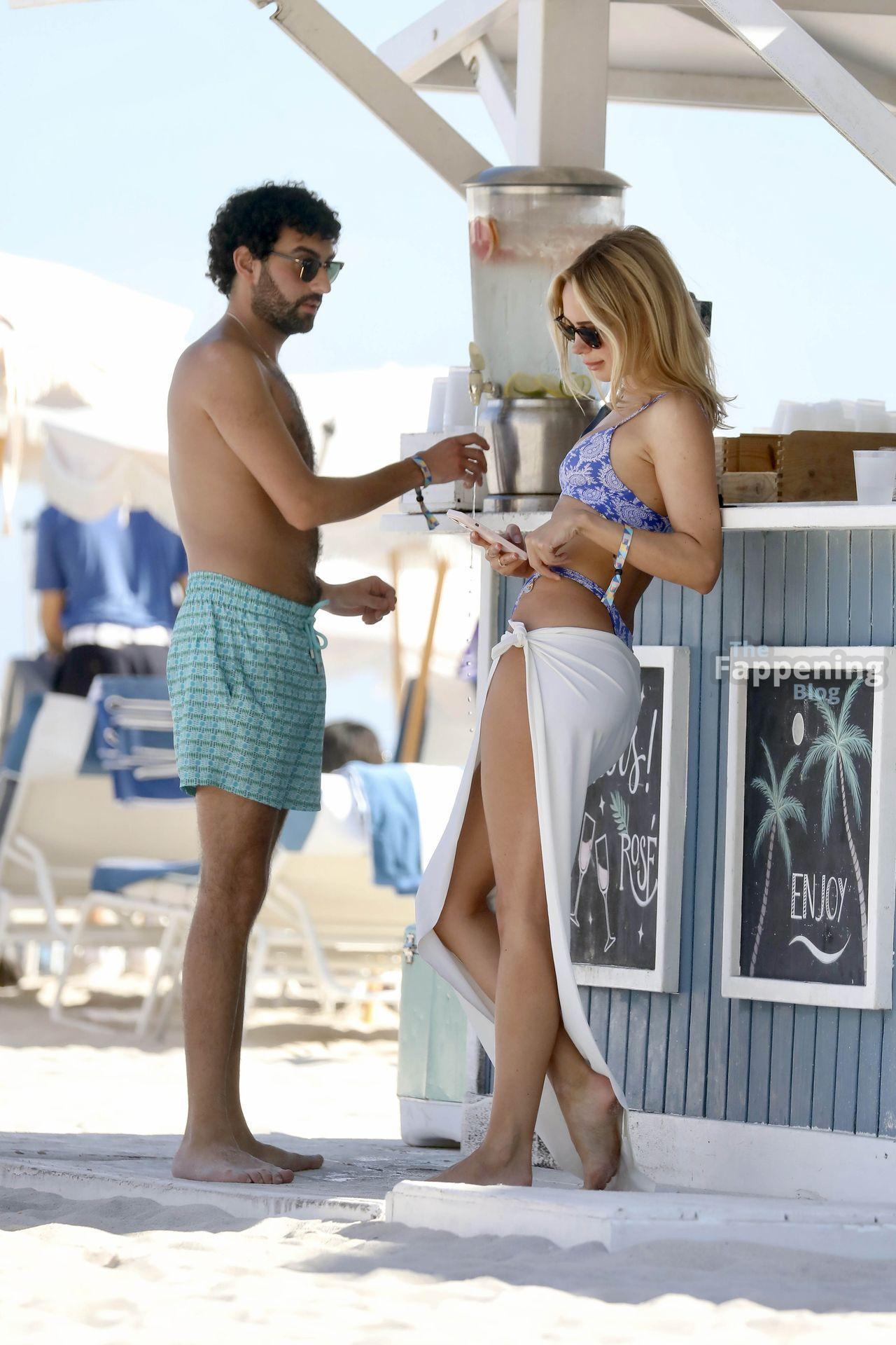 Kimberley Garner mostra la sua figura tonica mentre si gode la spiaggia con la famiglia a Miami, Florida. La star di Made in Chelsea indossava un minuscolo bikini blu a due pezzi mentre si godeva una giornata di sole.