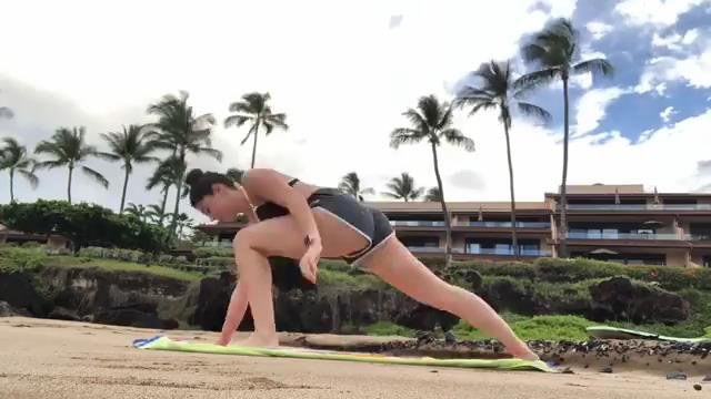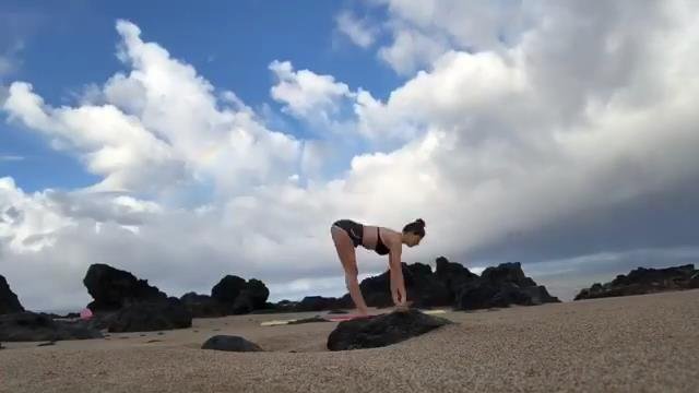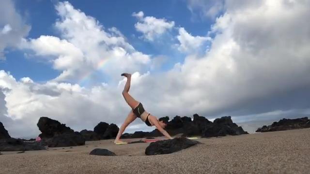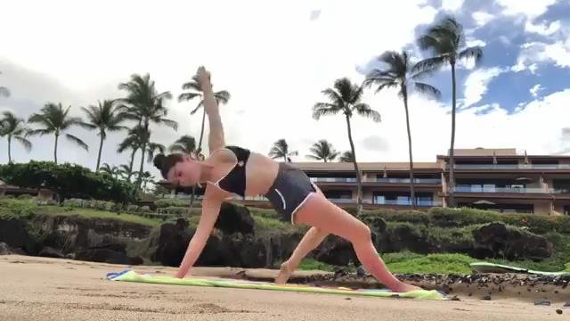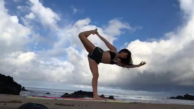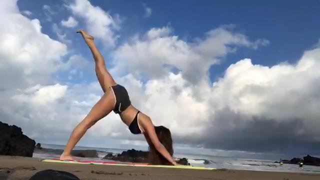 Un piccolo pezzo della pratica di yoga di Kira Kosarin sulla spiaggia questa mattina. Kira Kosarin è un’attrice televisiva (The Thundermans) di Boca Raton, Florida. Età – 20.