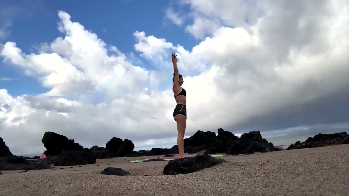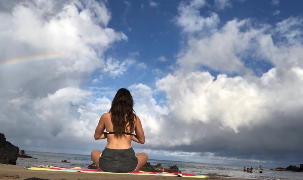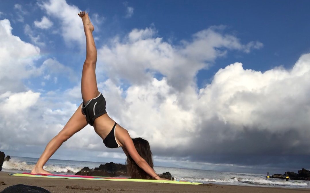 Un piccolo pezzo della pratica di yoga di Kira Kosarin sulla spiaggia questa mattina. Kira Kosarin è un’attrice televisiva (The Thundermans) di Boca Raton, Florida. Età – 20.