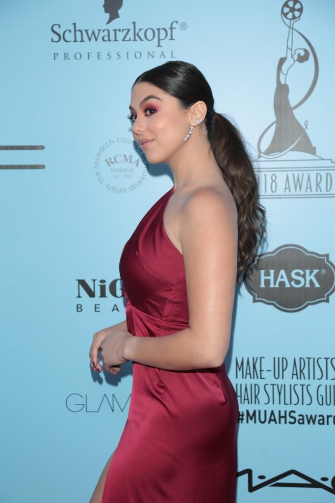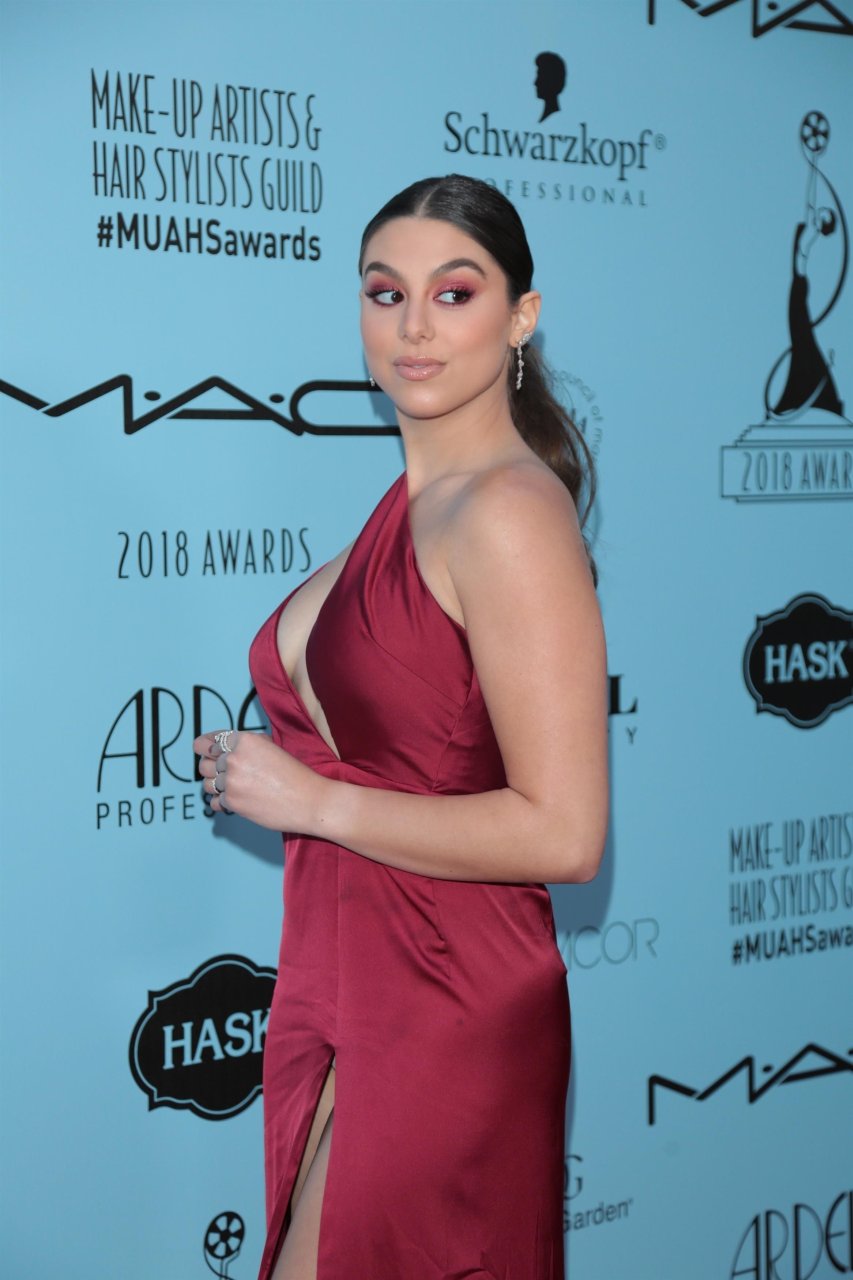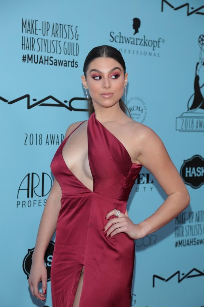 Kira Kosarin indossa un vestito rosso senza reggiseno agli The Make-Up Artists and Hair Stylists Guild Awards a Los Angeles, 24/02/2018. Kira Kosarin è un’attrice e cantante. Età – 20 anni.