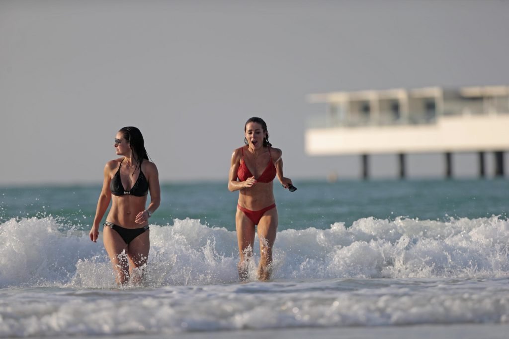 Due donne sexy, le presentatrici TV e radio Kirsty Gallacher e Natalie Pinkham sono state viste in bikini sulla spiaggia ad Abu Dhabi, 25/11/2018.