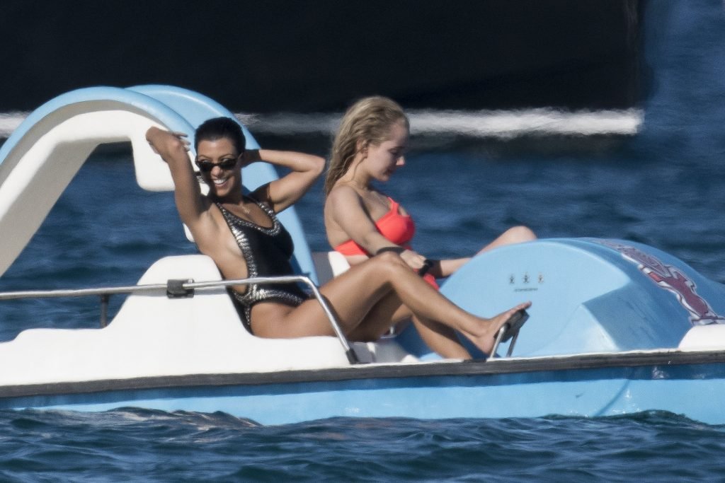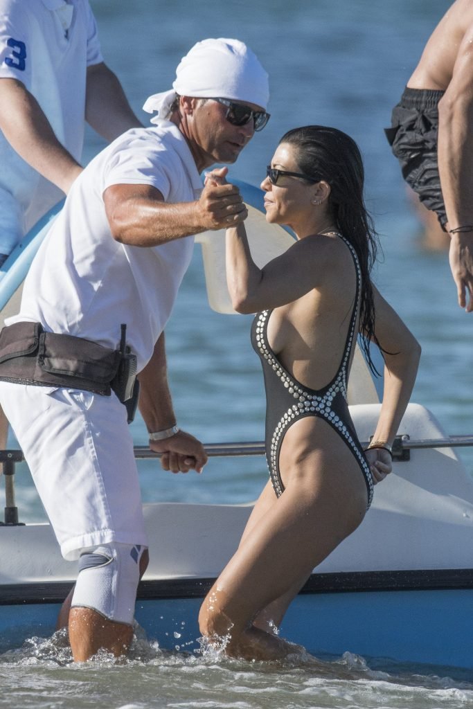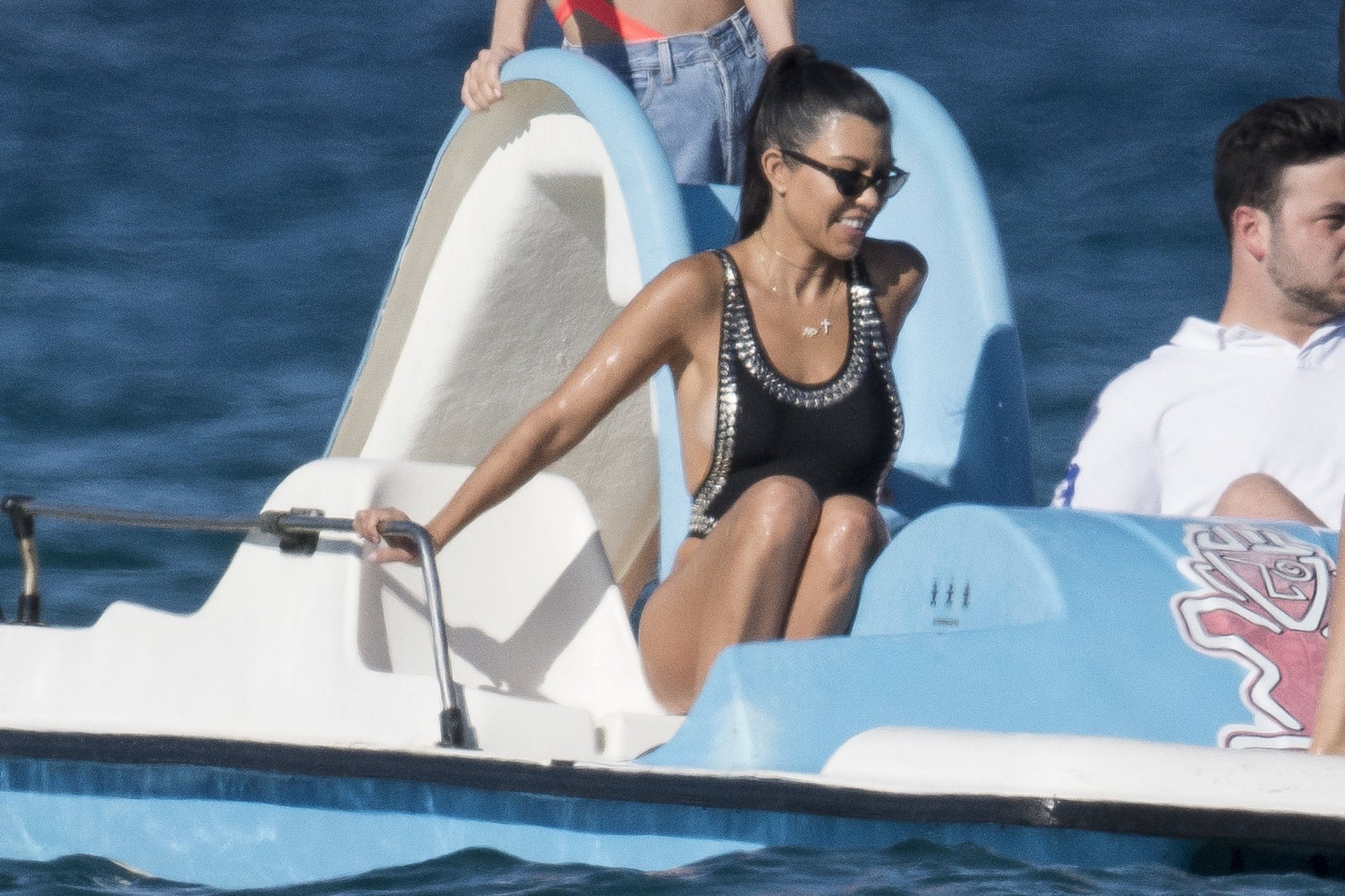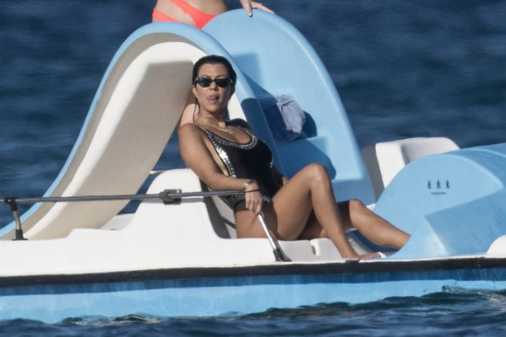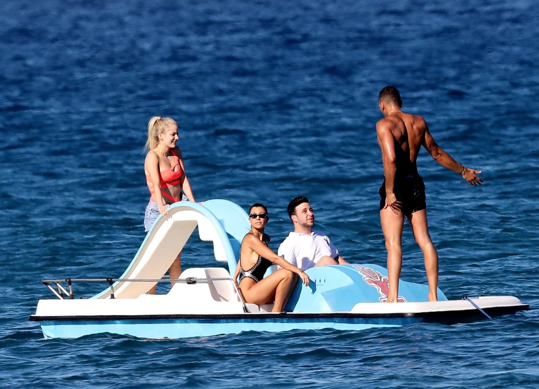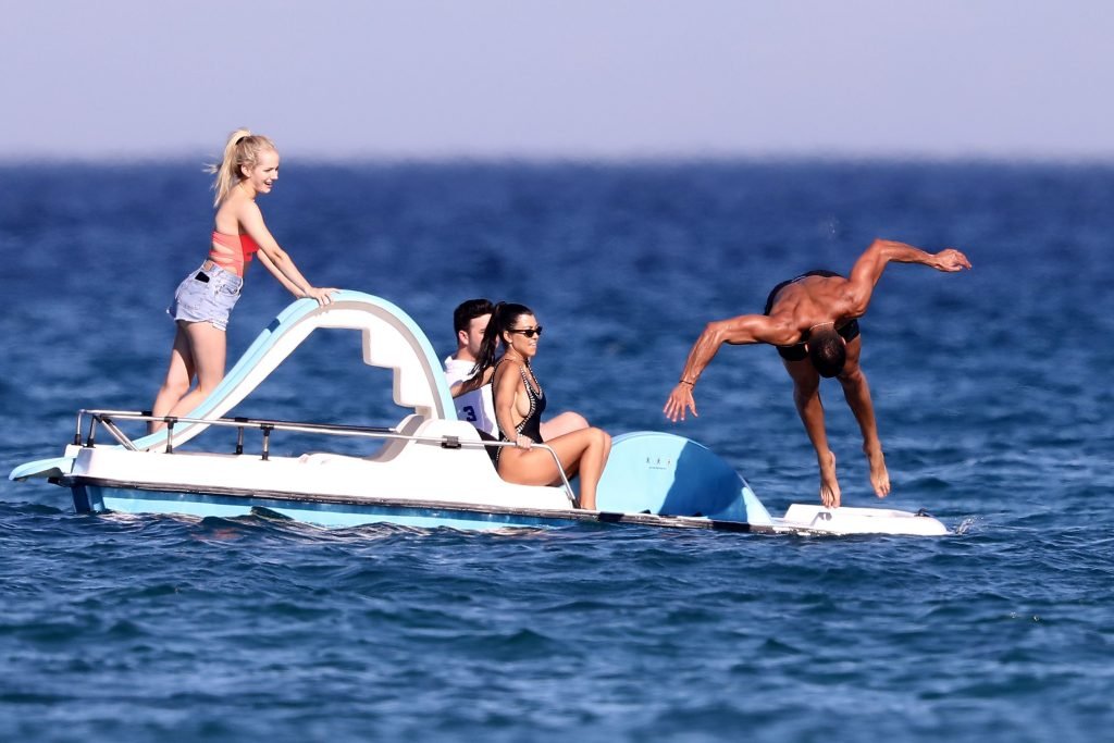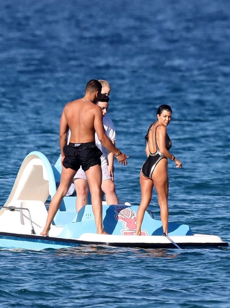 Kourtney Kardashian si gode una giornata su un catamarano con amici a St Tropez, Francia, 07/03/2017. Kourtney Mary Kardashian è una star americana della TV, modella, socialite, donna d’affari Età – 38.