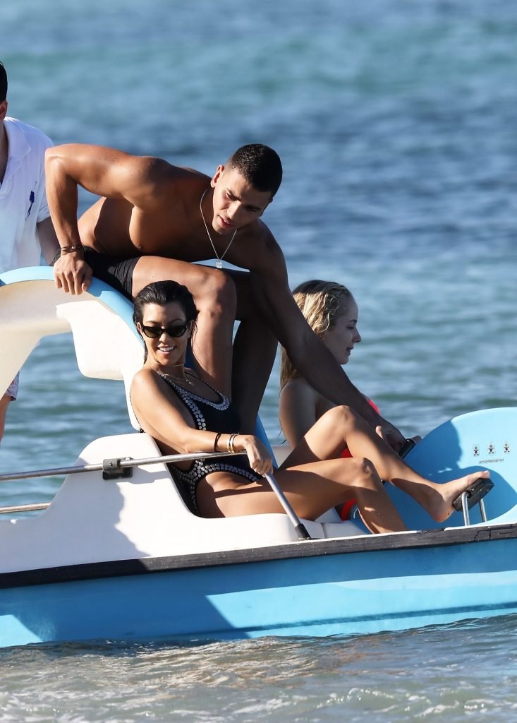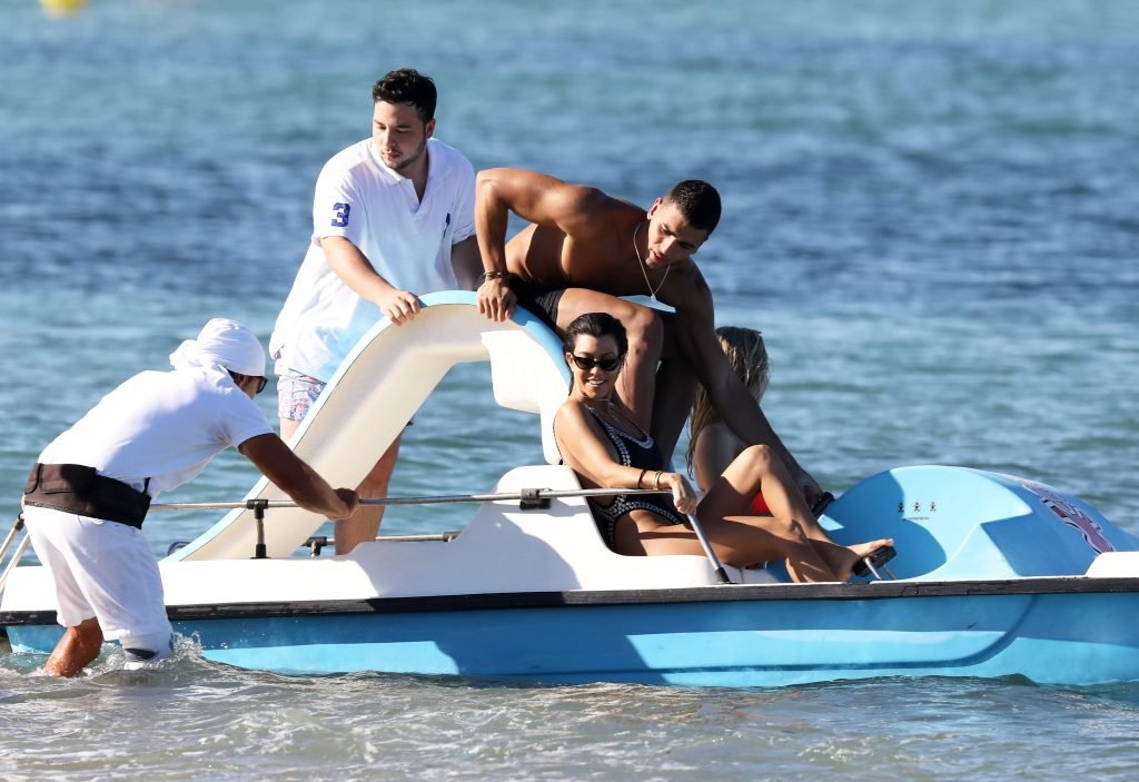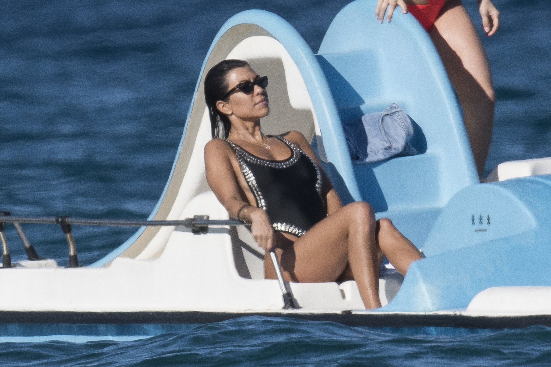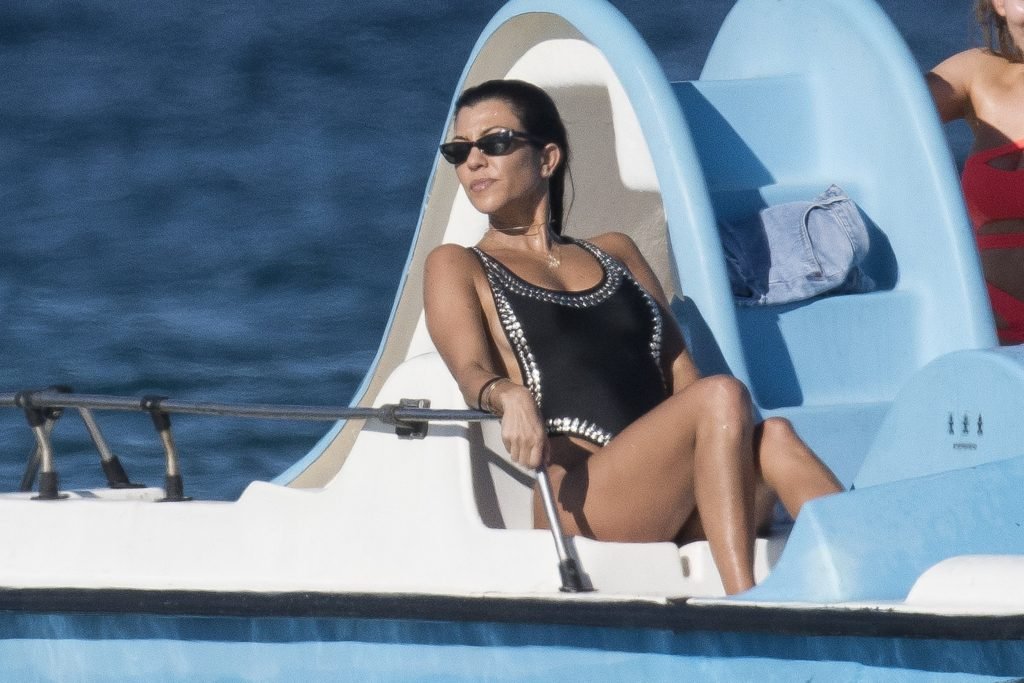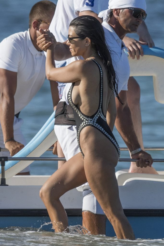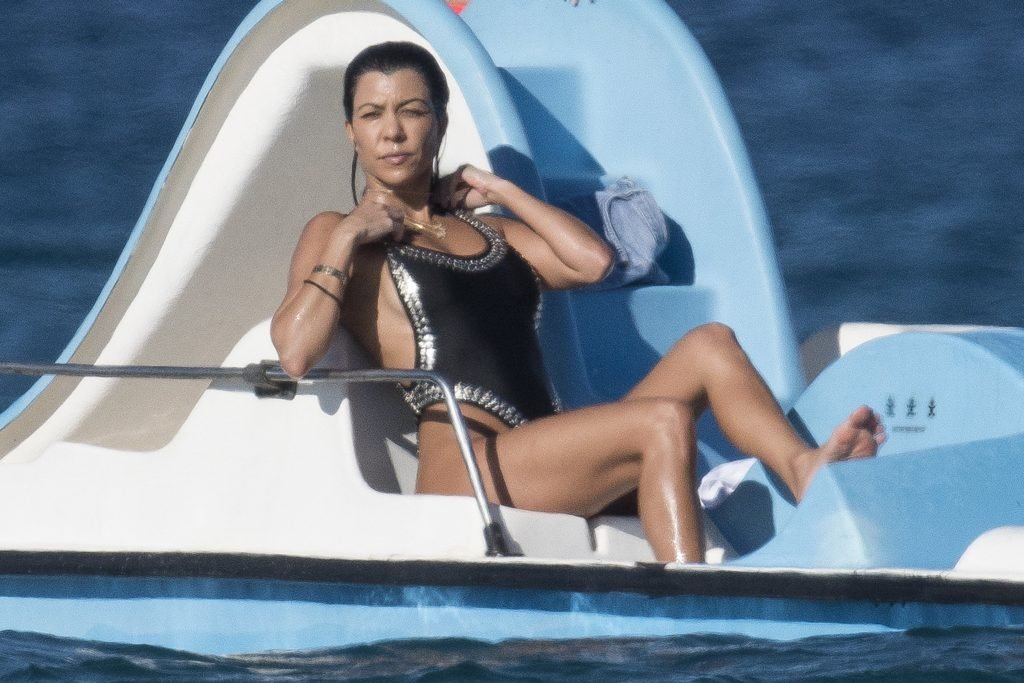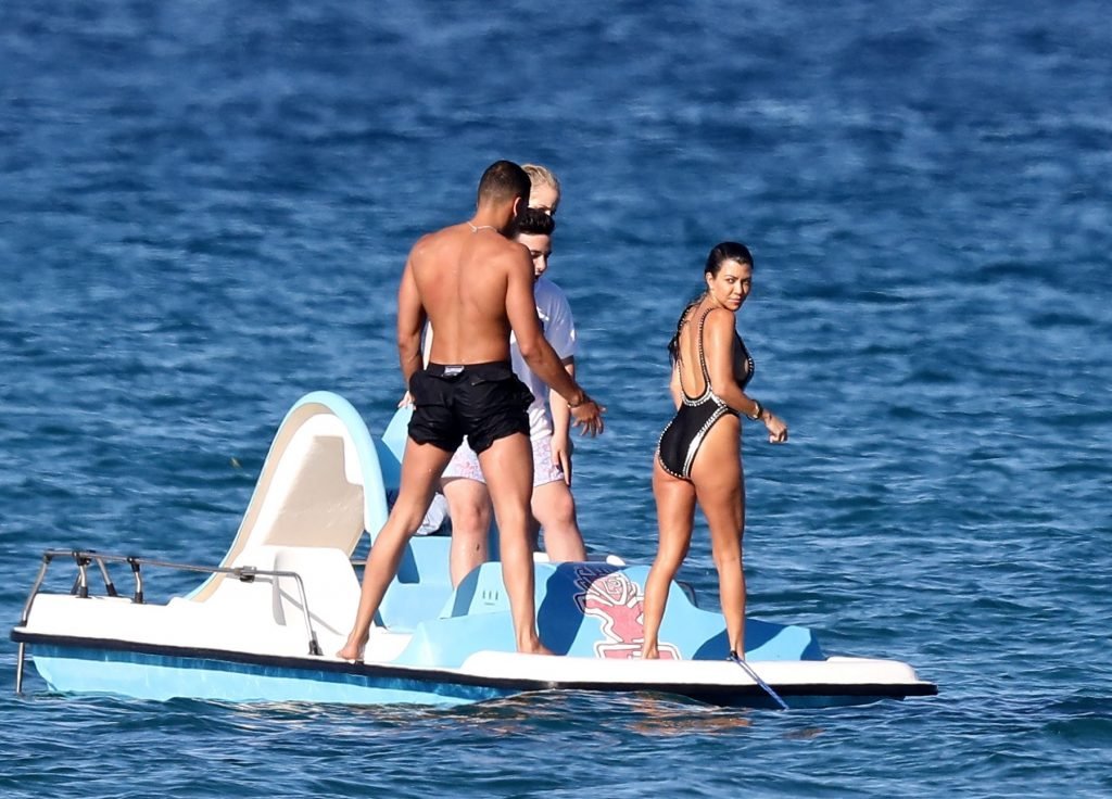 Kourtney Kardashian si gode una giornata su un catamarano con amici a St Tropez, Francia, 07/03/2017. Kourtney Mary Kardashian è una star americana della TV, modella, socialite, donna d’affari Età – 38.
