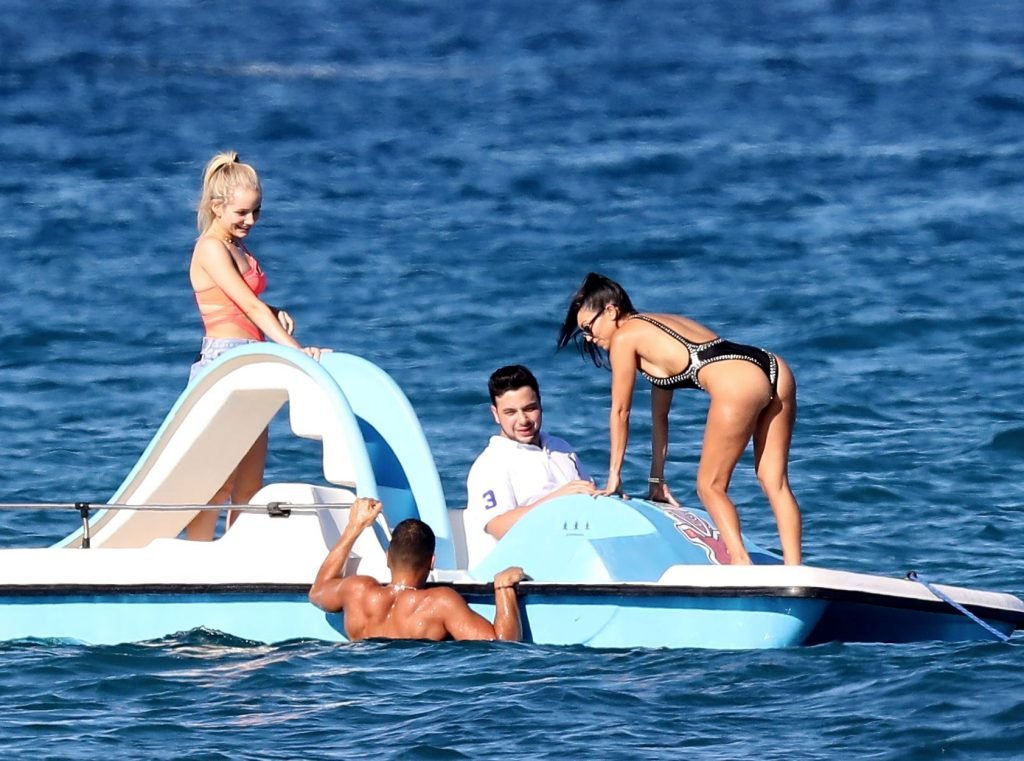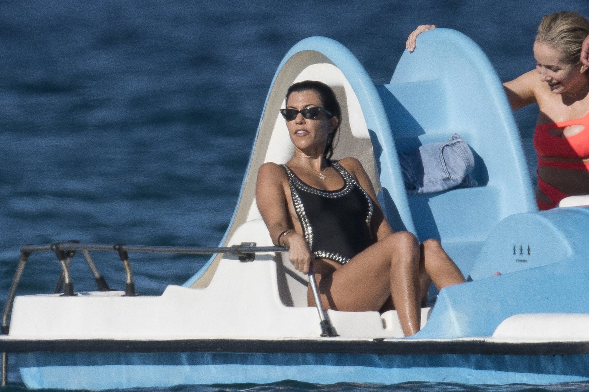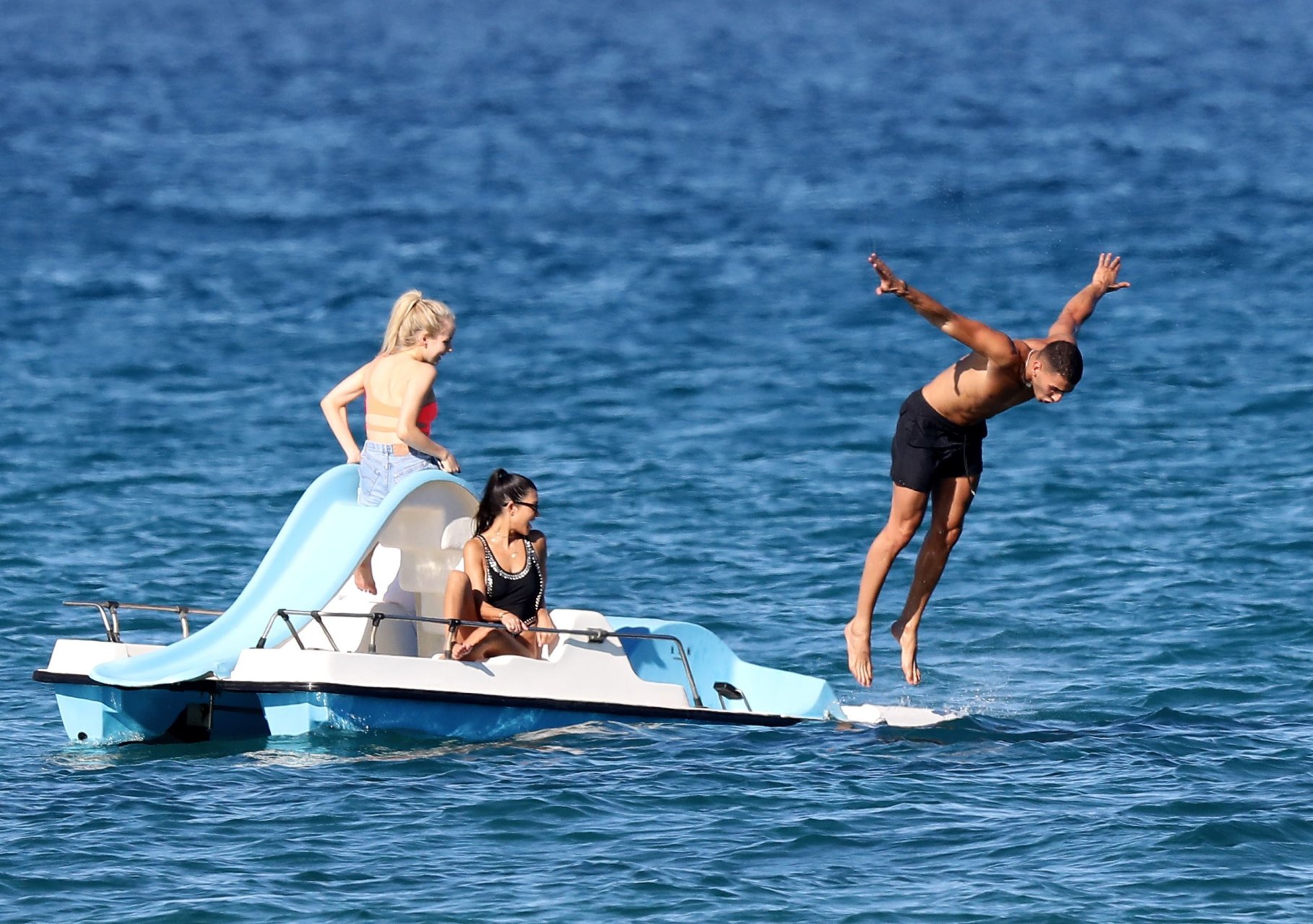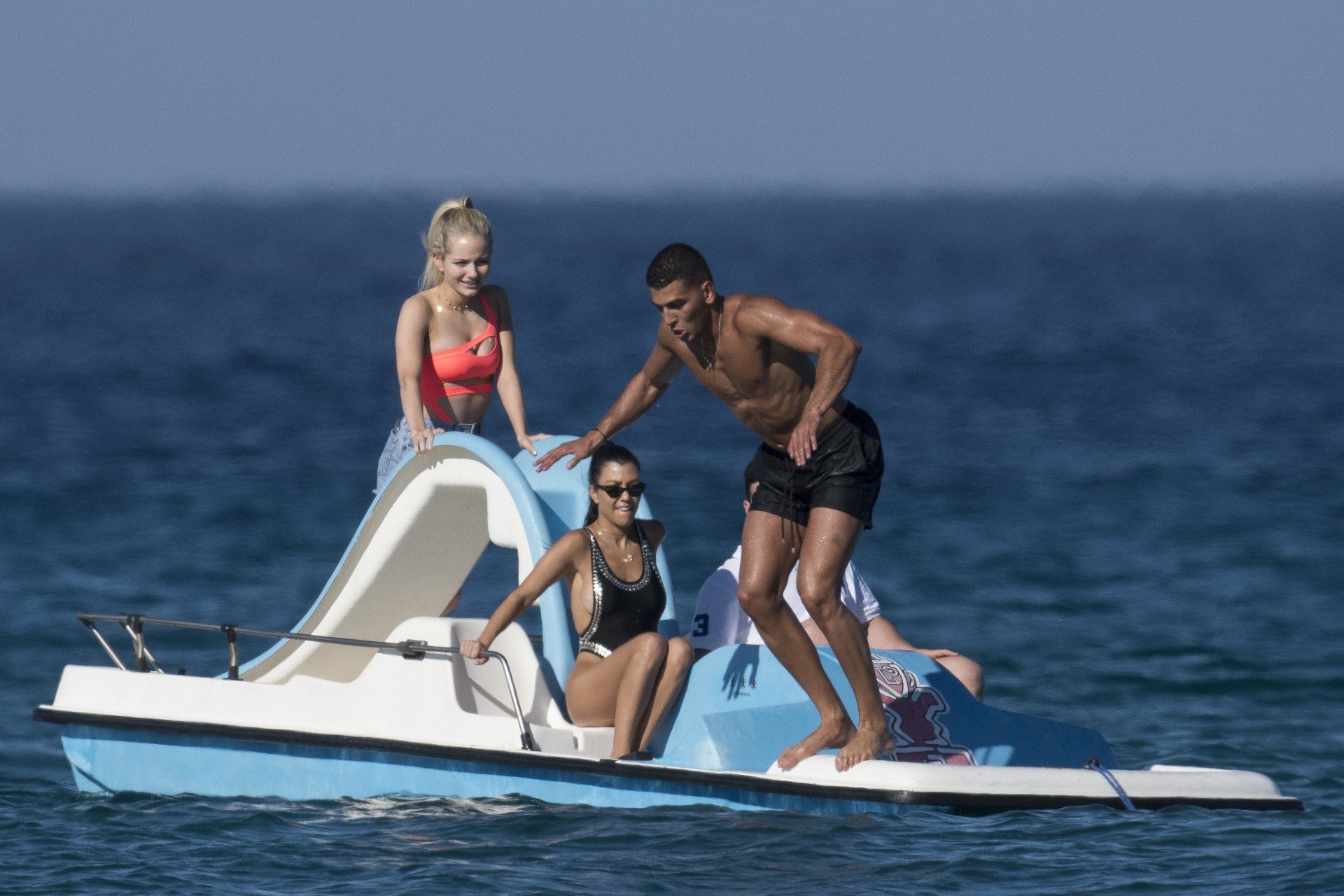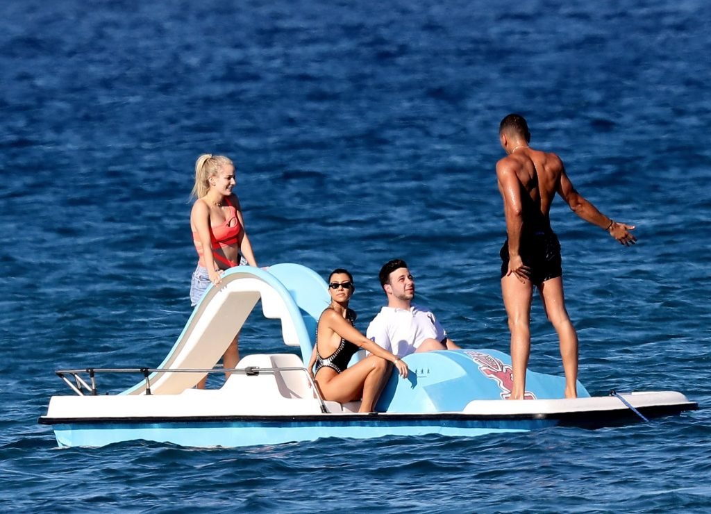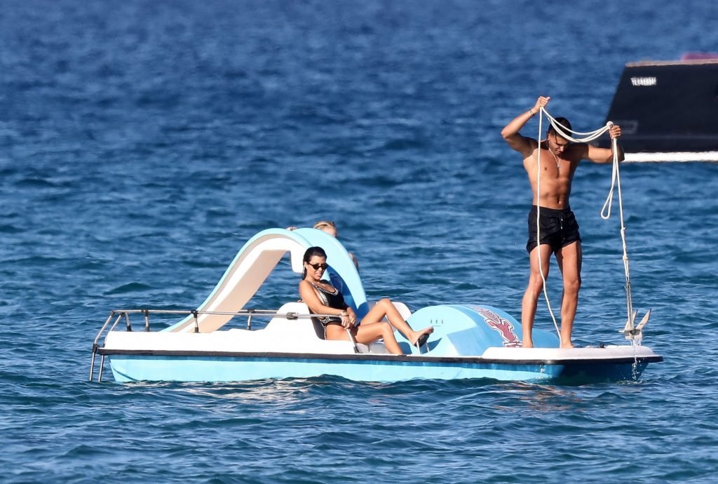 Kourtney Kardashian si gode una giornata su un catamarano con amici a St Tropez, Francia, 07/03/2017. Kourtney Mary Kardashian è una star americana della TV, modella, socialite, donna d’affari Età – 38.
