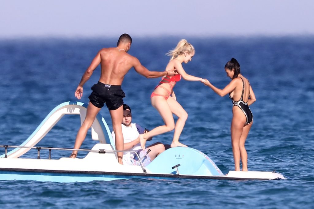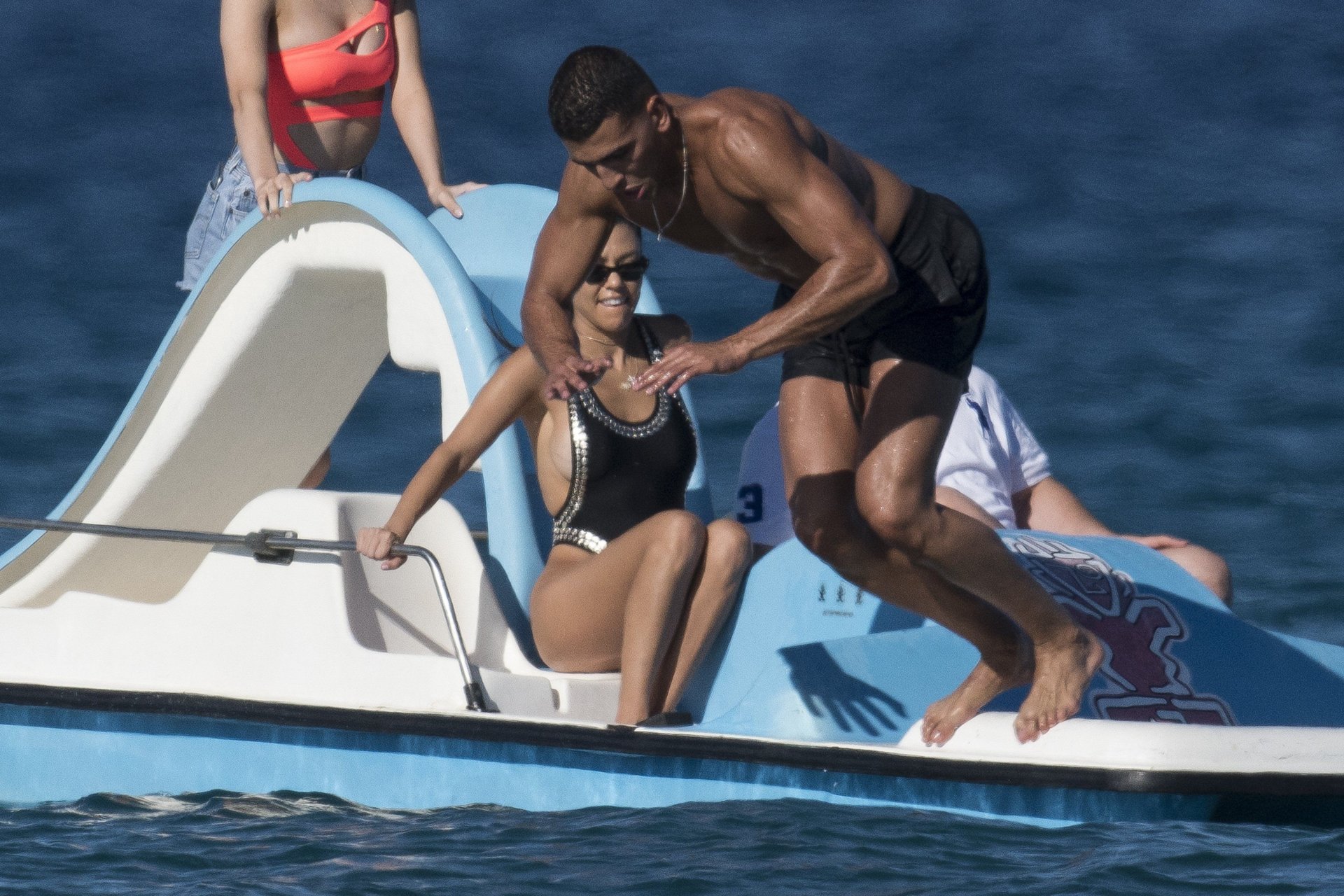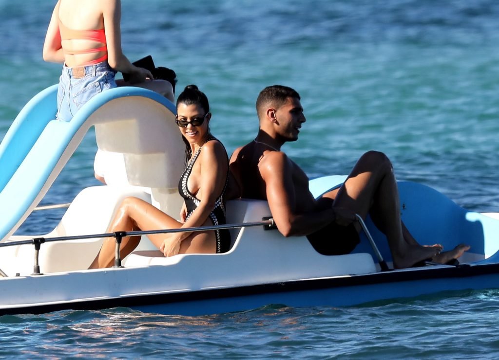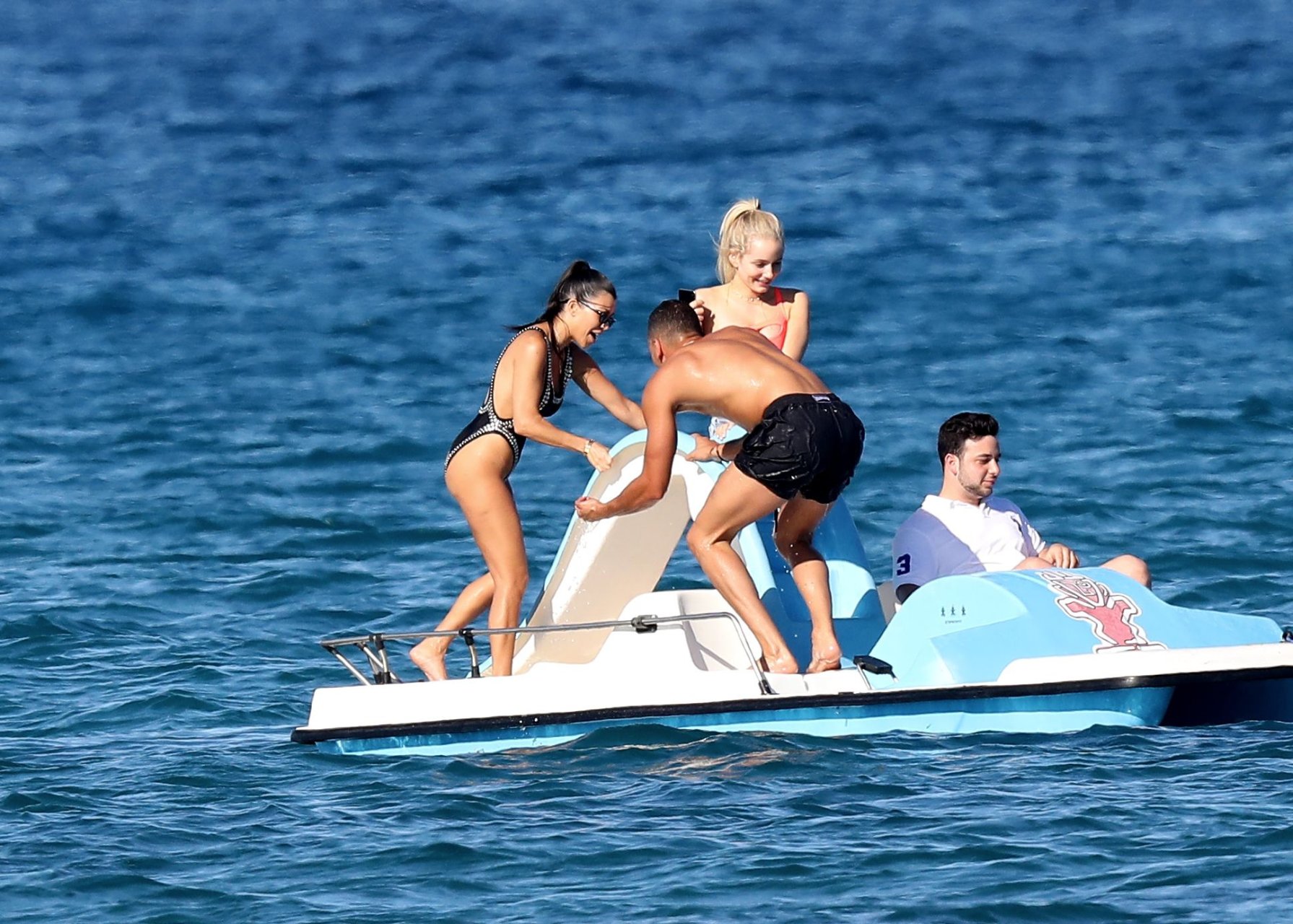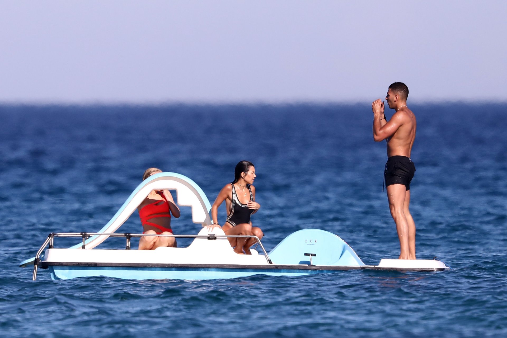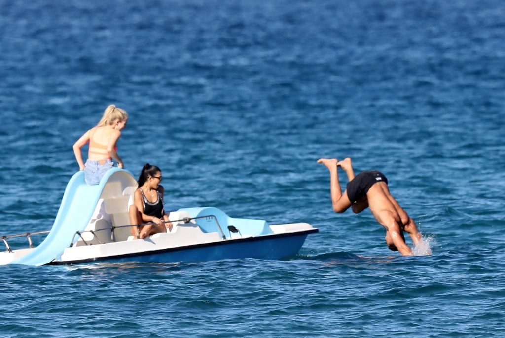 Kourtney Kardashian si gode una giornata su un catamarano con amici a St Tropez, Francia, 07/03/2017. Kourtney Mary Kardashian è una star americana della TV, modella, socialite, donna d’affari Età – 38.