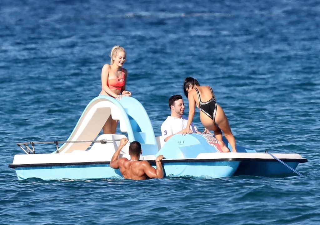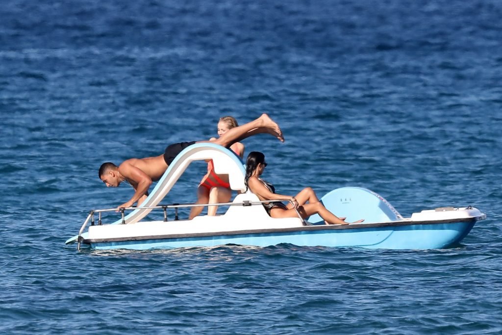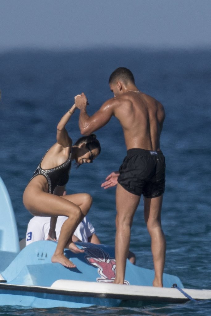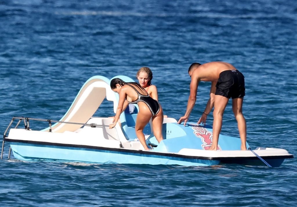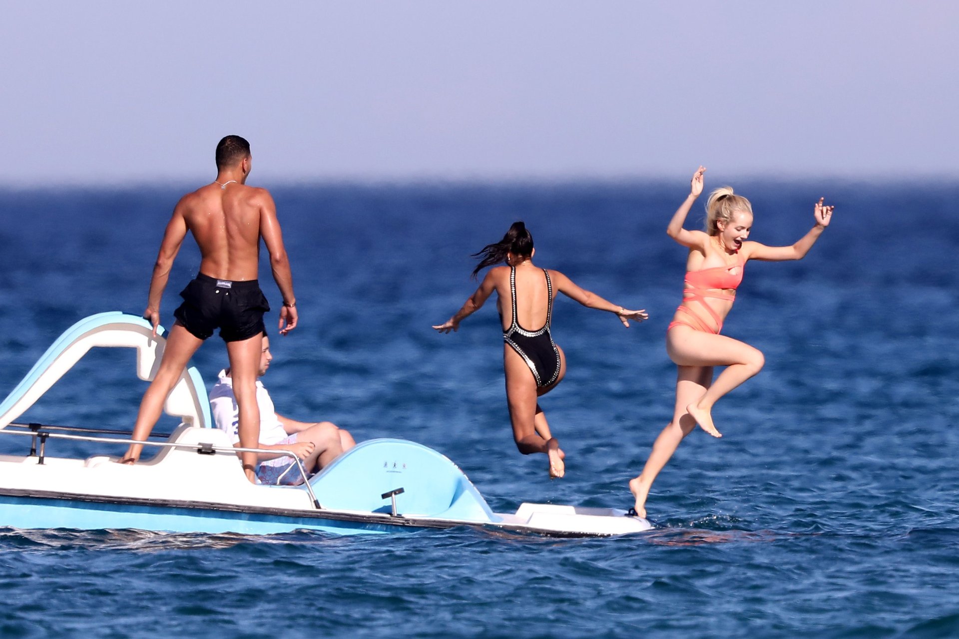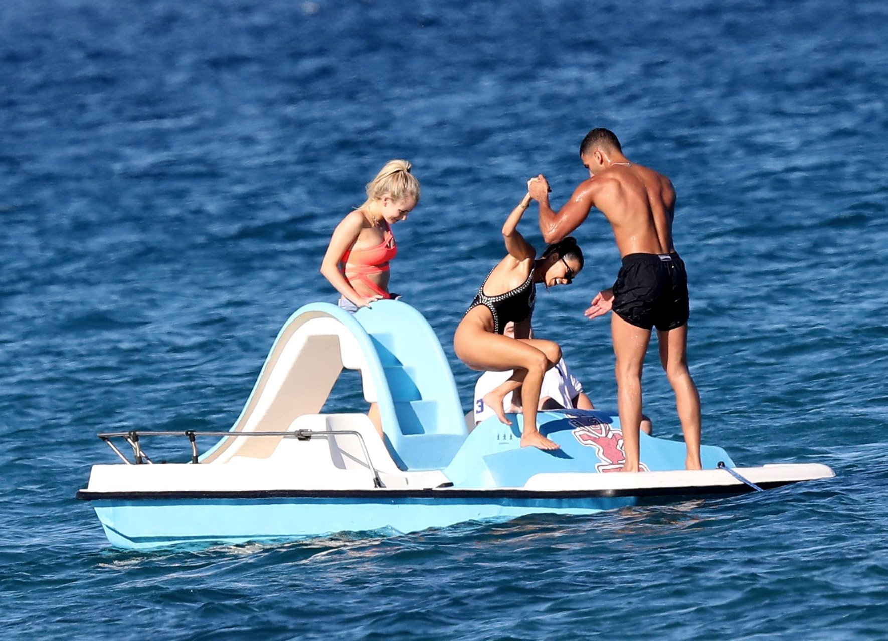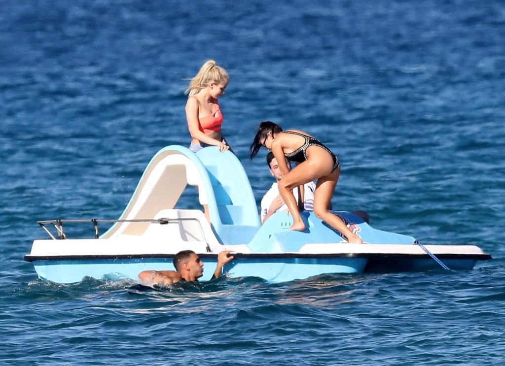 Kourtney Kardashian si gode una giornata su un catamarano con amici a St Tropez, Francia, 07/03/2017. Kourtney Mary Kardashian è una star americana della TV, modella, socialite, donna d’affari Età – 38.