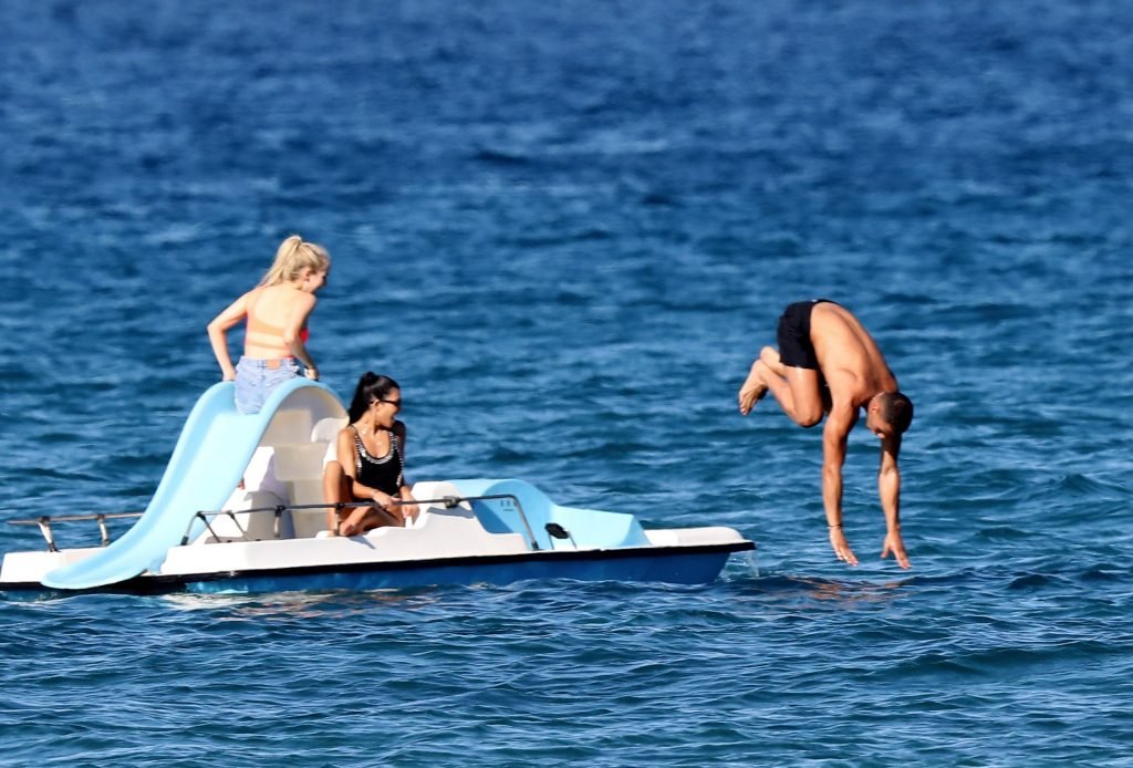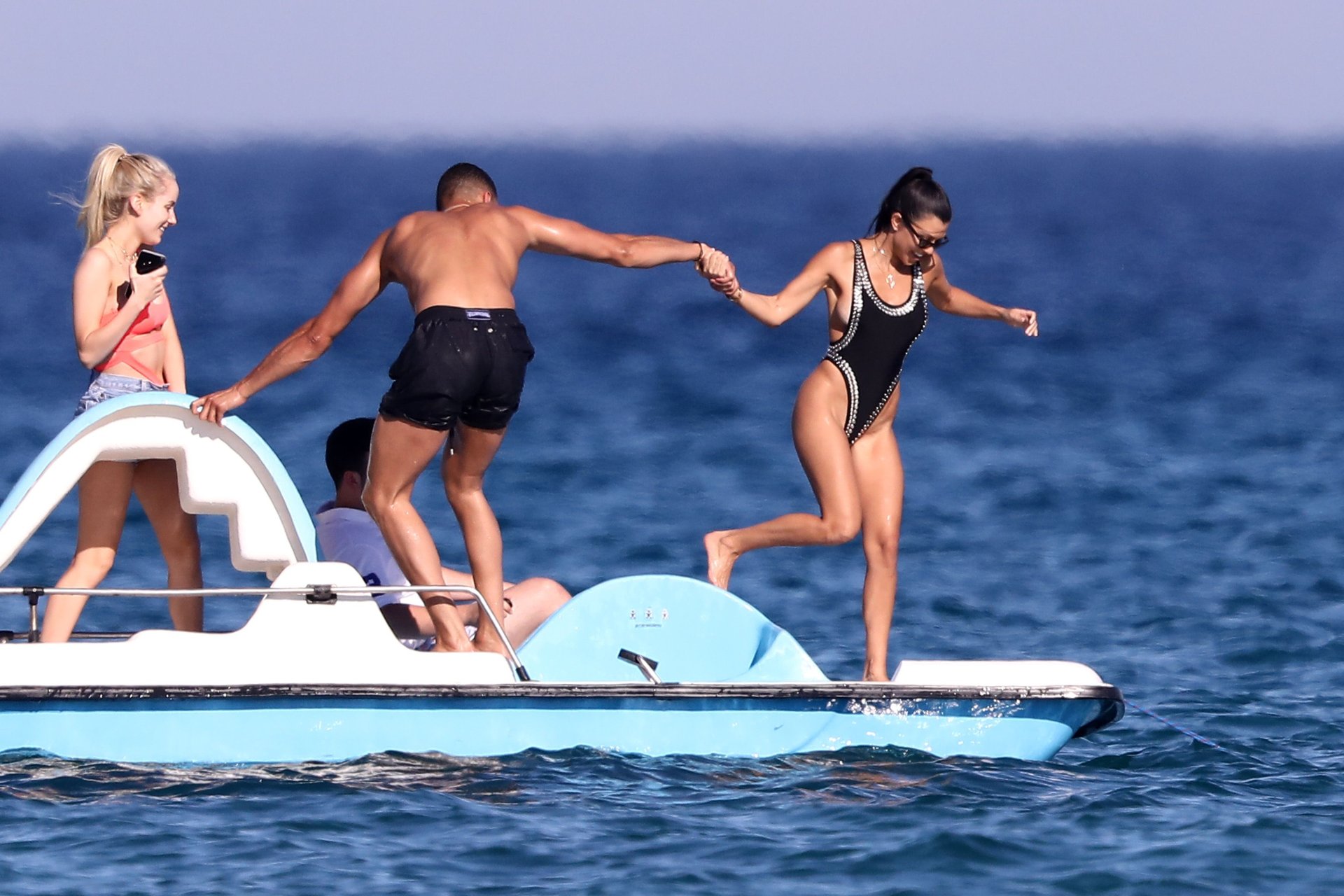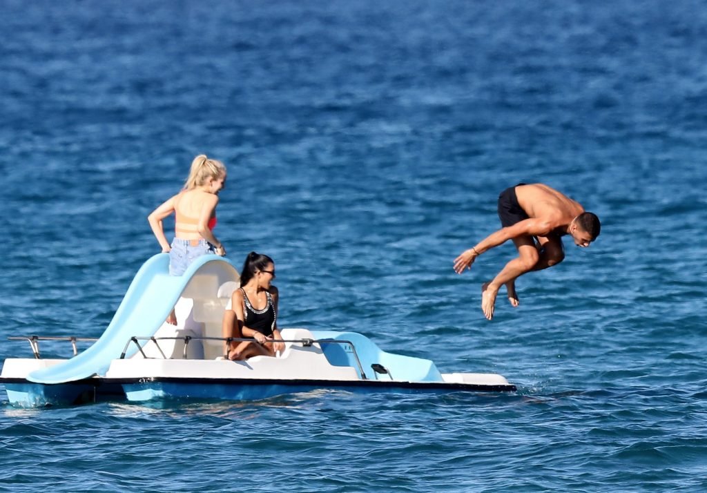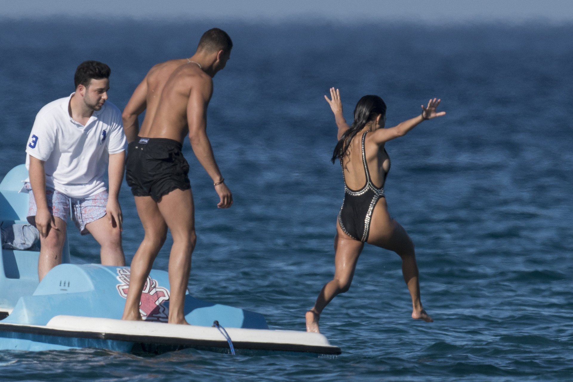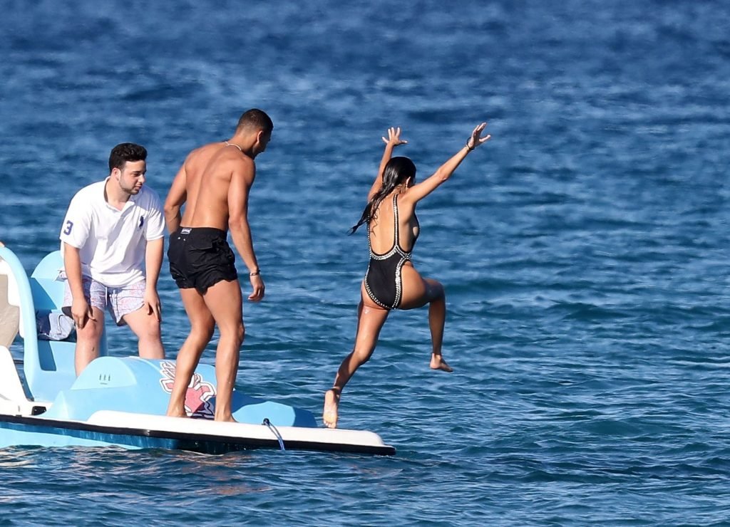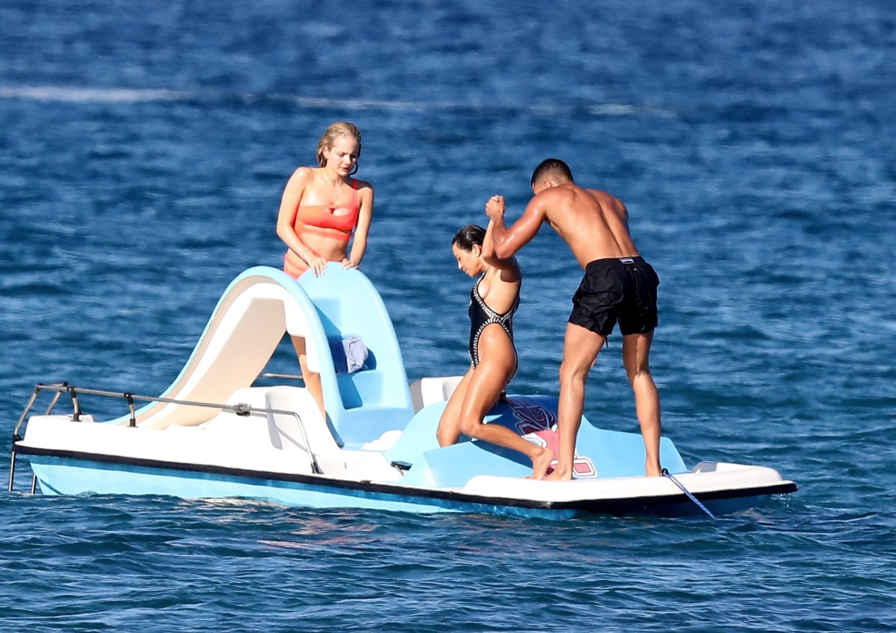 Kourtney Kardashian si gode una giornata su un catamarano con amici a St Tropez, Francia, 07/03/2017. Kourtney Mary Kardashian è una star americana della TV, modella, socialite, donna d’affari Età – 38.