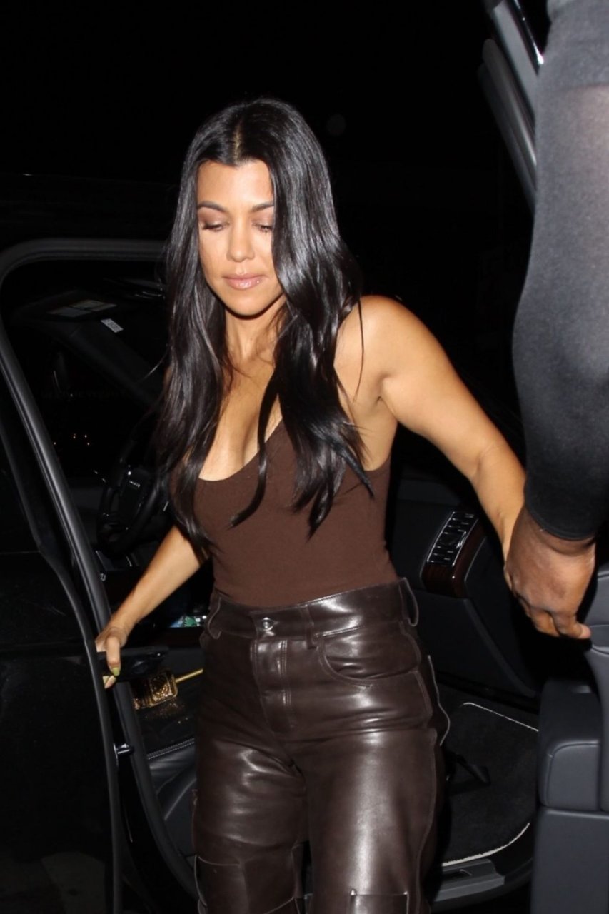 Kourtney Kardashian è stata vista arrivare al The Nice Guy indossando pantaloni di pelle marrone a West Hollywood, 23/08/2019.