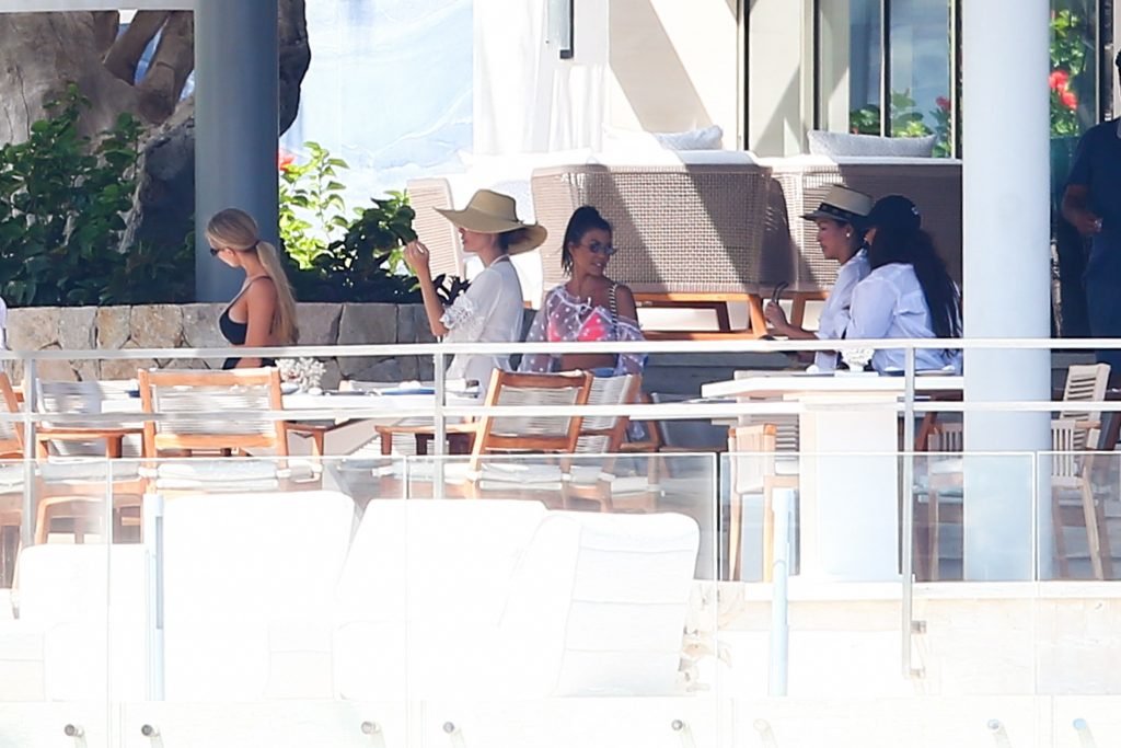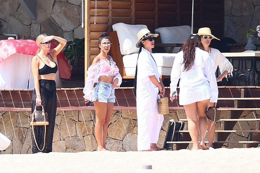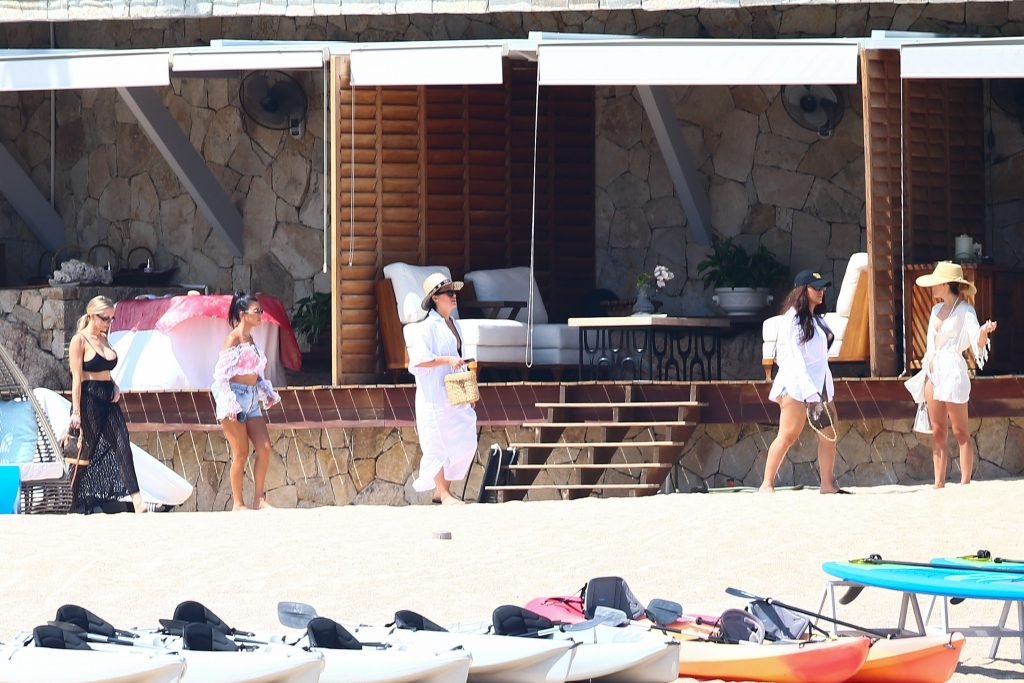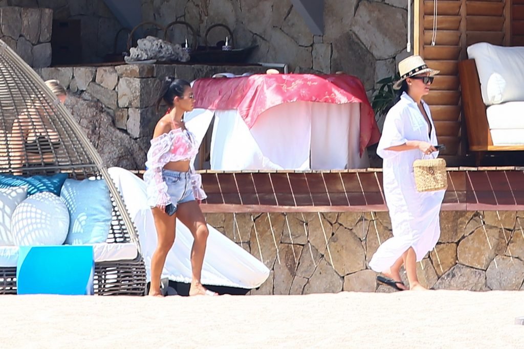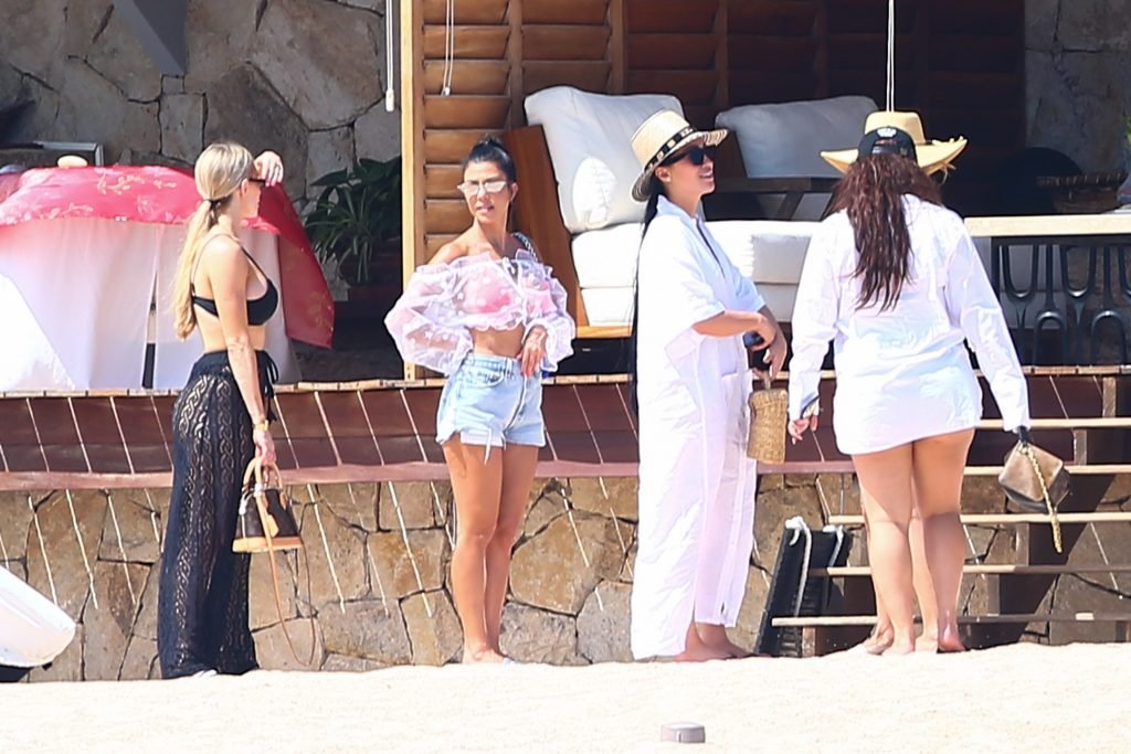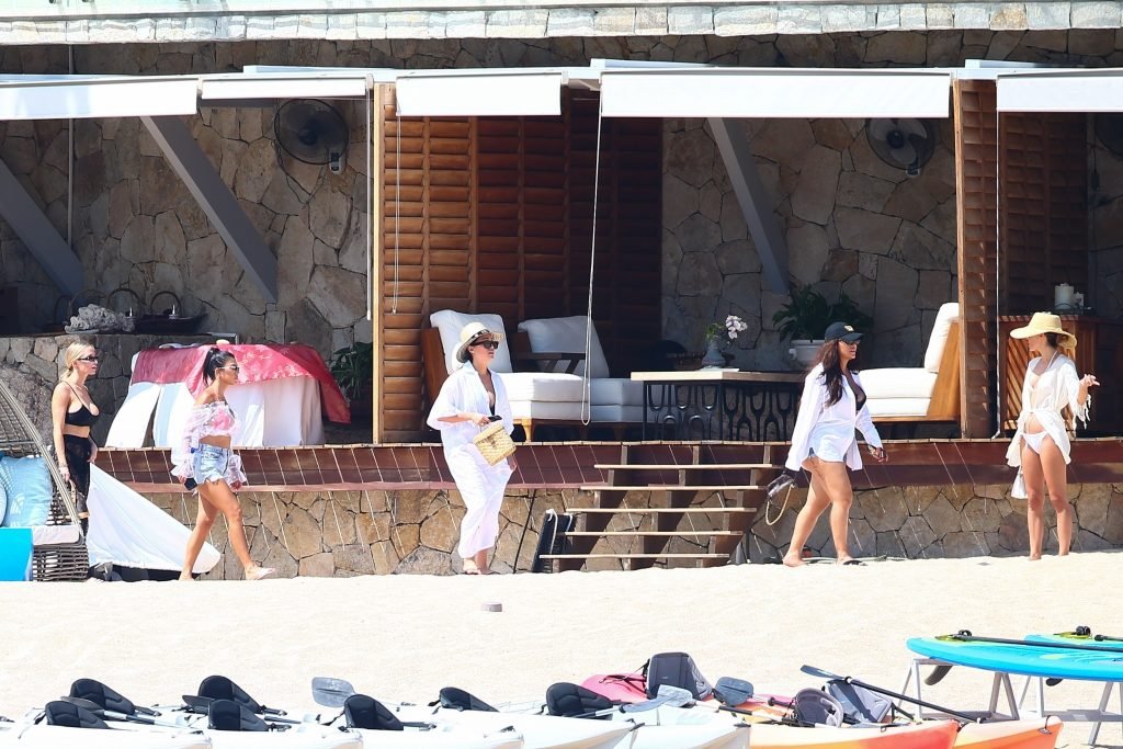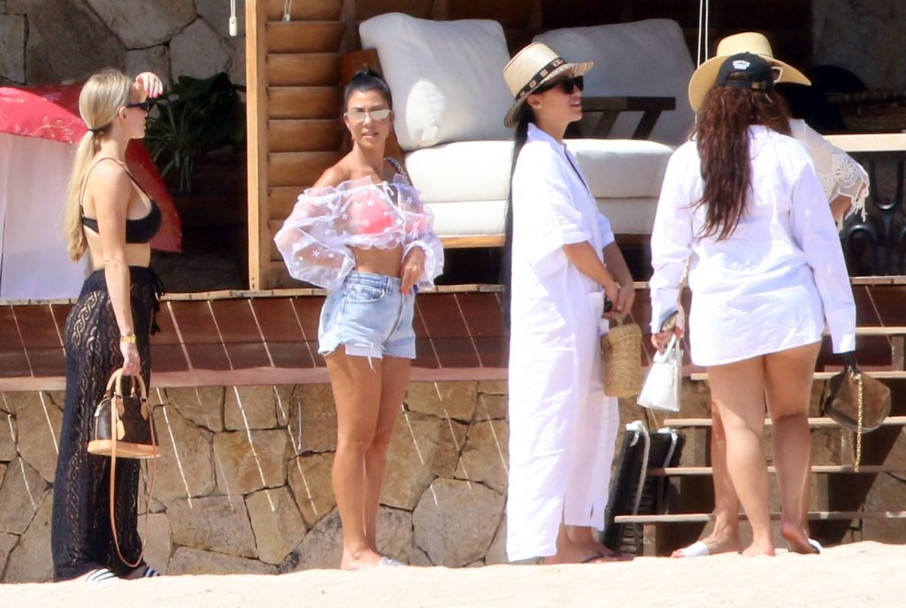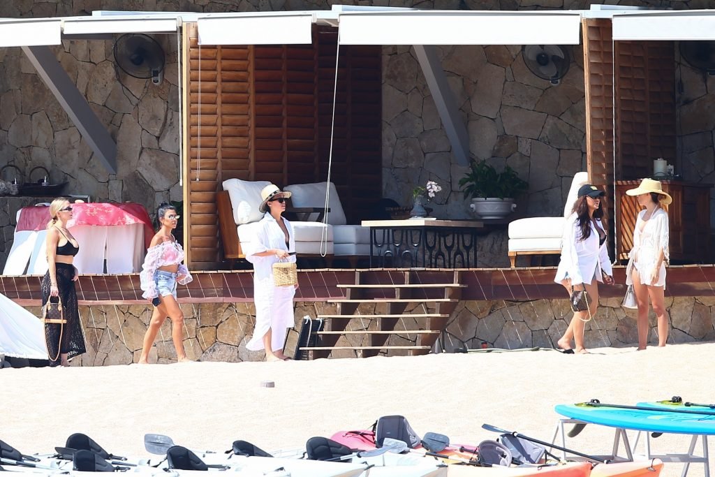 Kourtney Kardashian (39) continua la sua caldissima vacanza con gli amici a Cabo San Lucas, in Messico, mentre i suoi figli stanno trascorrendo del tempo con l’ex Scott Disick e la sua fidanzata Sofia Richie, 25/08/2018. Il gruppo si è incontrato per pranzo al ristorante del loro resort, poi si è avventurato sulla spiaggia prima di tornare al resort.